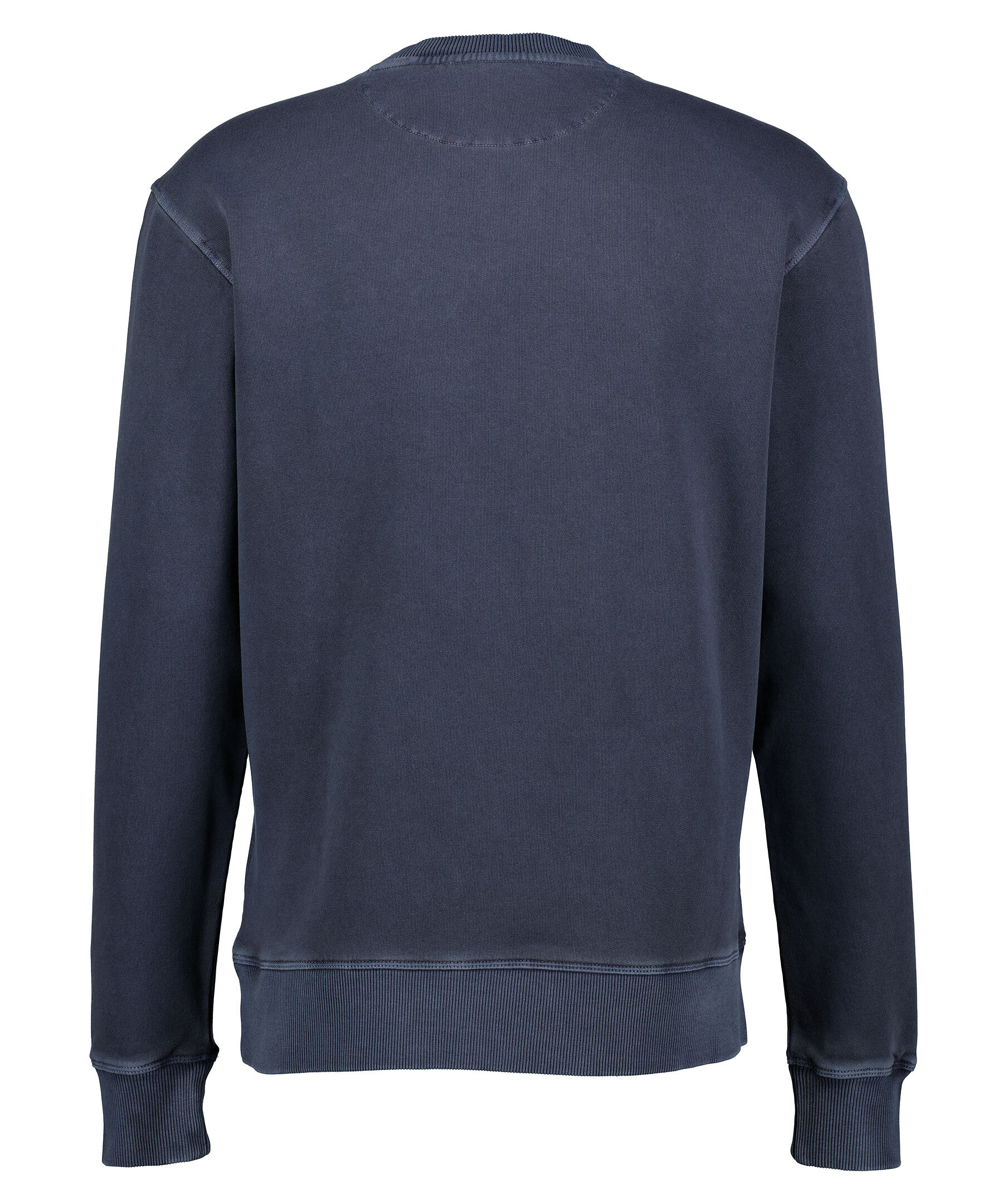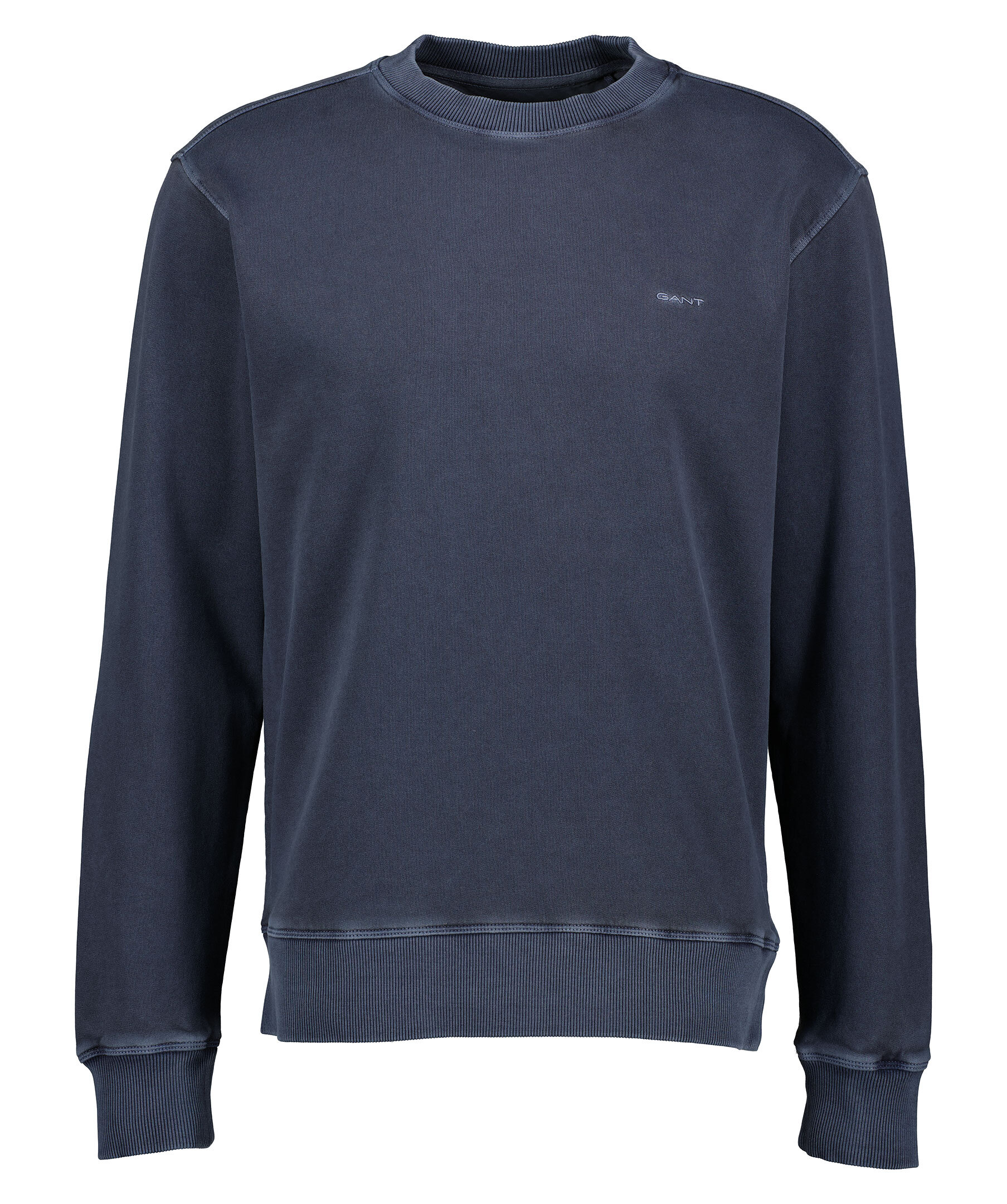Blågrå sweatshirt från Gant med blekt finish. Broderad logotyp på vänster bröst. Ribbstickade muddar vid ärm- och plaggslut, samt ringningen. Tillverkad i 100% bomull.