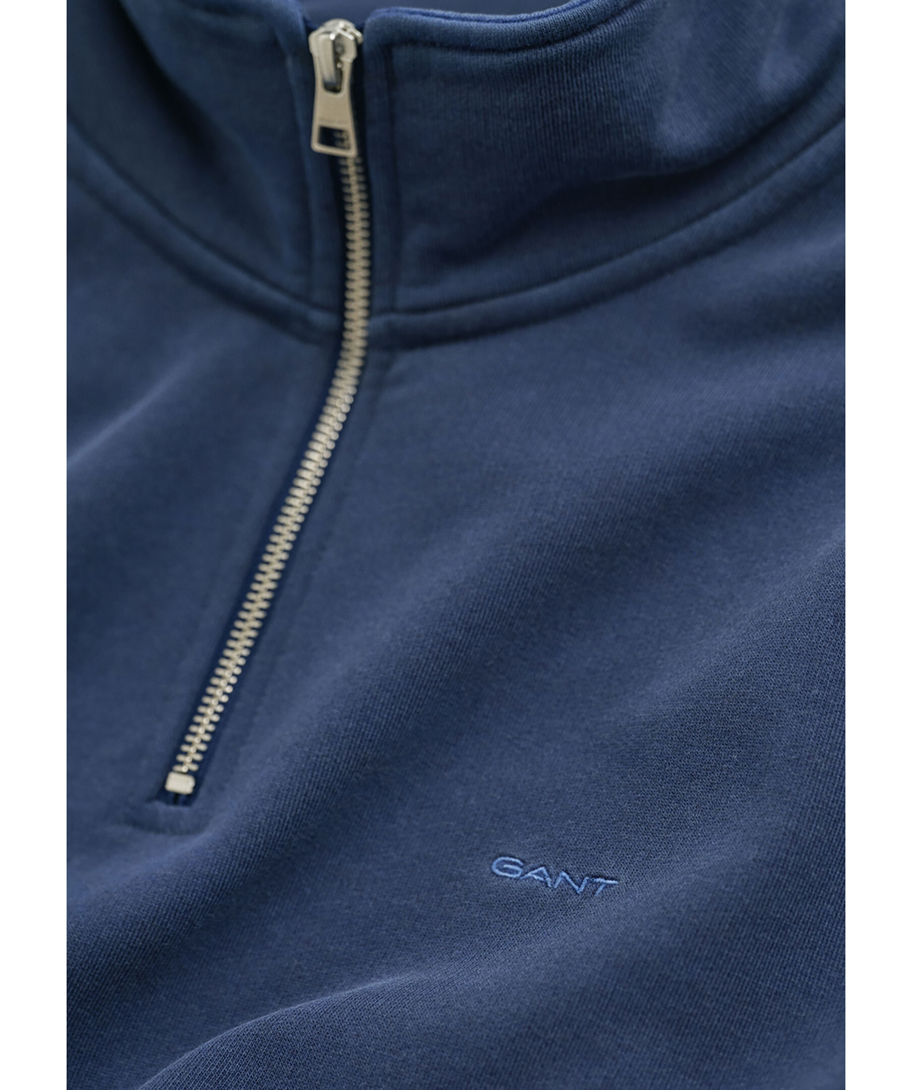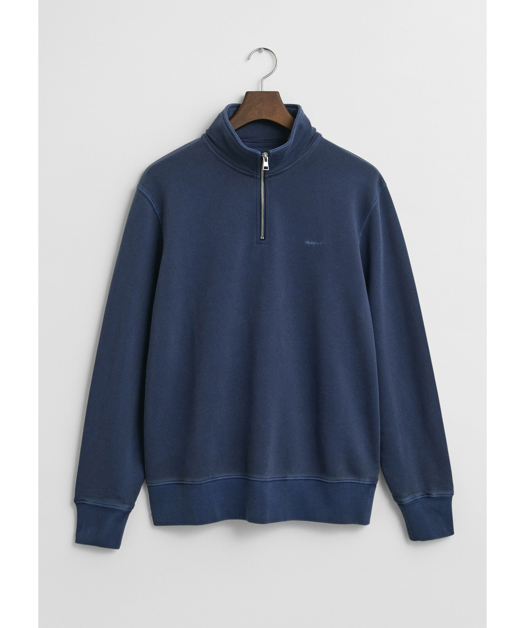 Mörkblå half-zip från Gant. Tröjan har en solblekt look, ribbstickade muddar och broderad Gant-logotyp på bröstet. Tillverkad i bomull.
