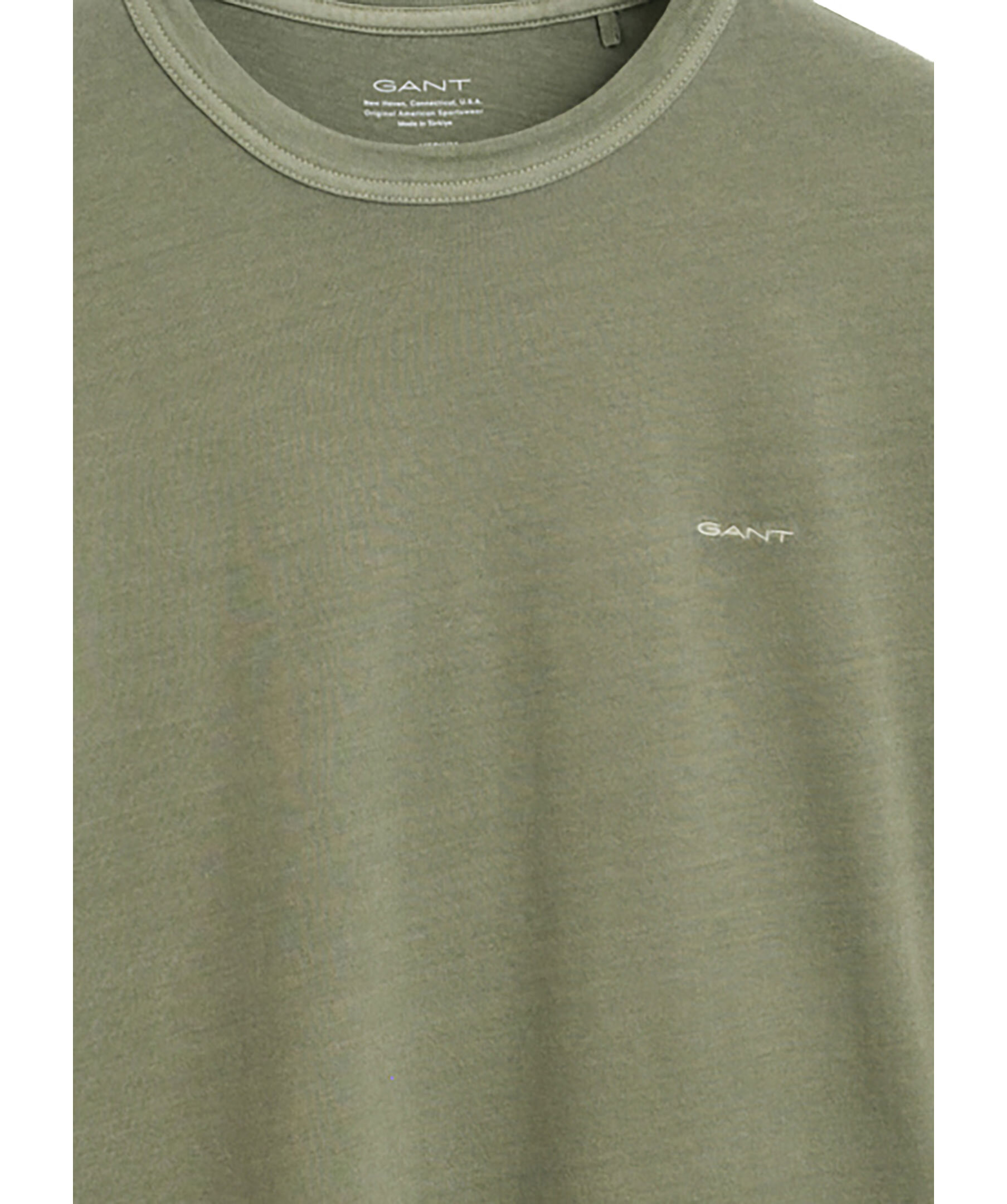 Grön T-shirt från Gant. Tröjan har en urtvättad look och ribbad halsringning. Liten broderad logotyp på bröstet. Tillverkad av 100% bomull.