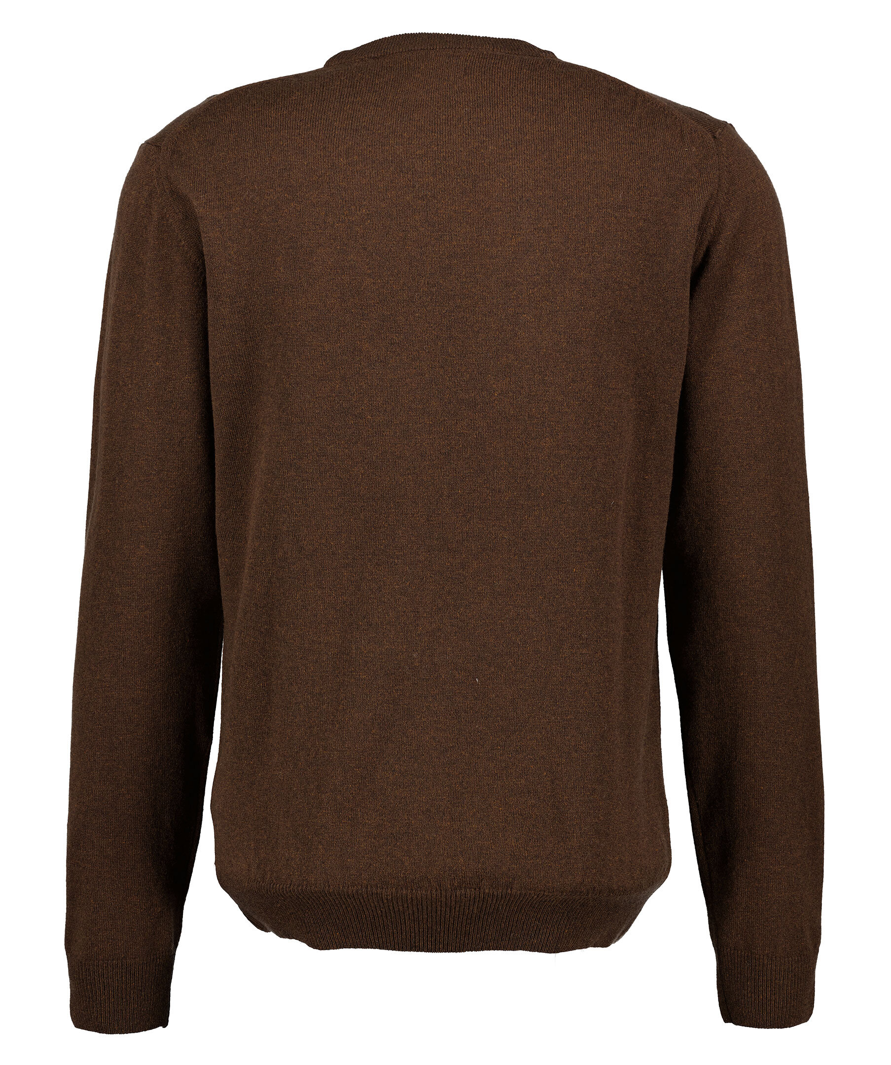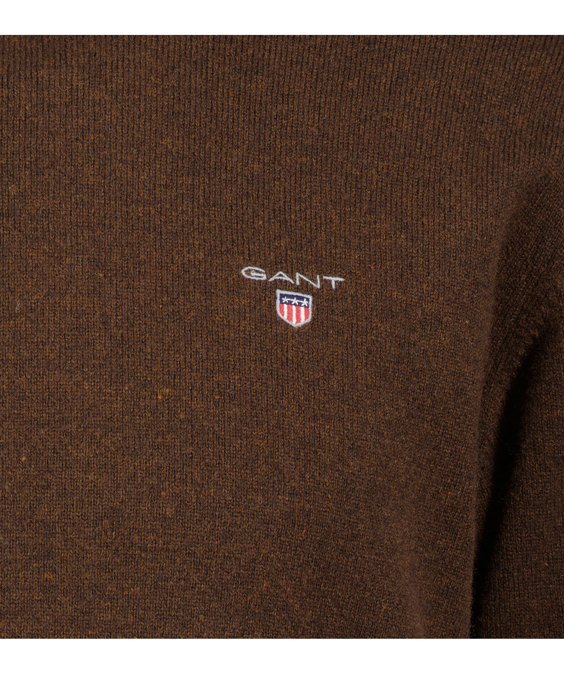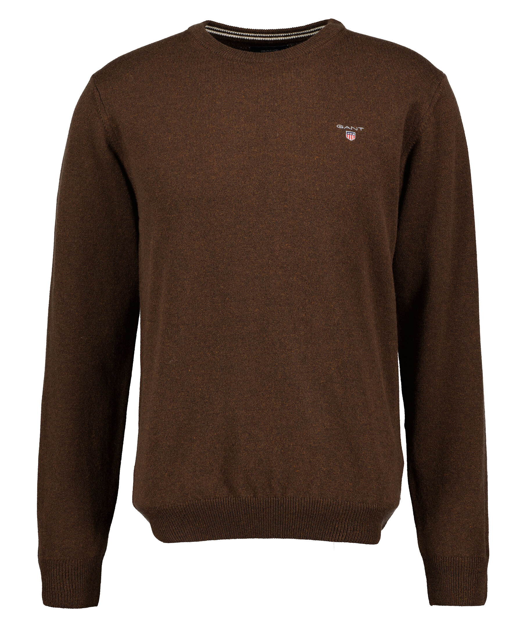 Brun finstickad pullover från Gant. Tröjan är gjord i ett tunt superfint lammullsmaterial. Normal passform, ribbstickade muddar och broderad logotyp på bröstet.