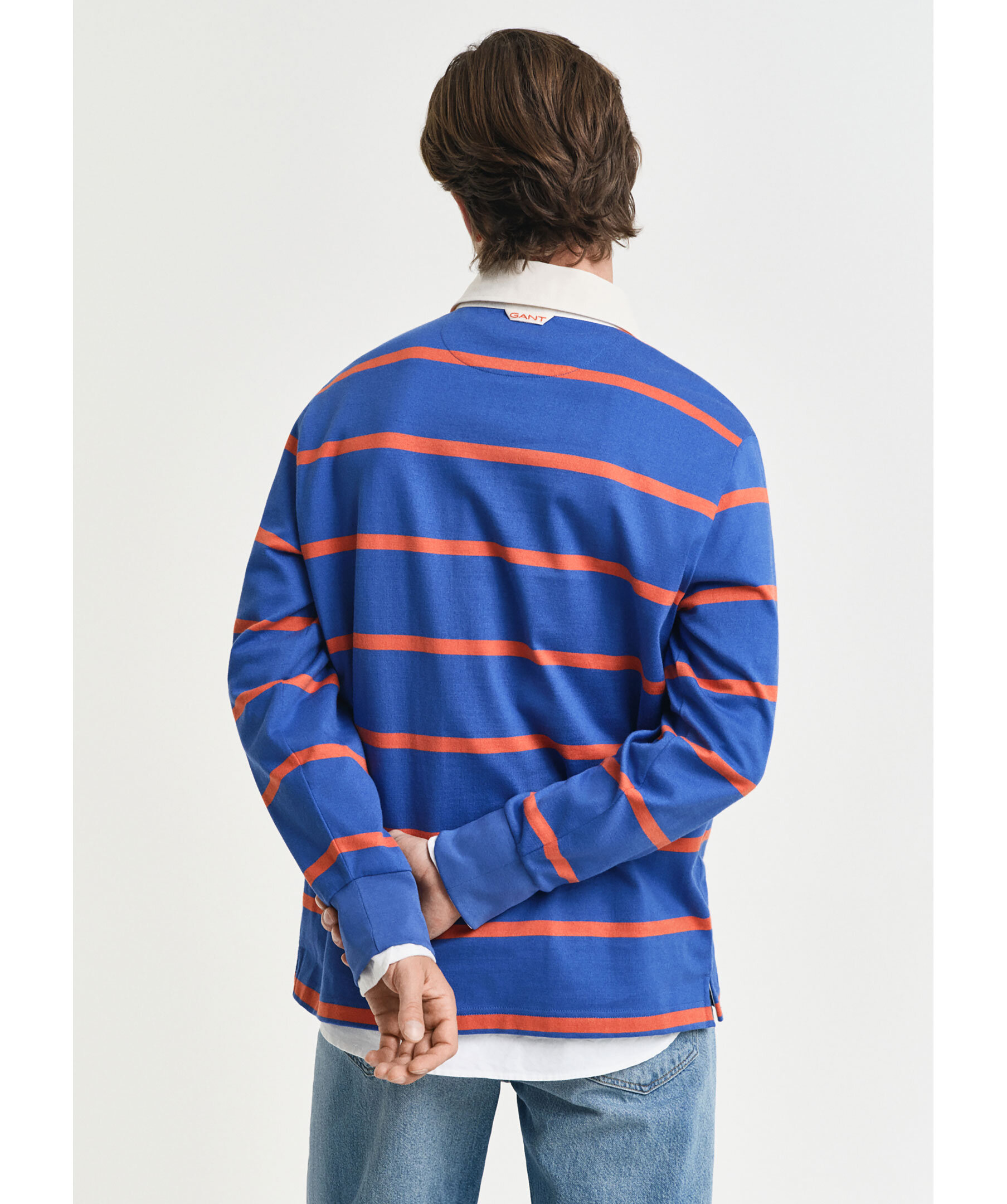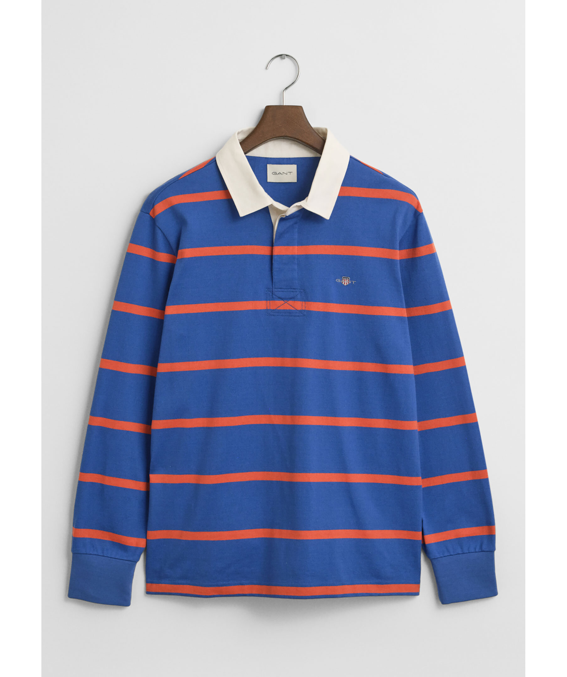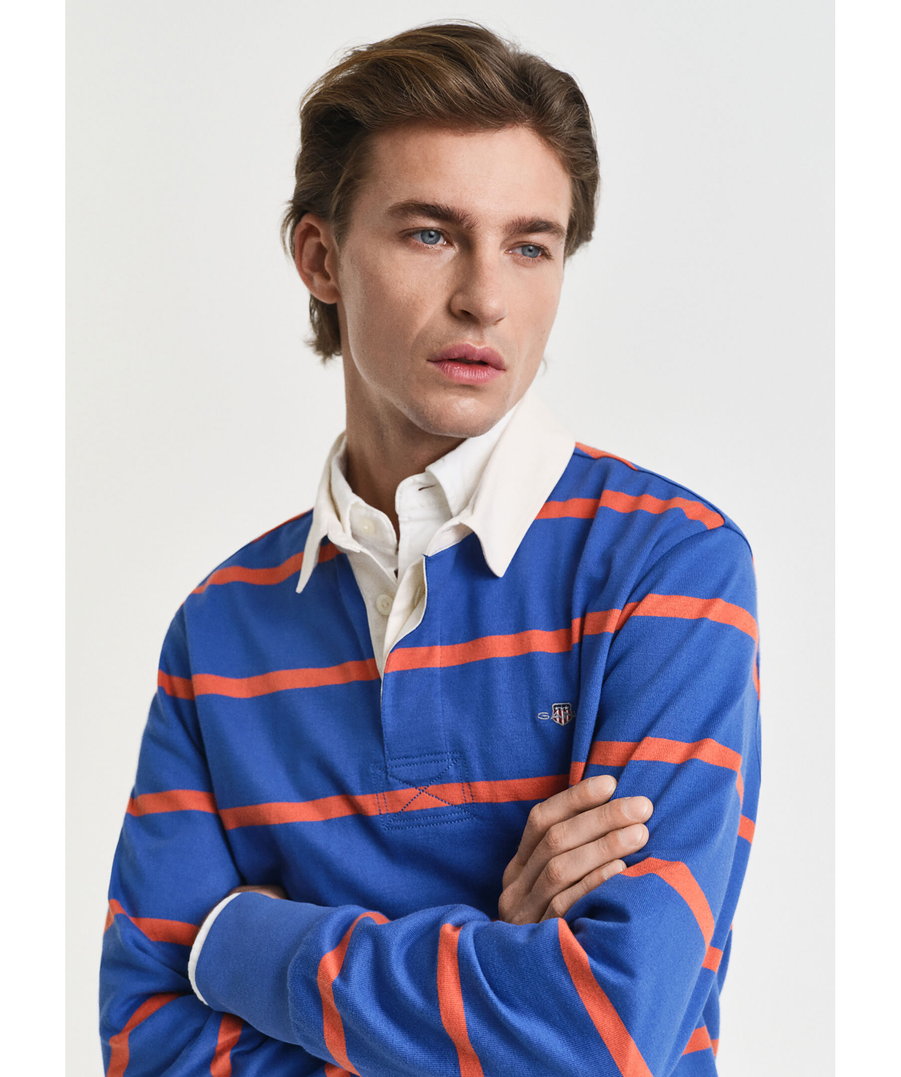 Blårandig rugbytröja från Gant. Tröjan har dolda knappar framtill, kontrastfärgad krage samt broderad logotyp på bröstet. Tillverkad i bomull.