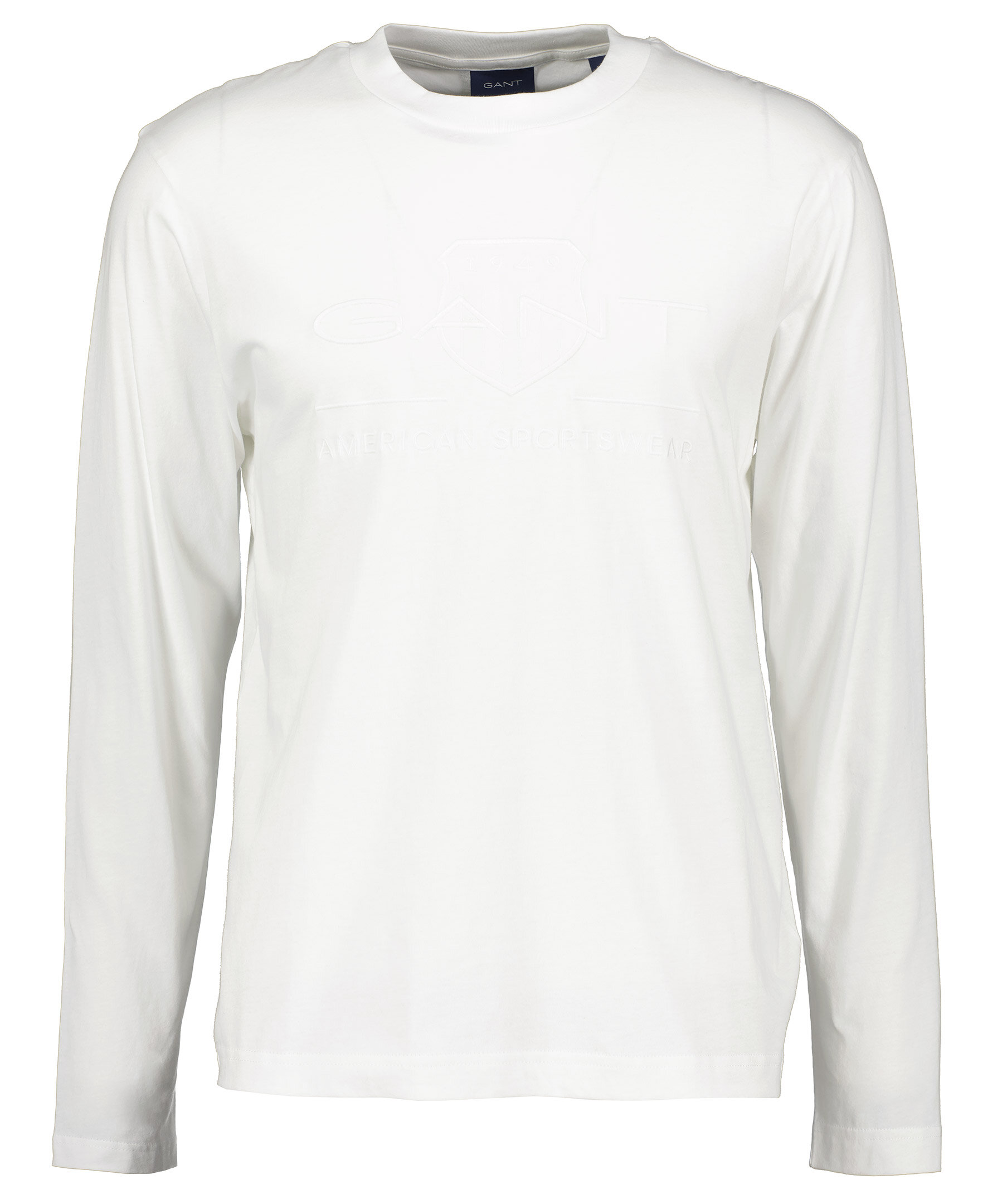 Vit långärmad t-shirt från Gant. Gjord i 100% bomull, broderad ton-i-ton logotyp på bröstet.