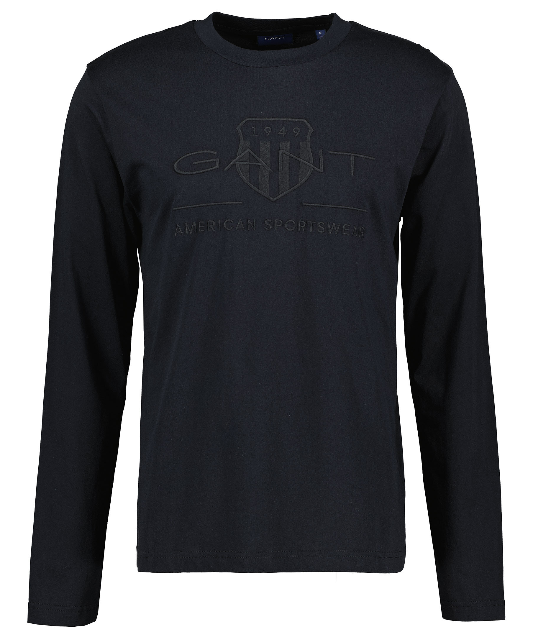 Svart långärmad t-shirt från Gant. Gjord i 100% bomull, broderad ton-i-ton logotyp på bröstet.