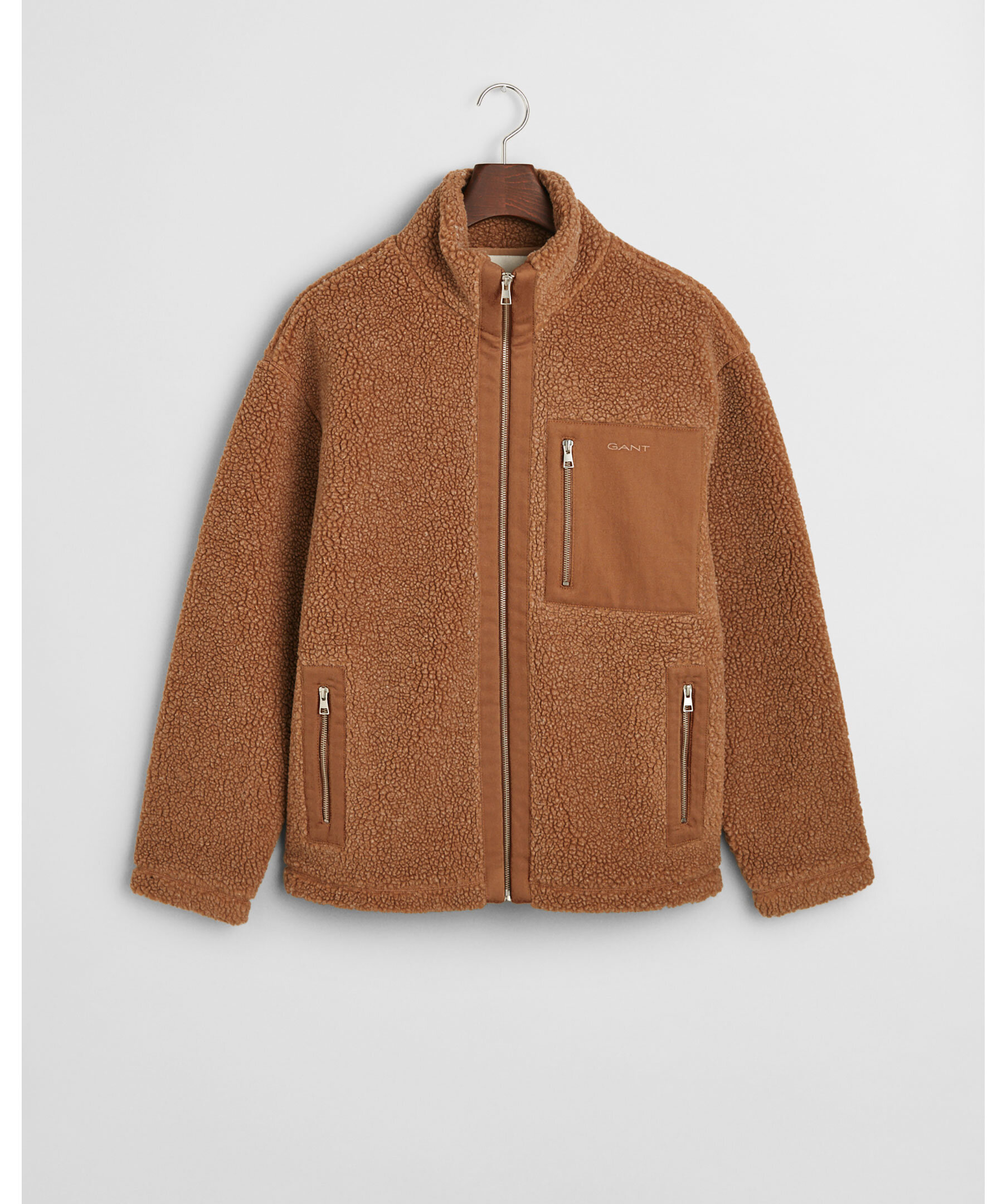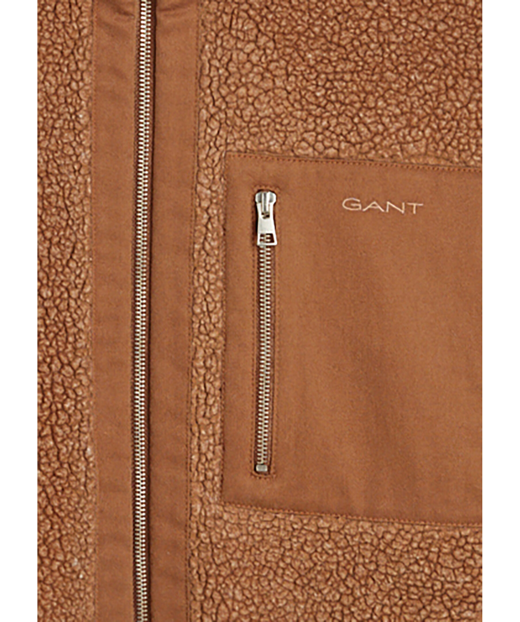 Beige fleece jacka från Gant. Jackan har två sidofickor med blixtlås samt en bröstficka, även den med blixtlås. Tillverkad av en ullblandning.