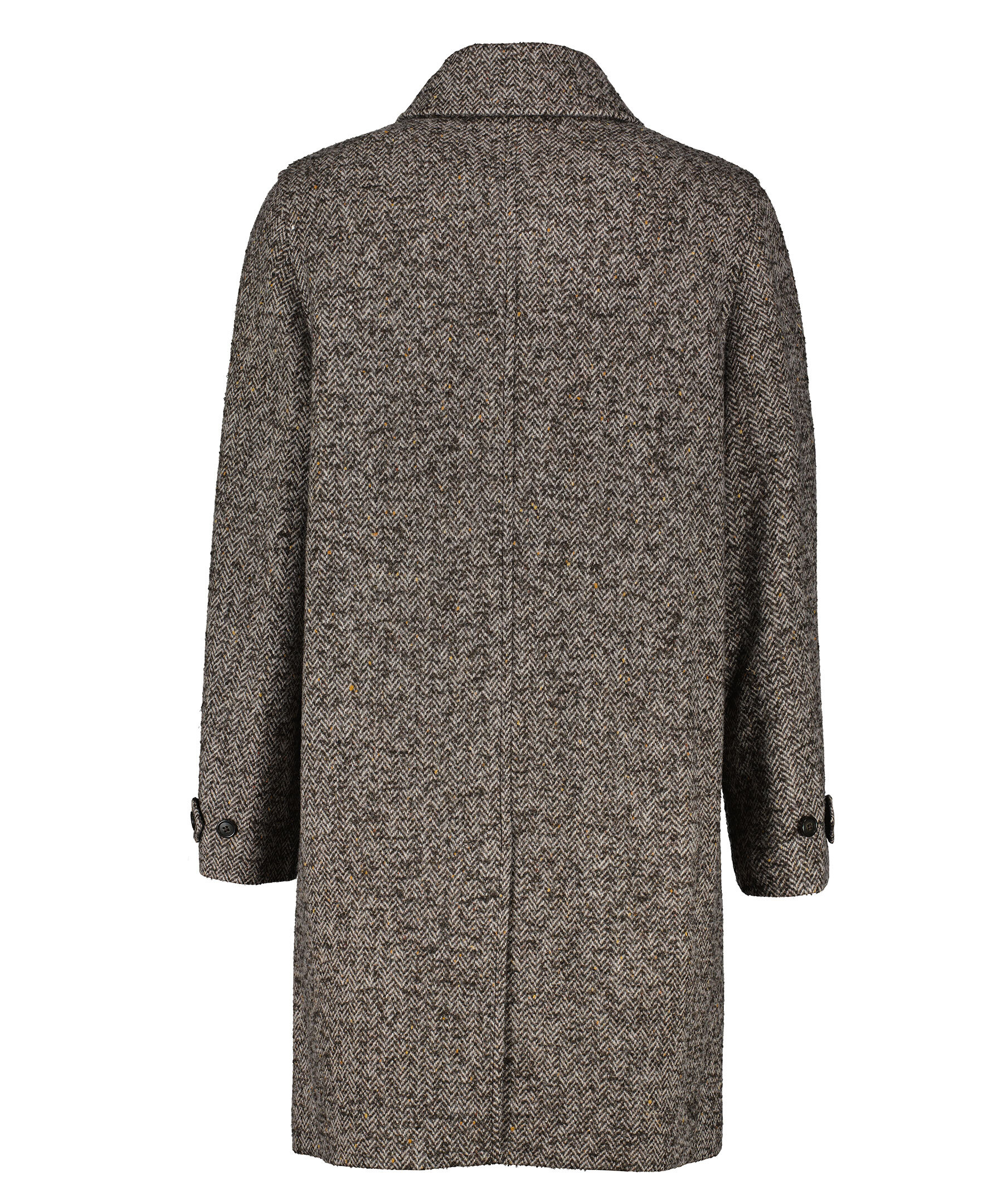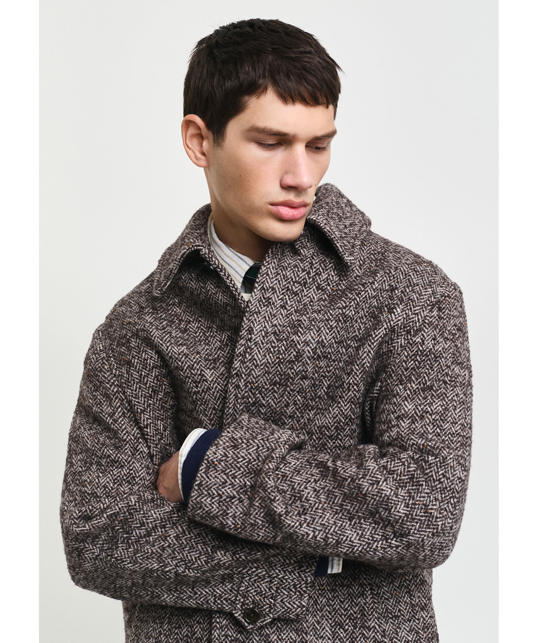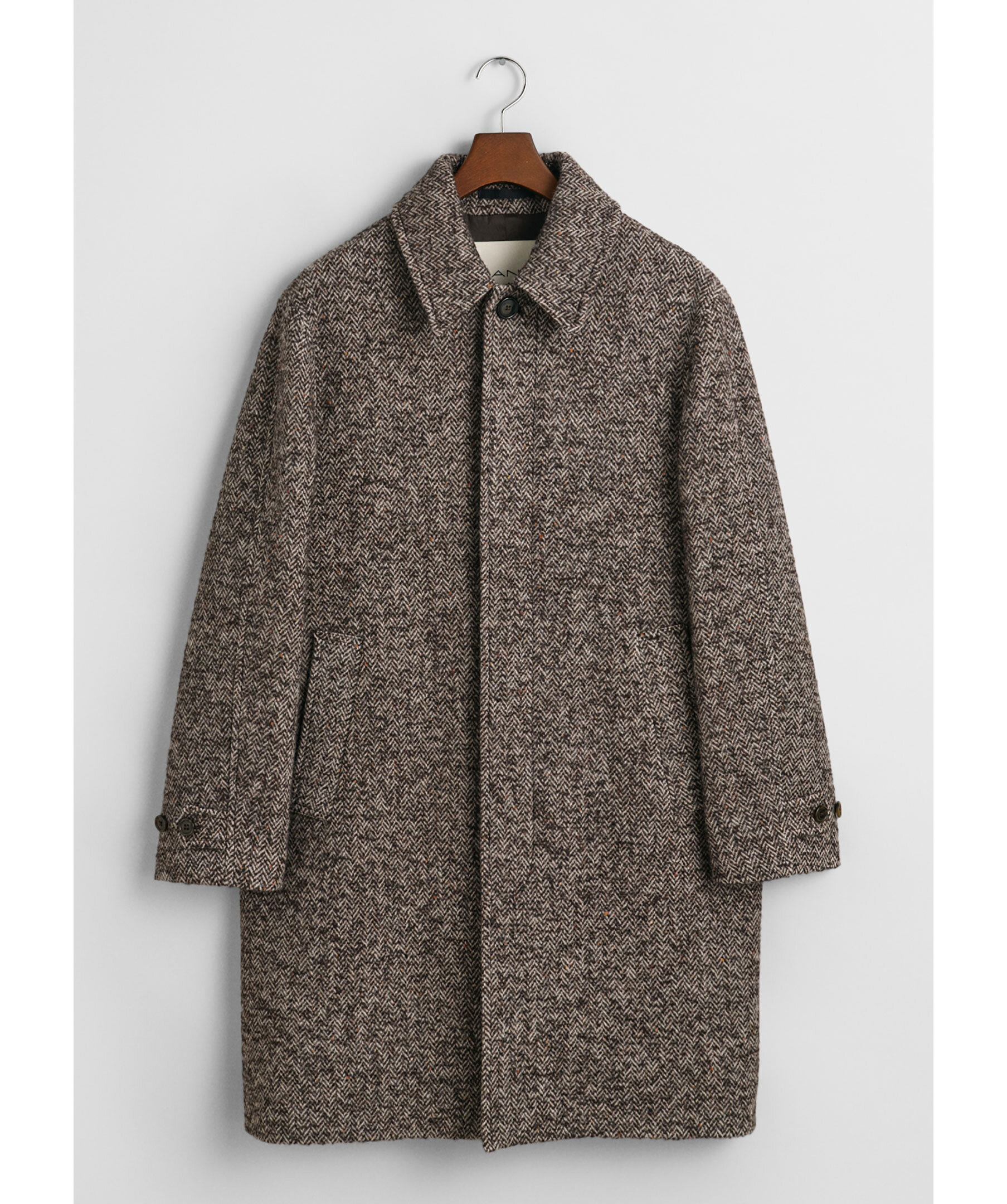 Brunmönstrad rock från Gant. Rocken stängs med fem dolda knappar och har två sidfickor, tre innerfickor samt justerbara ärmslut. Helfodrad insida och slutar precis ovanför knäna. Tillverkad i en italiensk ullblandning.