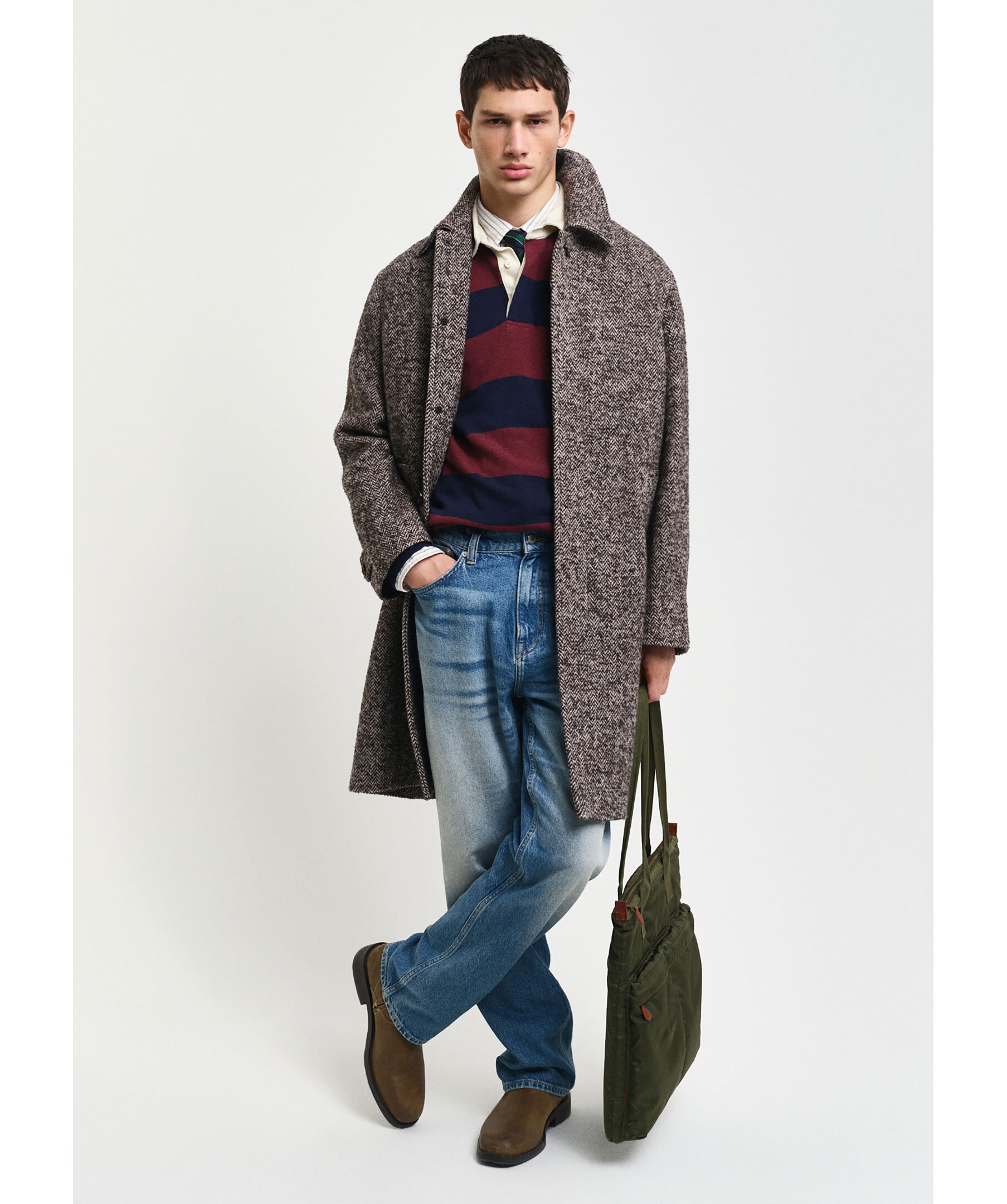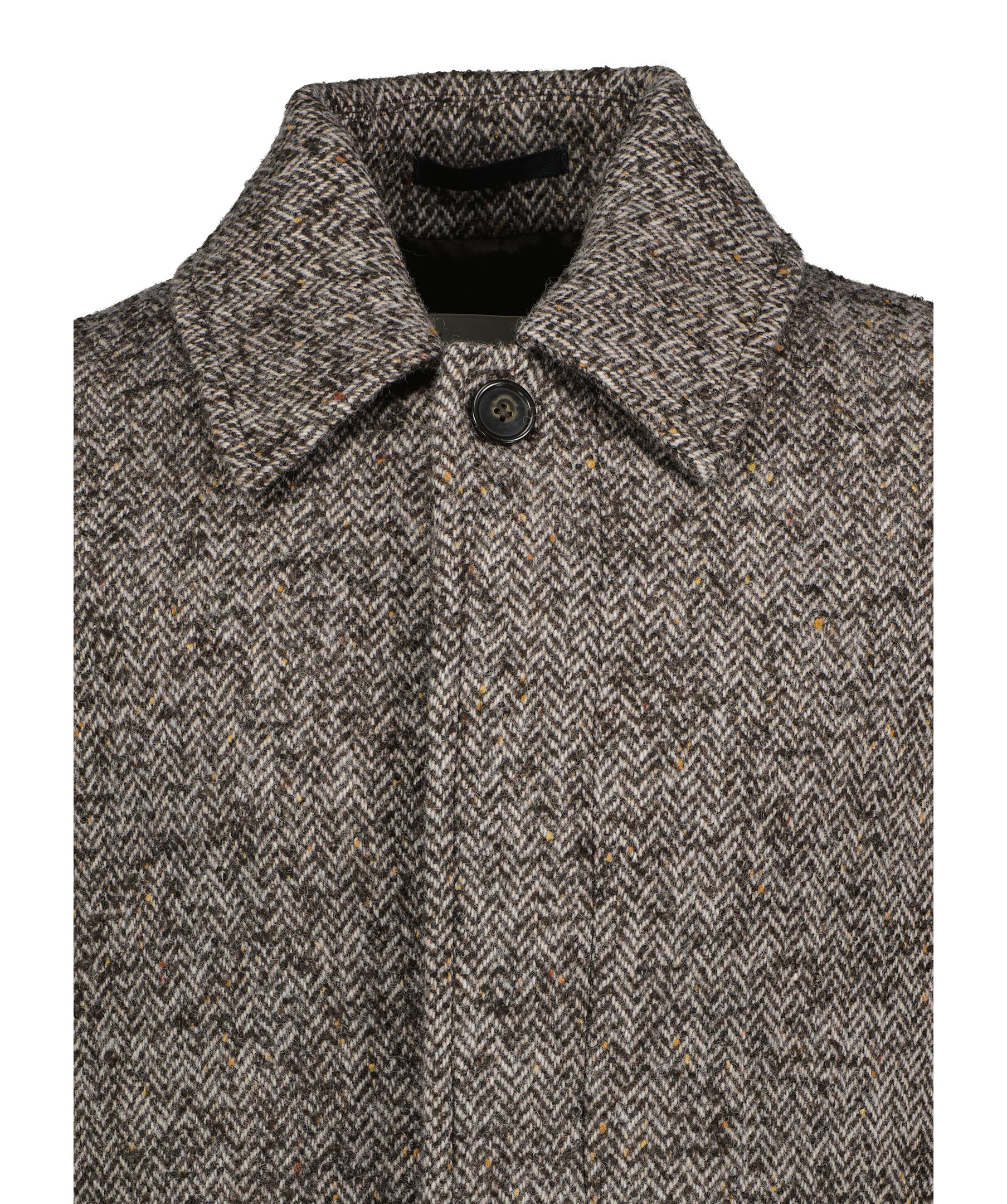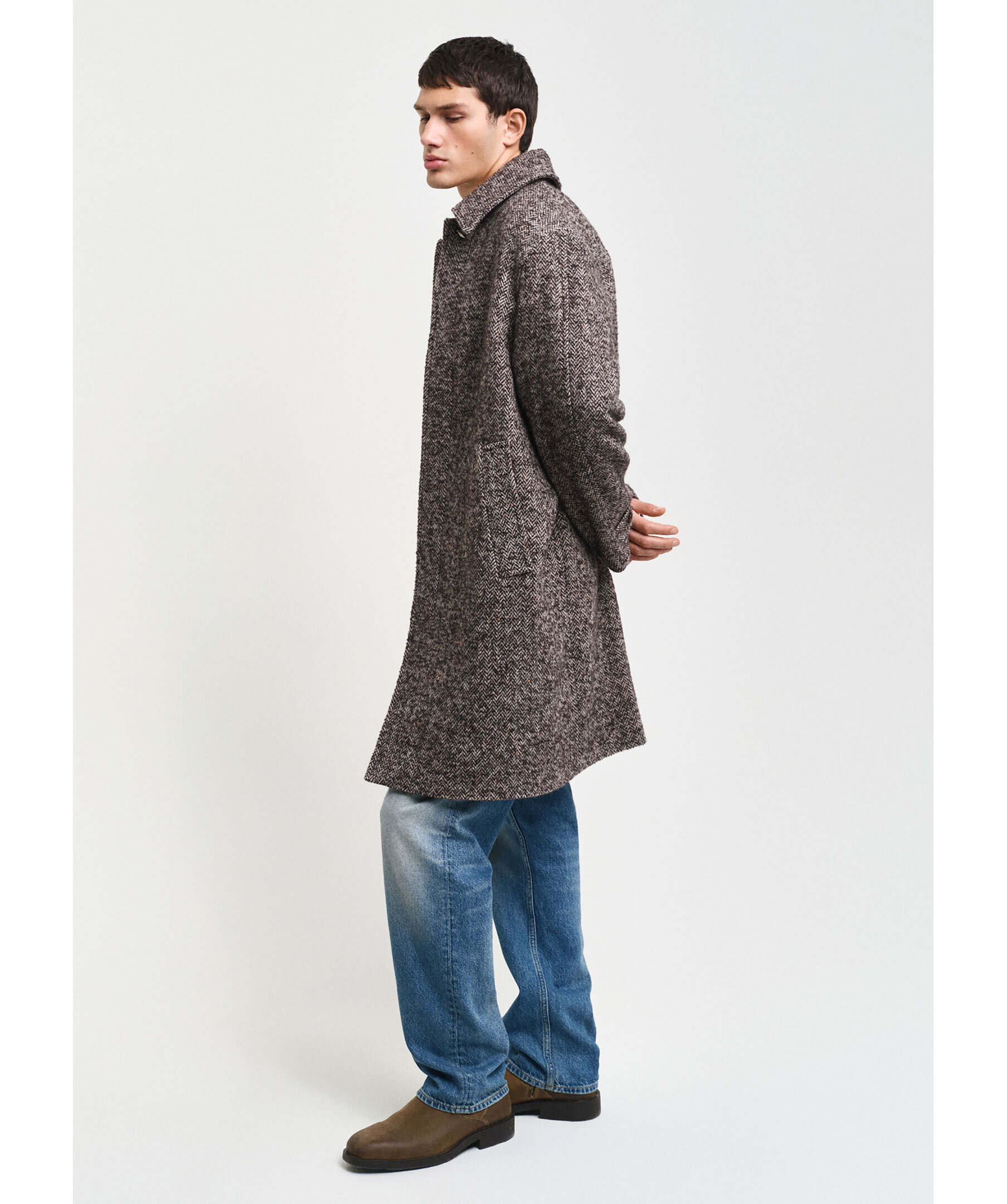 Brunmönstrad rock från Gant. Rocken stängs med fem dolda knappar och har två sidfickor, tre innerfickor samt justerbara ärmslut. Helfodrad insida och slutar precis ovanför knäna. Tillverkad i en italiensk ullblandning.