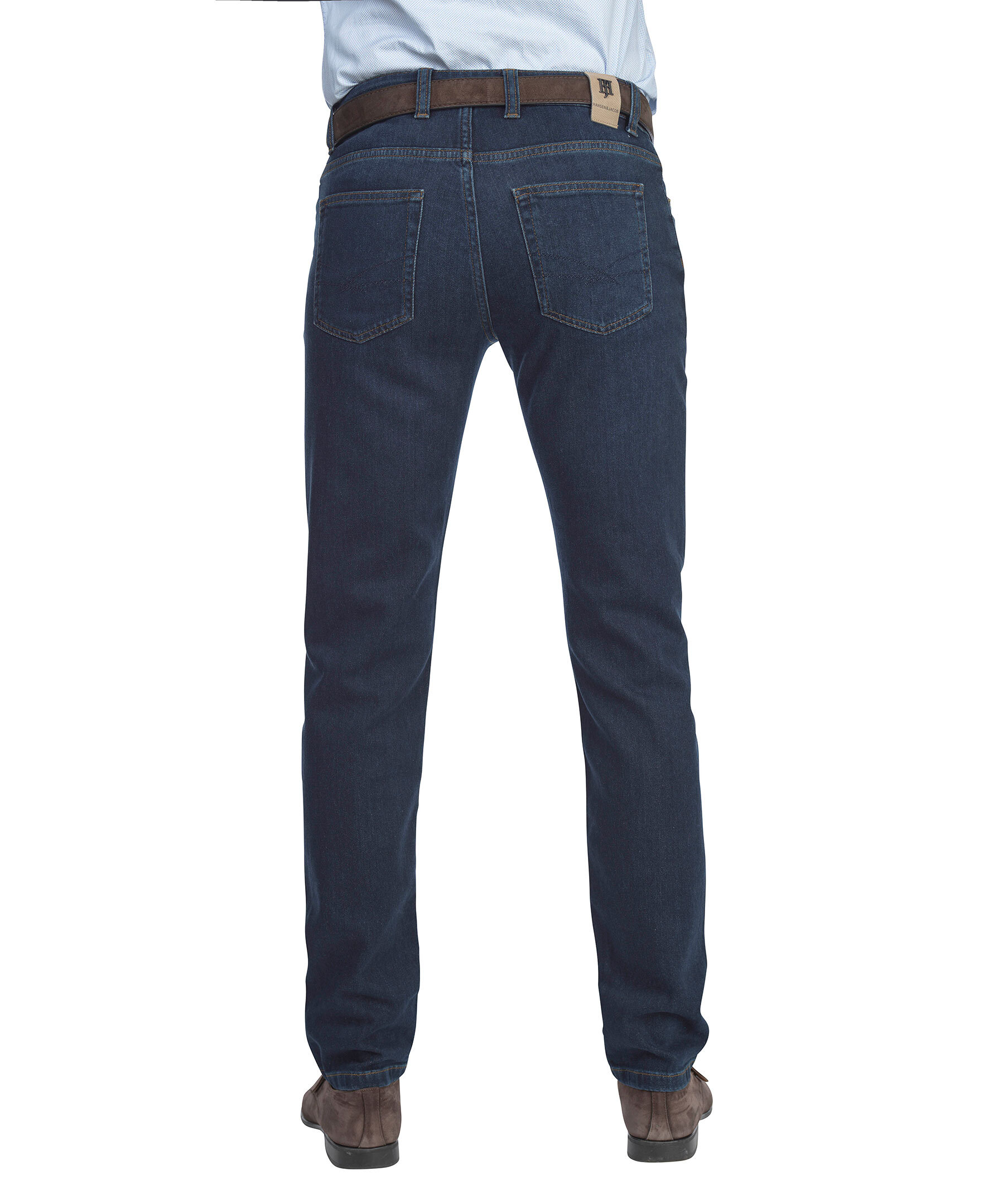 Mörkblå jeans från Hansen & Jacob. Tillverkade i mjuk bomull med stretch, YKK dragkedja.