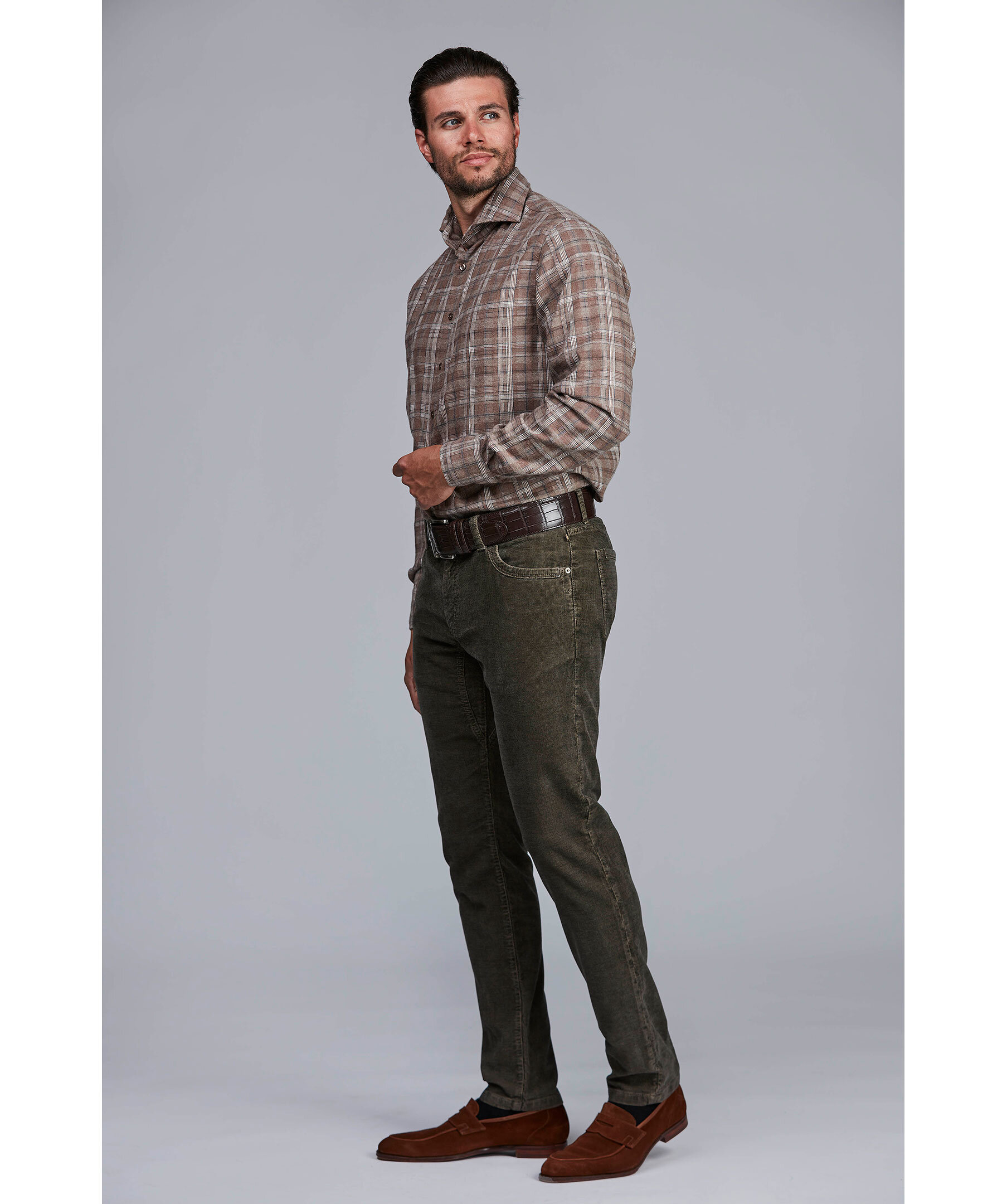 Säsongens och marknadens snyggaste och mest exklusiva byxa. Det är en printad manchester som inte bara är snygg utan även väldigt bekväm. Med sina 2% elastan får den en extra skön komfort.