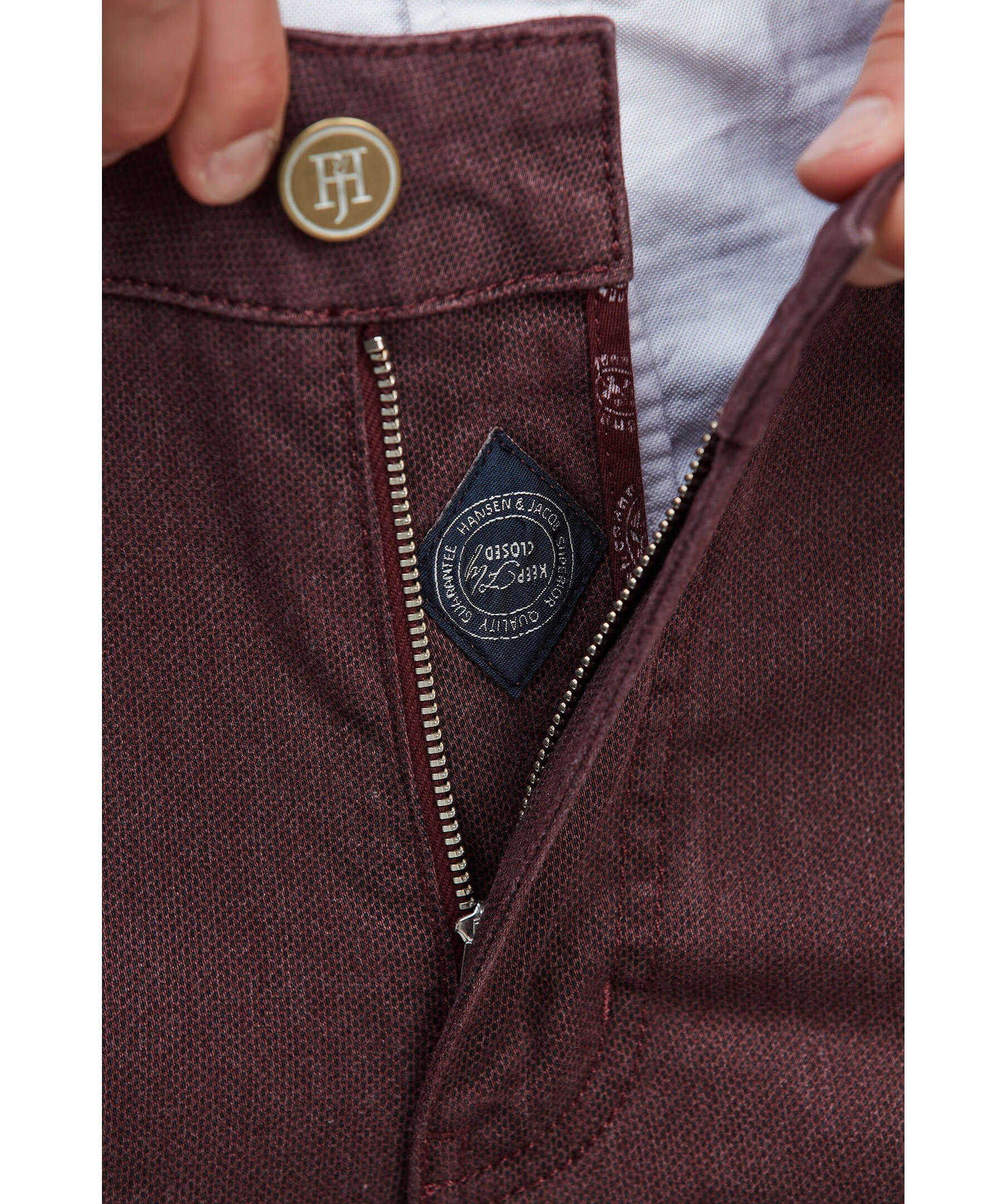 Femficksbyxa tillverkad i stretchigt printat tyg. Förstärkning i gren och längs fickorna ger den ett tuffare utseende samtidigt som det förlänger byxornas livslängd. Låg midja fram och något högre bak gör att den sitter perfekt i alla lägen. Självlåsande YKK dragkedja i gylfen. Färgade "bartucks" sö