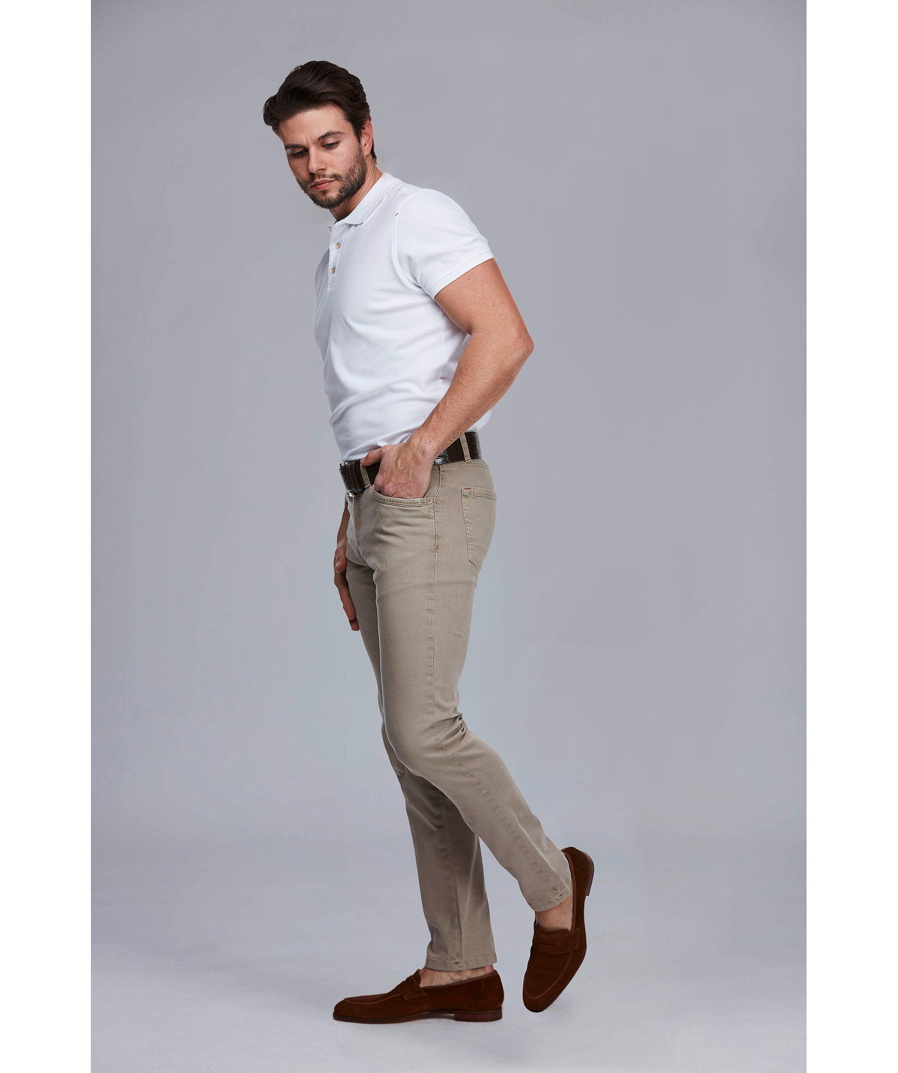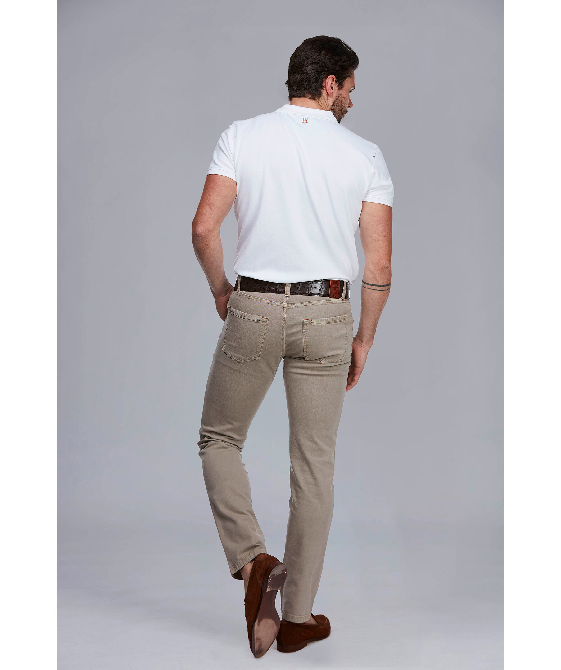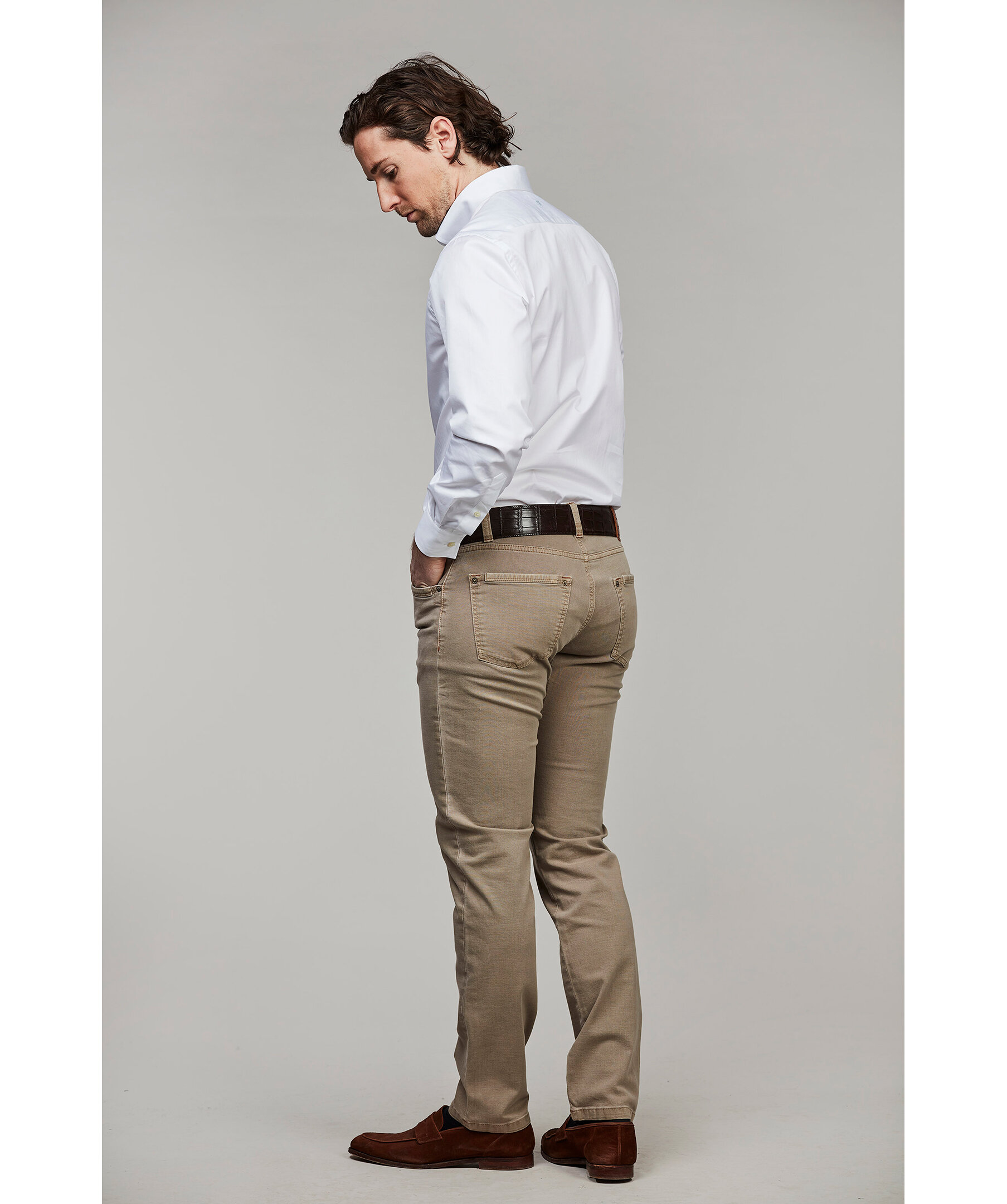 Det här är vår mest populära byxa! Den här byxan tog vi fram för första gången för 15 år sedan och har sedan dess ständigt förbättrat den. Det gör att du idag får en exklusiv byxa som är otroligt skön och bekväm att bära i närapå alla lägen. Byxan är av hög kvalitet och har ett nästan outslitligt och noga utvalt tyg i mjuk och härlig bomullsstretch, som gör att den sitter bra och komfortabelt på alla kroppsformer. 5 pkt cut’n sew kan du bära hela året och vid många olika tillställningar – där du behöver se proper och välklädd ut, samtidigt som du vill ha en byxa som är bekväm att bära hela dagen. Som många av våra byxor har vi också här en genomtänkt förstärkning i grenen som förhindrar slitage och att byxan slits ut, vilket inte är helt ovanligt i andra byxor. Kortfattat är det en allroundbyxa, som ger ett propert och städat intryck, samtidigt som du får en byxa att gå klädd i hela dagen, direkt från jobbet, vidare till tillställningen efter jobbet eller under helgen.