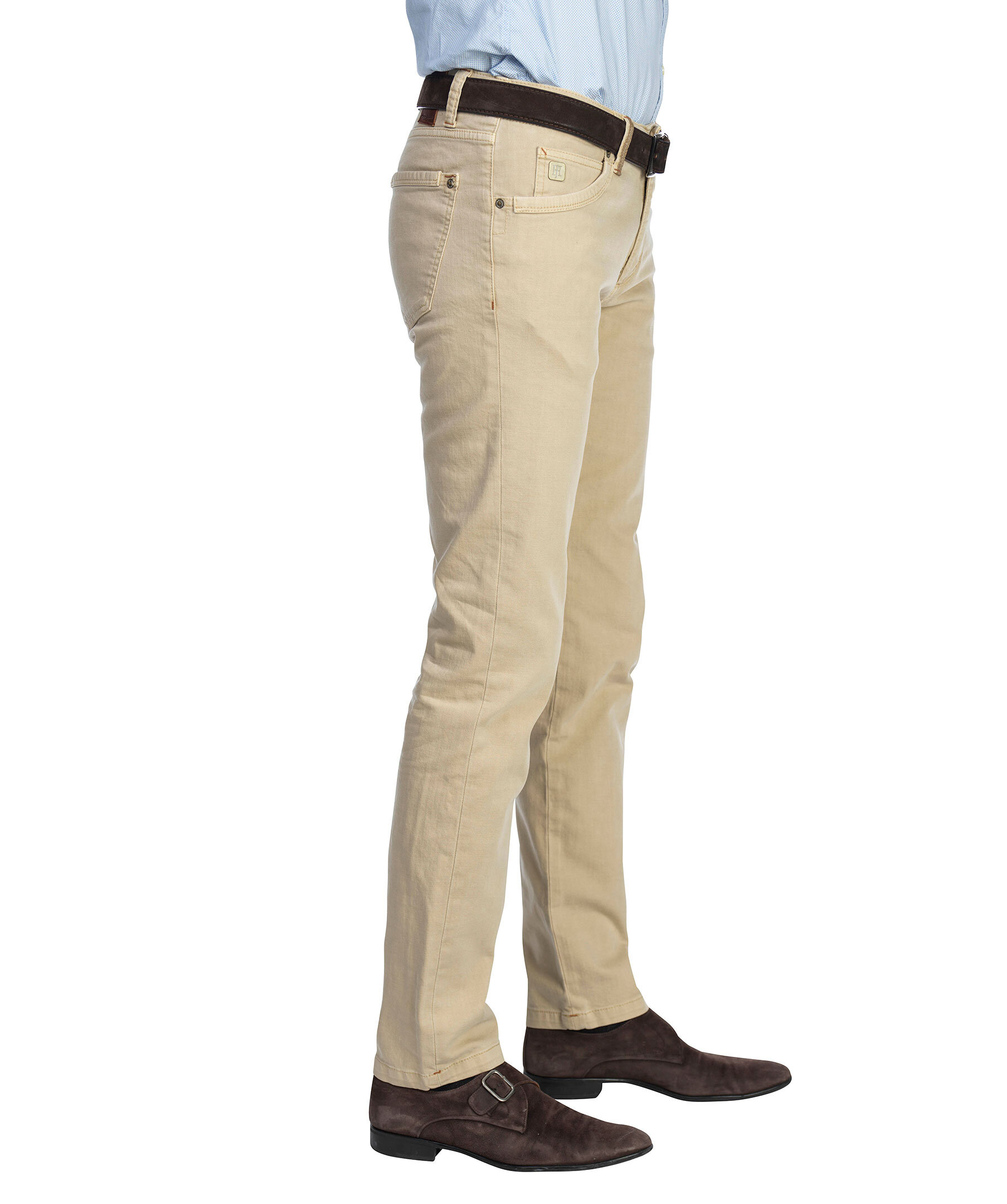 Det här är vår mest populära byxa! Den här byxan tog vi fram för första gången för 15 år sedan och har sedan dess ständigt förbättrat den. Det gör att du idag får en exklusiv byxa som är otroligt skön och bekväm att bära i närapå alla lägen. Byxan är av hög kvalitet och har ett nästan outslitligt och noga utvalt tyg i mjuk och härlig bomullsstretch, som gör att den sitter bra och komfortabelt på alla kroppsformer. 5 pkt cut’n sew kan du bära hela året och vid många olika tillställningar – där du behöver se proper och välklädd ut, samtidigt som du vill ha en byxa som är bekväm att bära hela dagen. Som många av våra byxor har vi också här en genomtänkt förstärkning i grenen som förhindrar slitage och att byxan slits ut, vilket inte är helt ovanligt i andra byxor. Kortfattat är det en allroundbyxa, som ger ett propert och städat intryck, samtidigt som du får en byxa att gå klädd i hela dagen, direkt från jobbet, vidare till tillställningen efter jobbet eller under helgen.