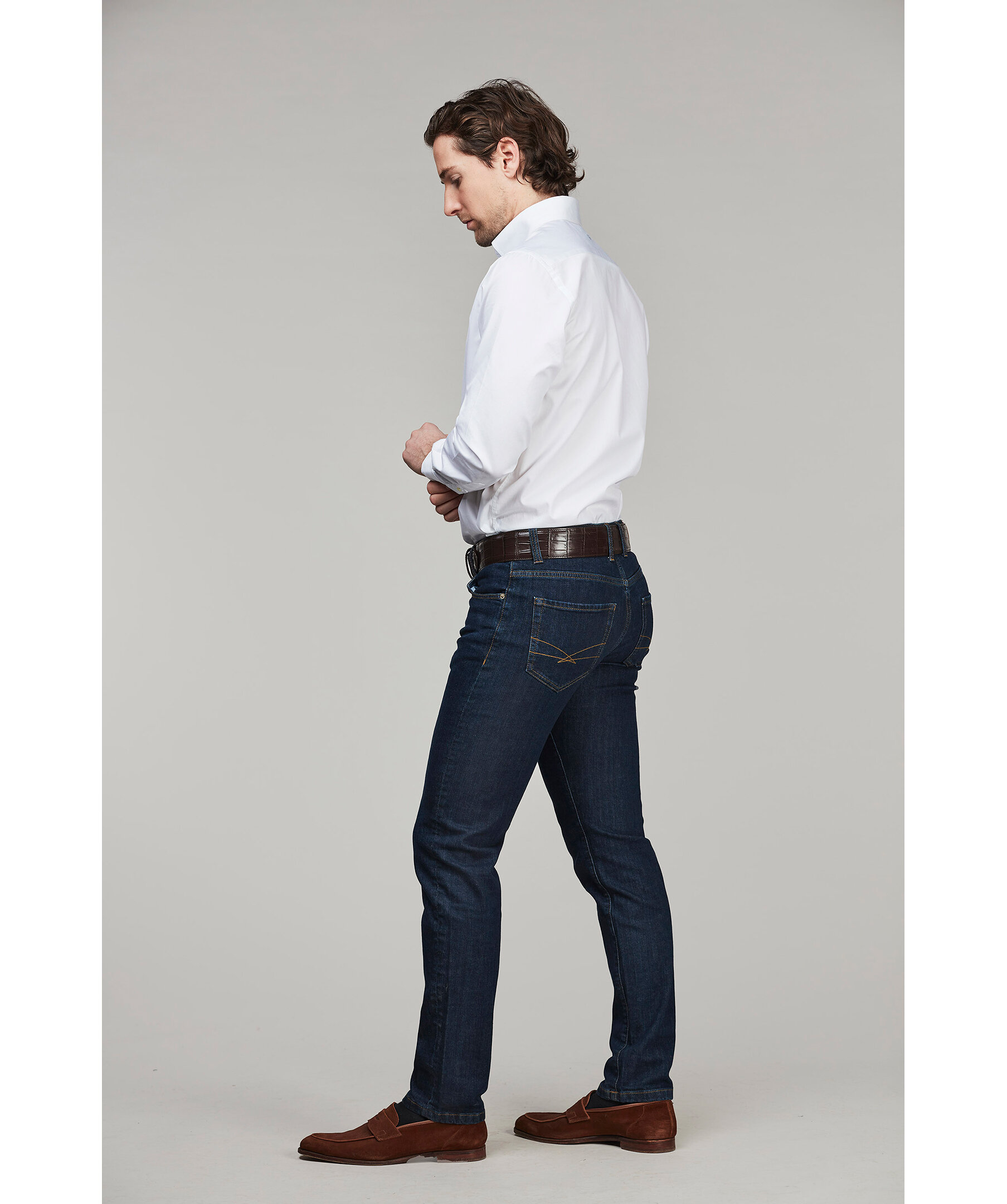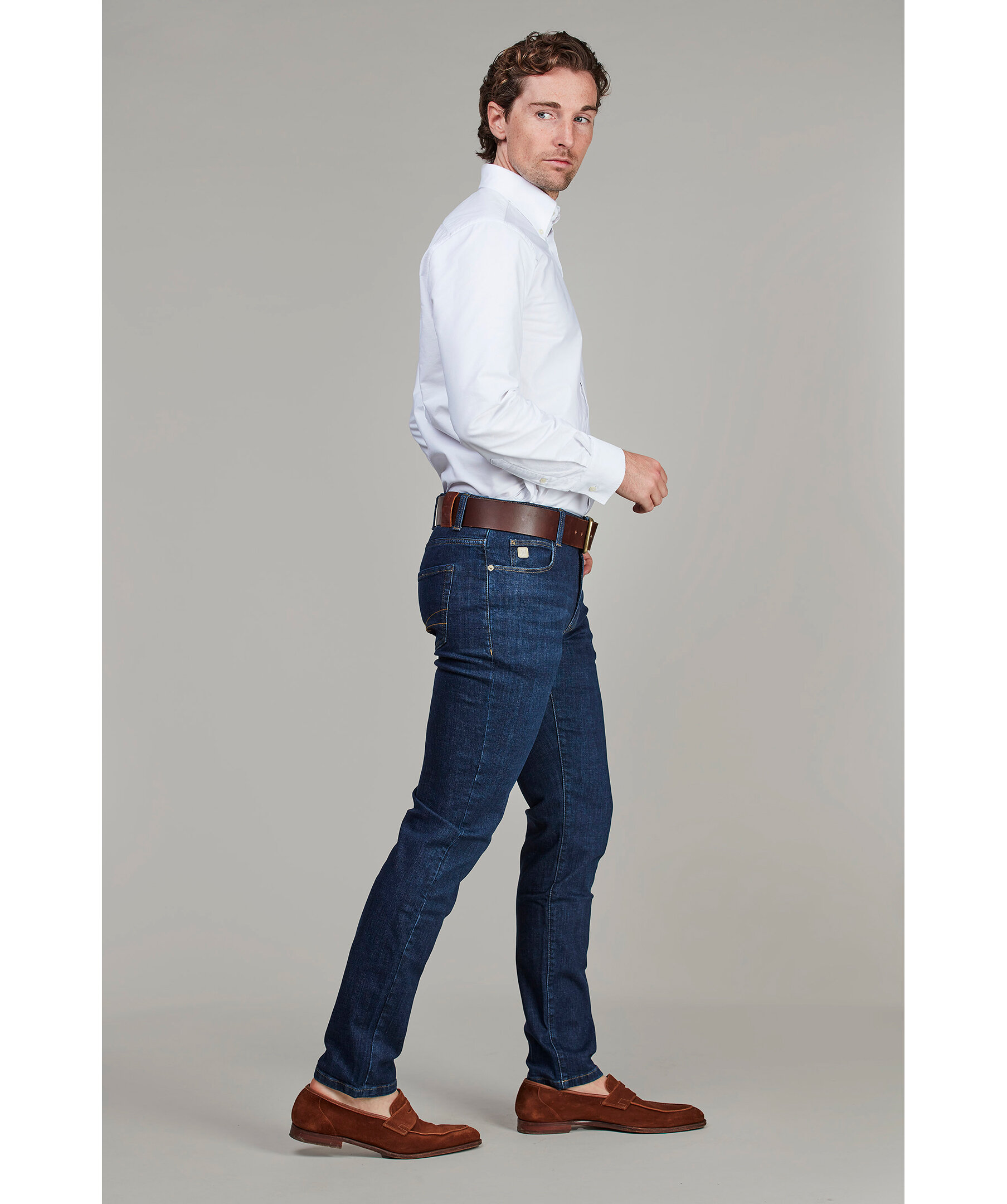 Klassiska jeans med stretchig känsla. En av Hansen & Jacobs bästsäljande jeansmodeller med något smalare passform och snäppet högre midja vilket ger en oslagbar passform runt höftpartiet. Självlåsande YKK dragkedja i gylfen. En klar favorit hos Hansen & Jacobs kunder
