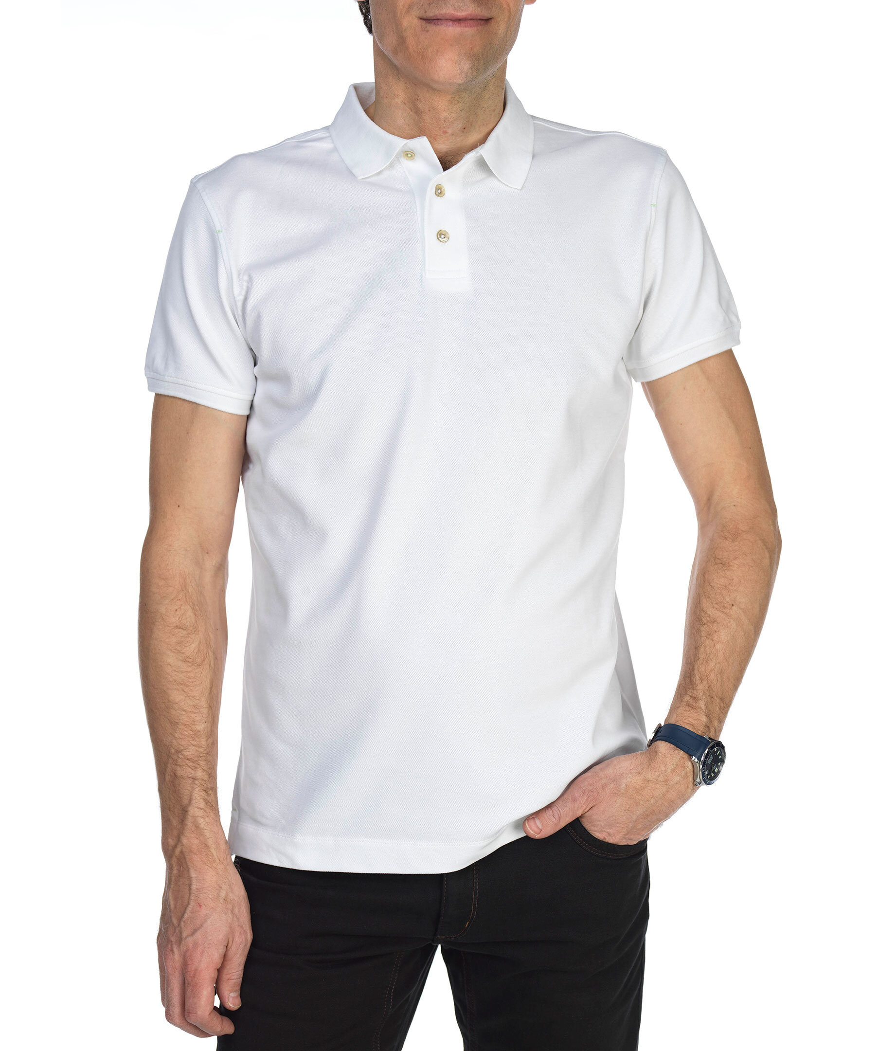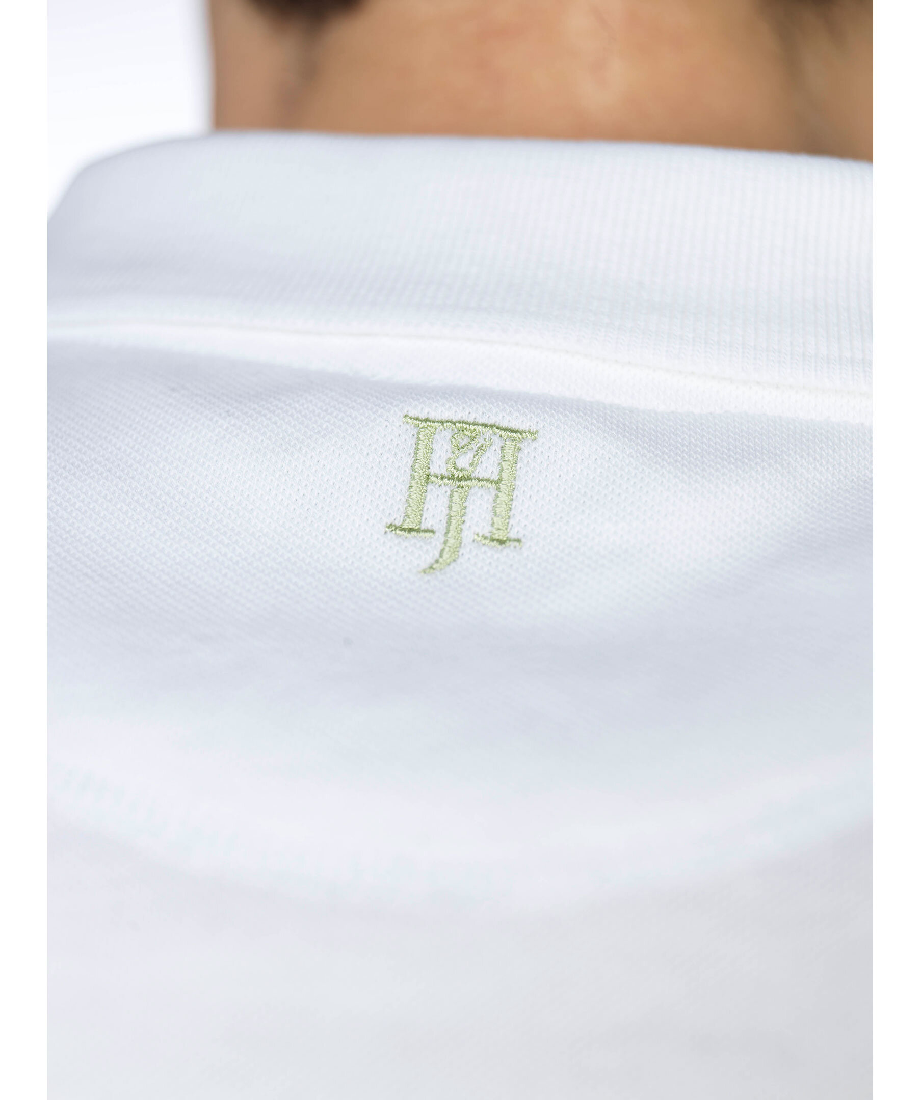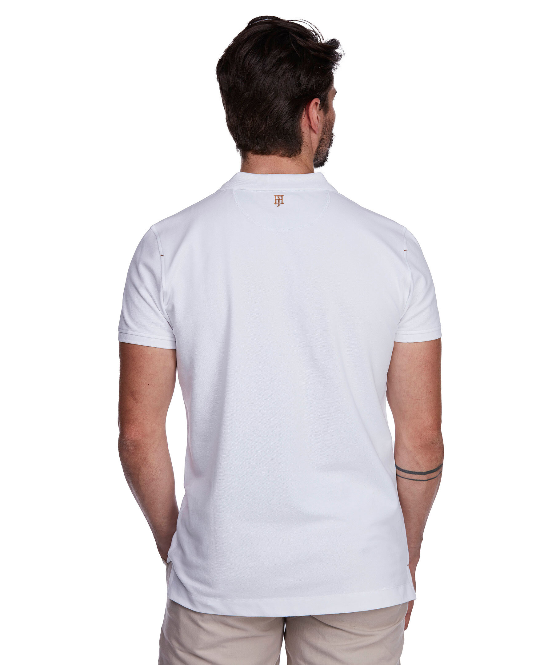 Vit pikétröja från Hansen & Jacob. Tillverkad i bomull med stretch. Modern passform, logotyp i nacken, slitsar i sidorna.