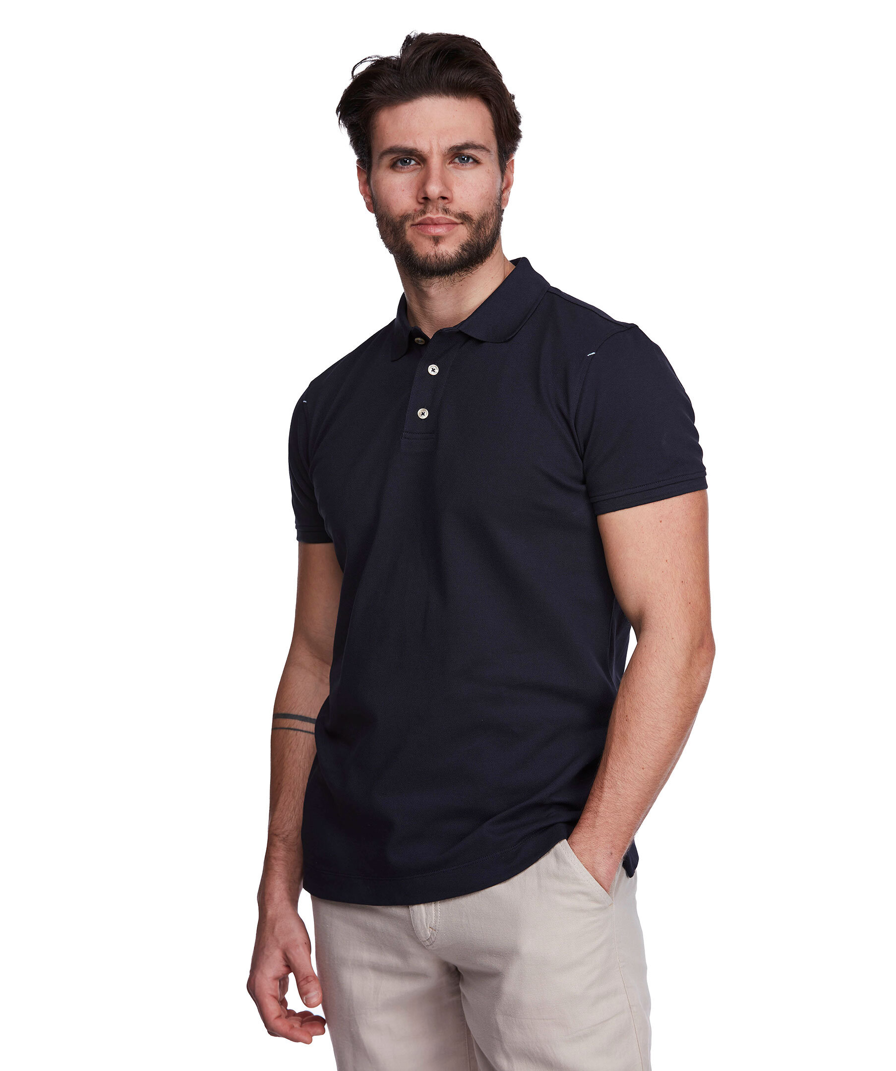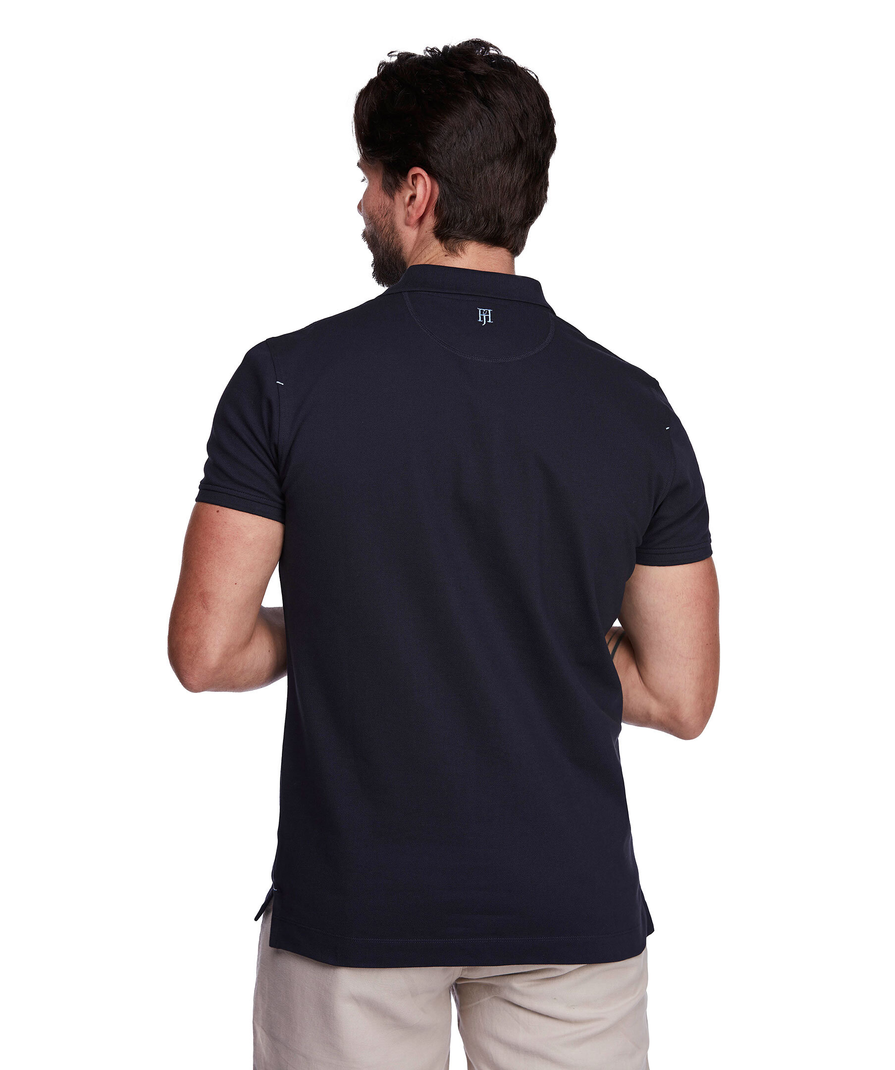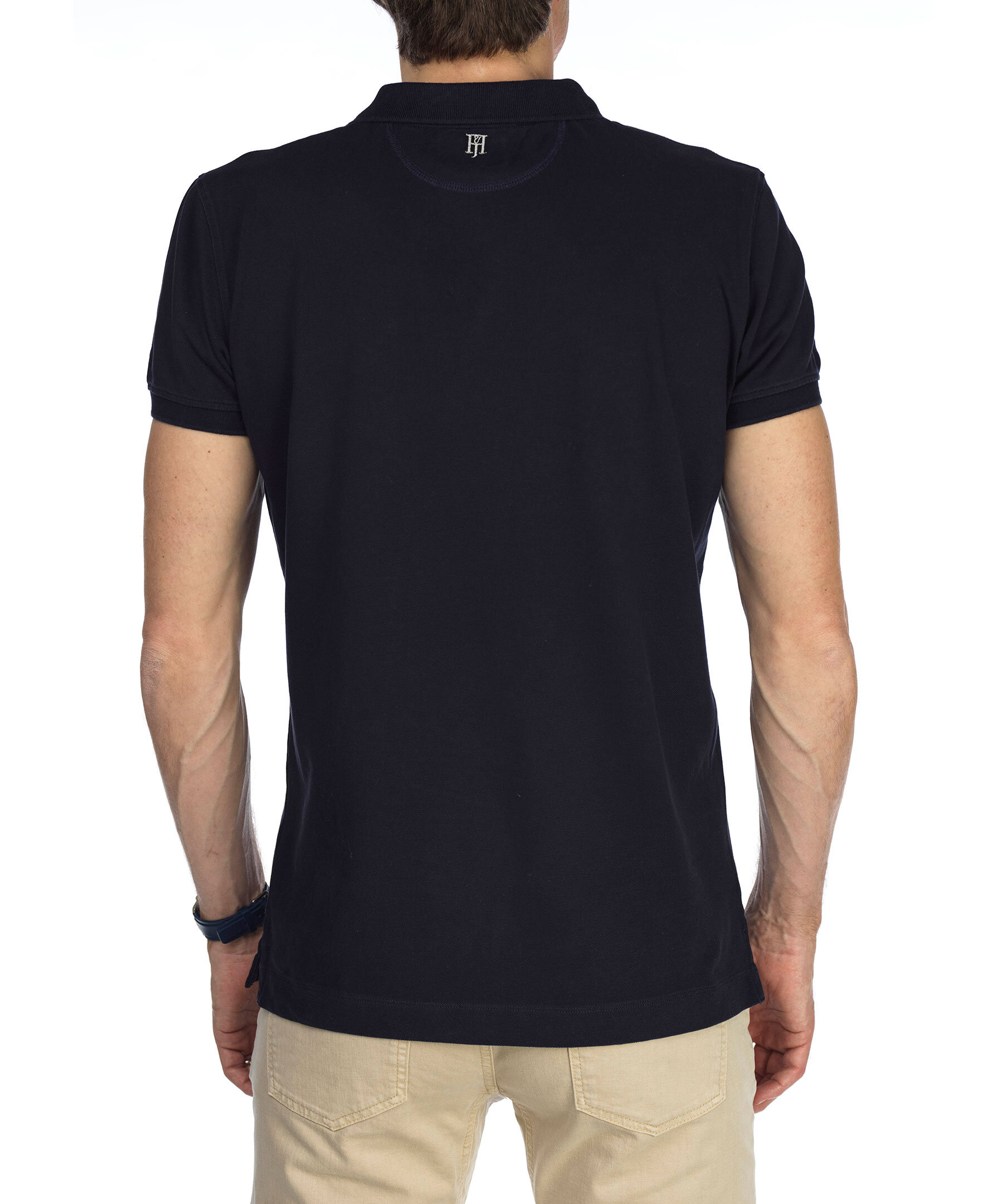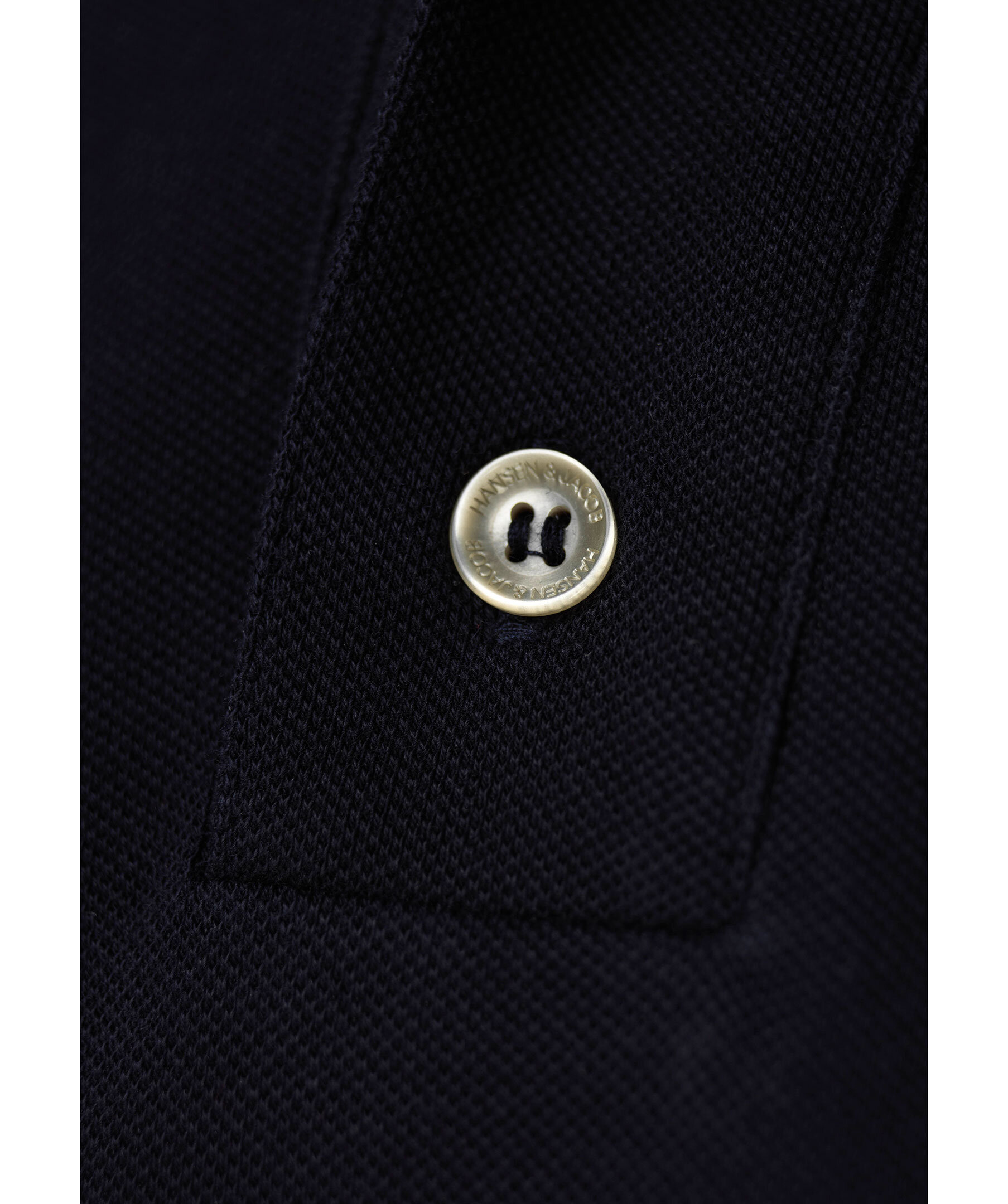 Marinblå pikétröja från Hansen & Jacob. Tillverkad i bomull med stretch. Modern passform, logotyp i nacken, slitsar i sidorna.
