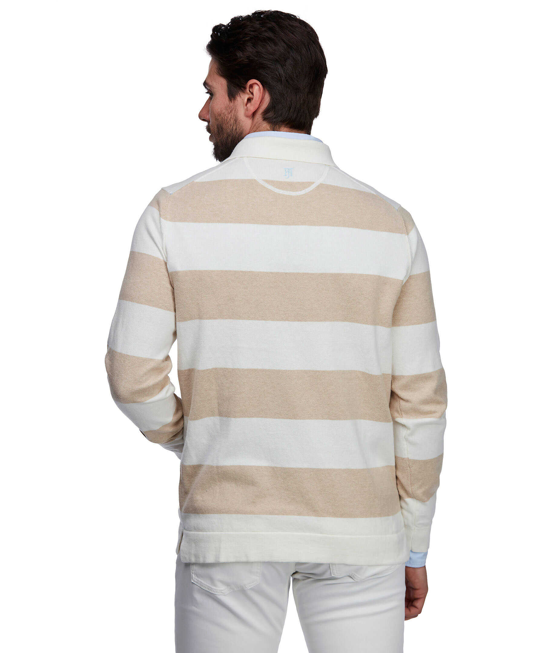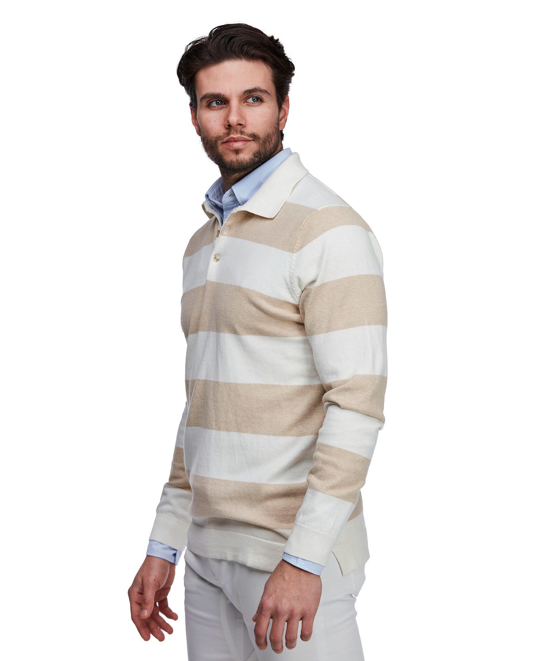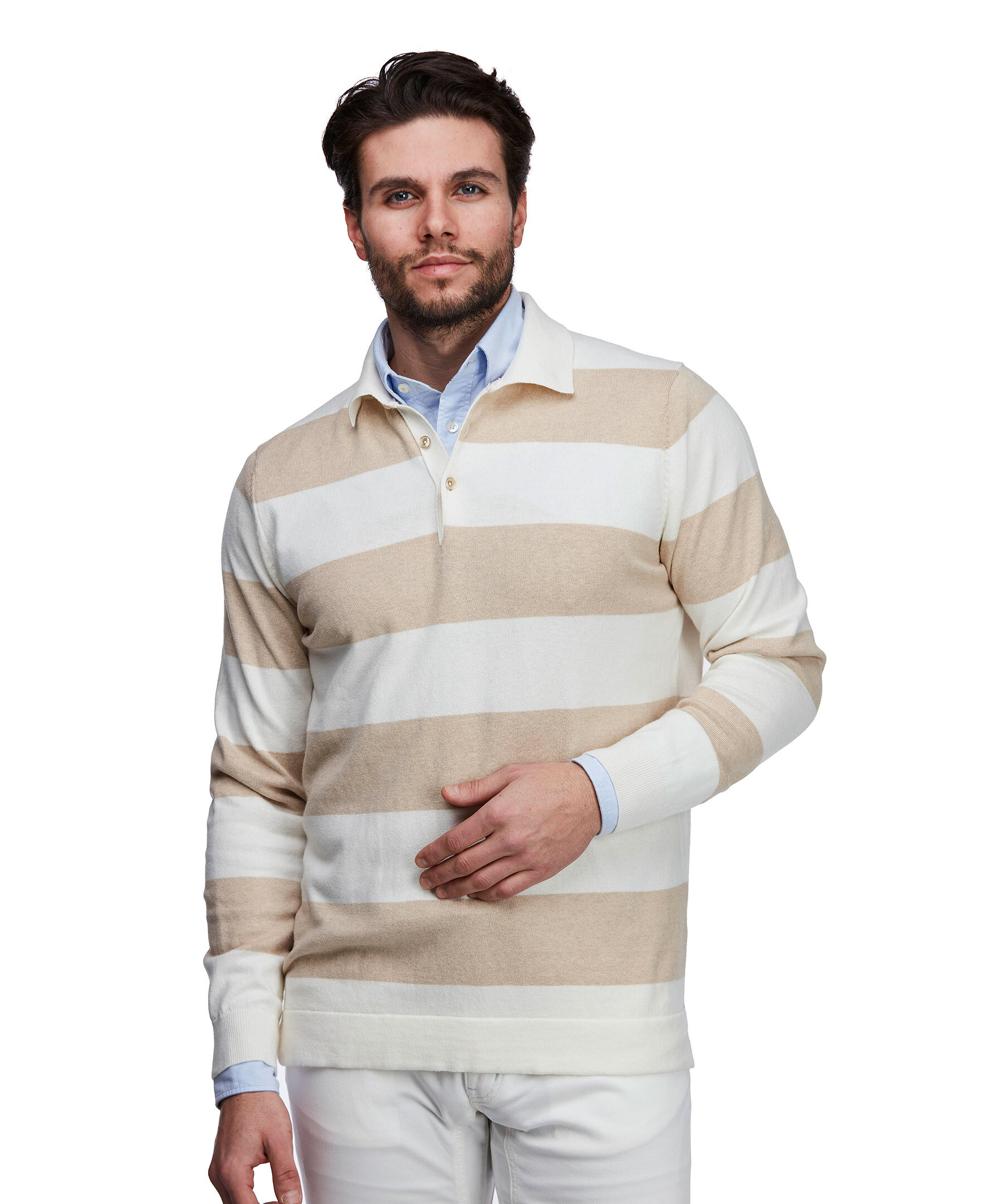 Denna snygga tvärrandiga långärmade tröja med krage och 3 knappars knäppning är ett måsteplagg för säsongen. Kommer i två riktigt snygga färgkombinationer. 95% bomull och 5% kashmir gör denna riktigt skön och behaglig.