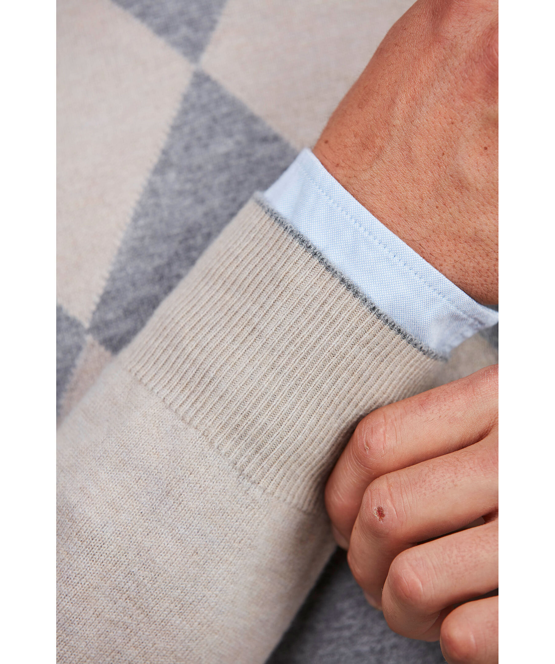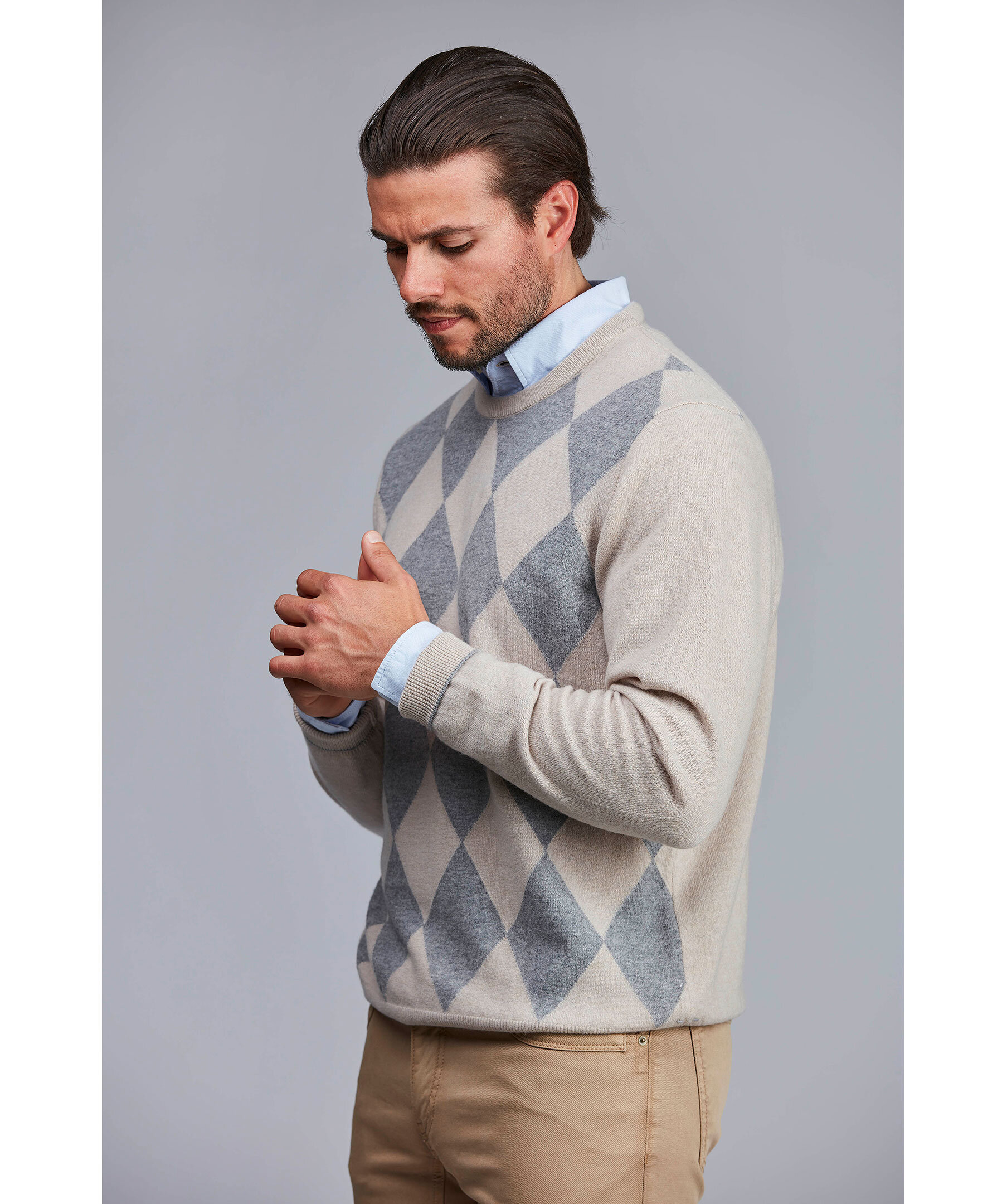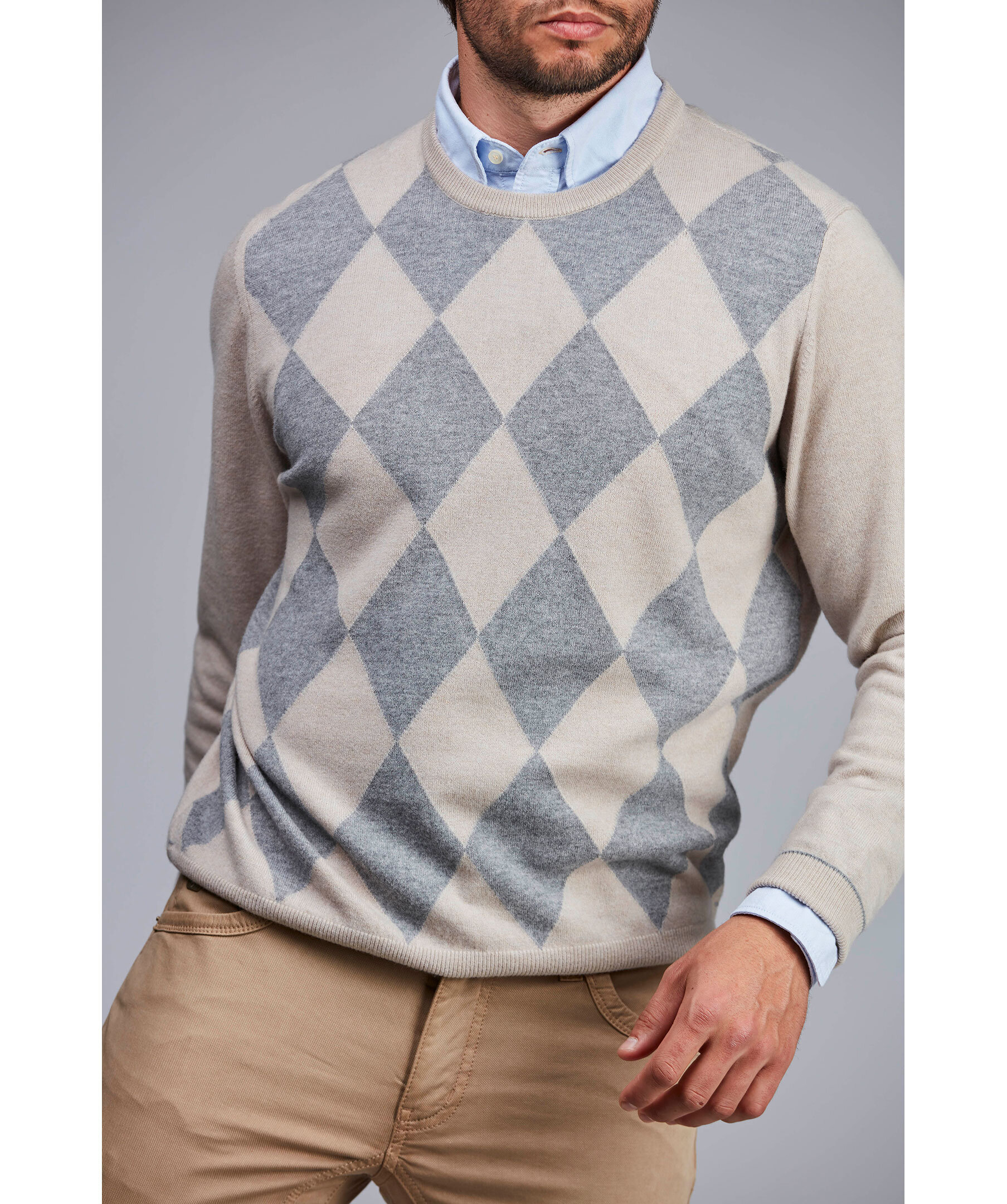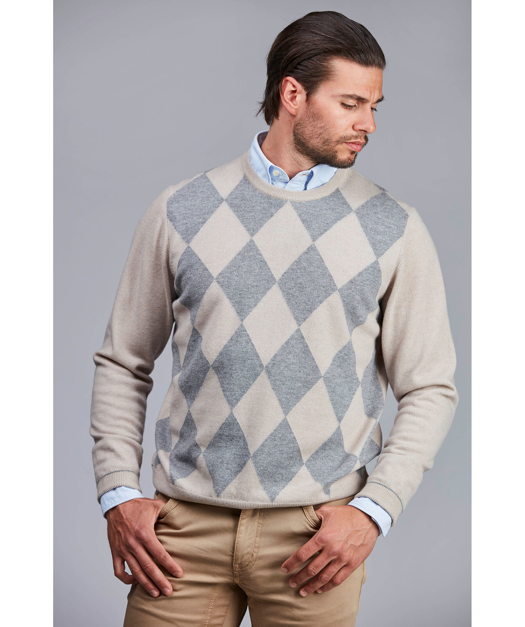 En snygg, tidlös och otroligt skön lammullströja med argyle mönster. Kommer i rund hals och finns i två färger.