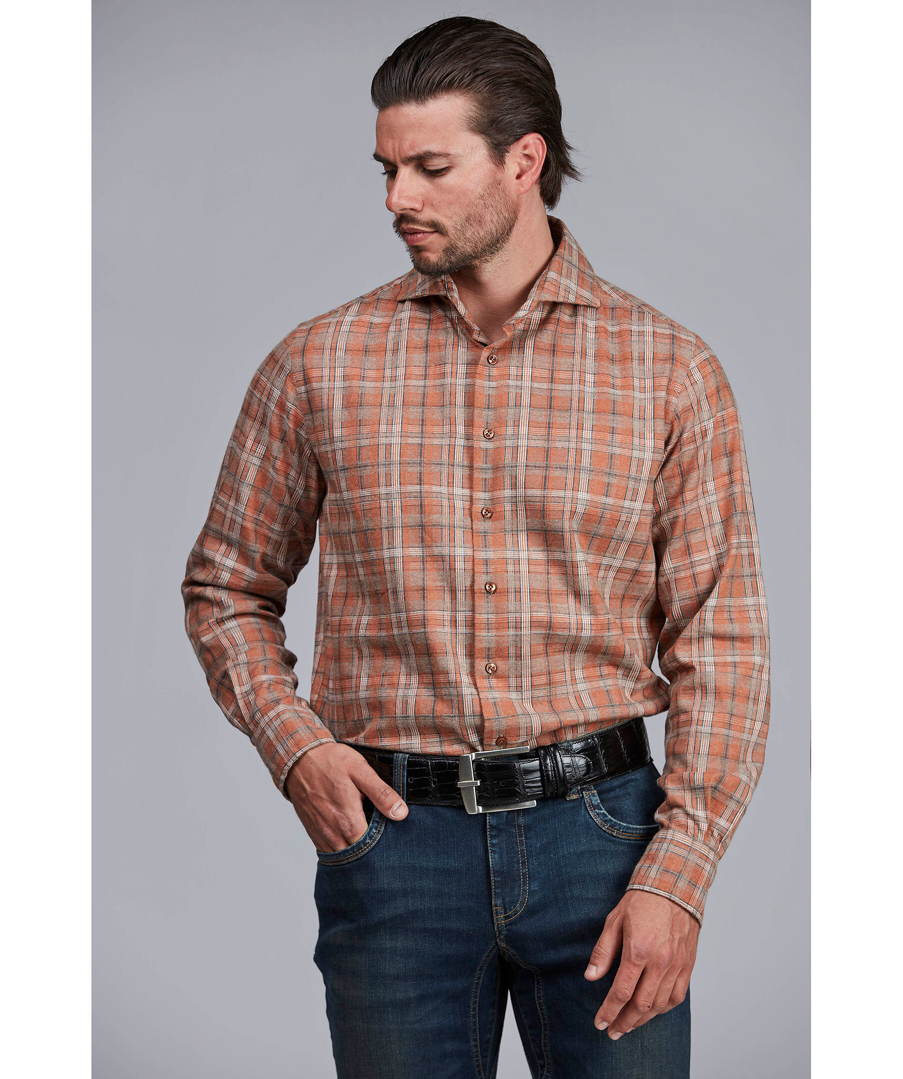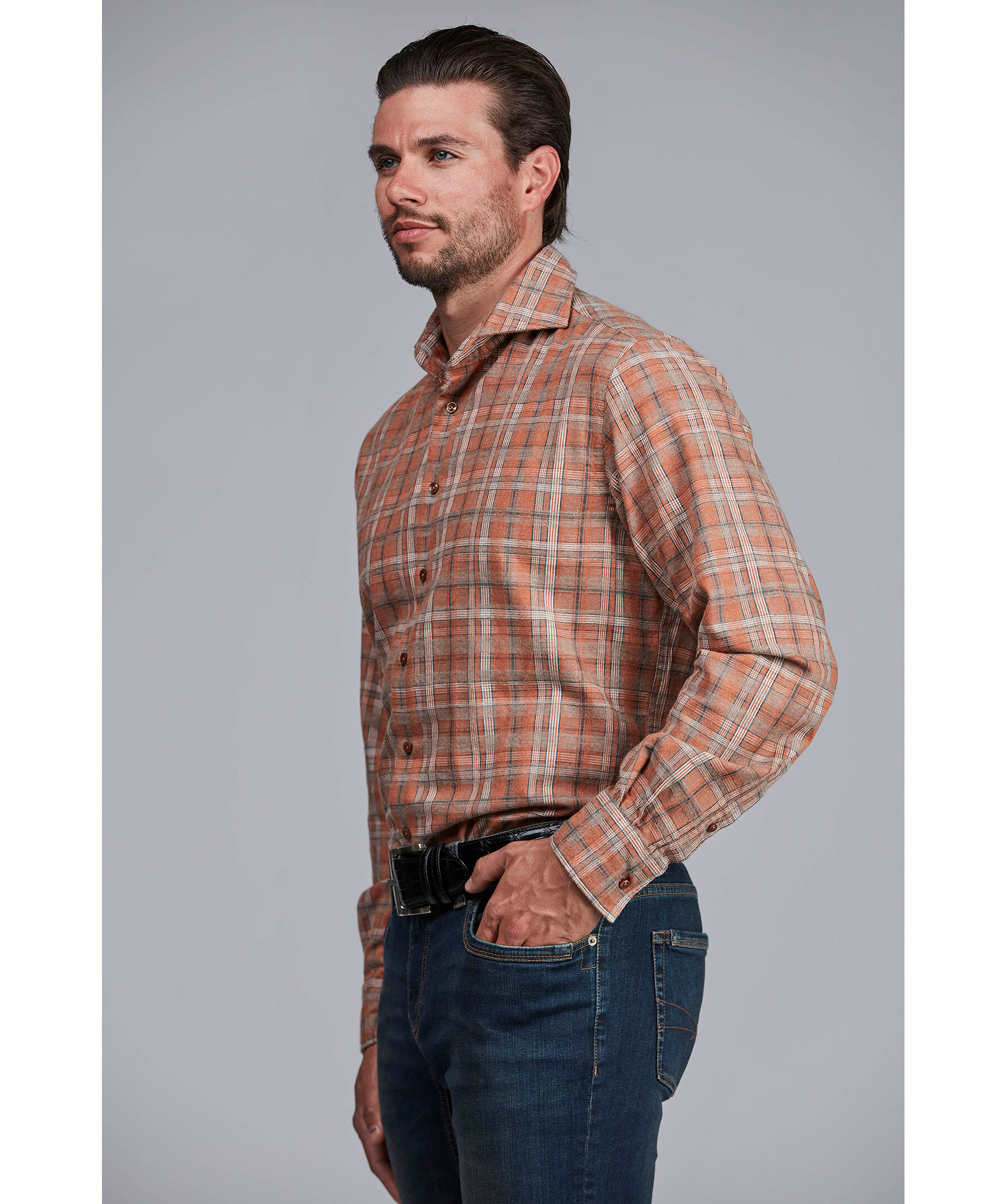 En väldigt populär rutig flanellskjorta. Den finns i tre härliga höstfärger som passar till det mesta. Mjuk och skön skjorta i 100% bomull och med cut-away krage.