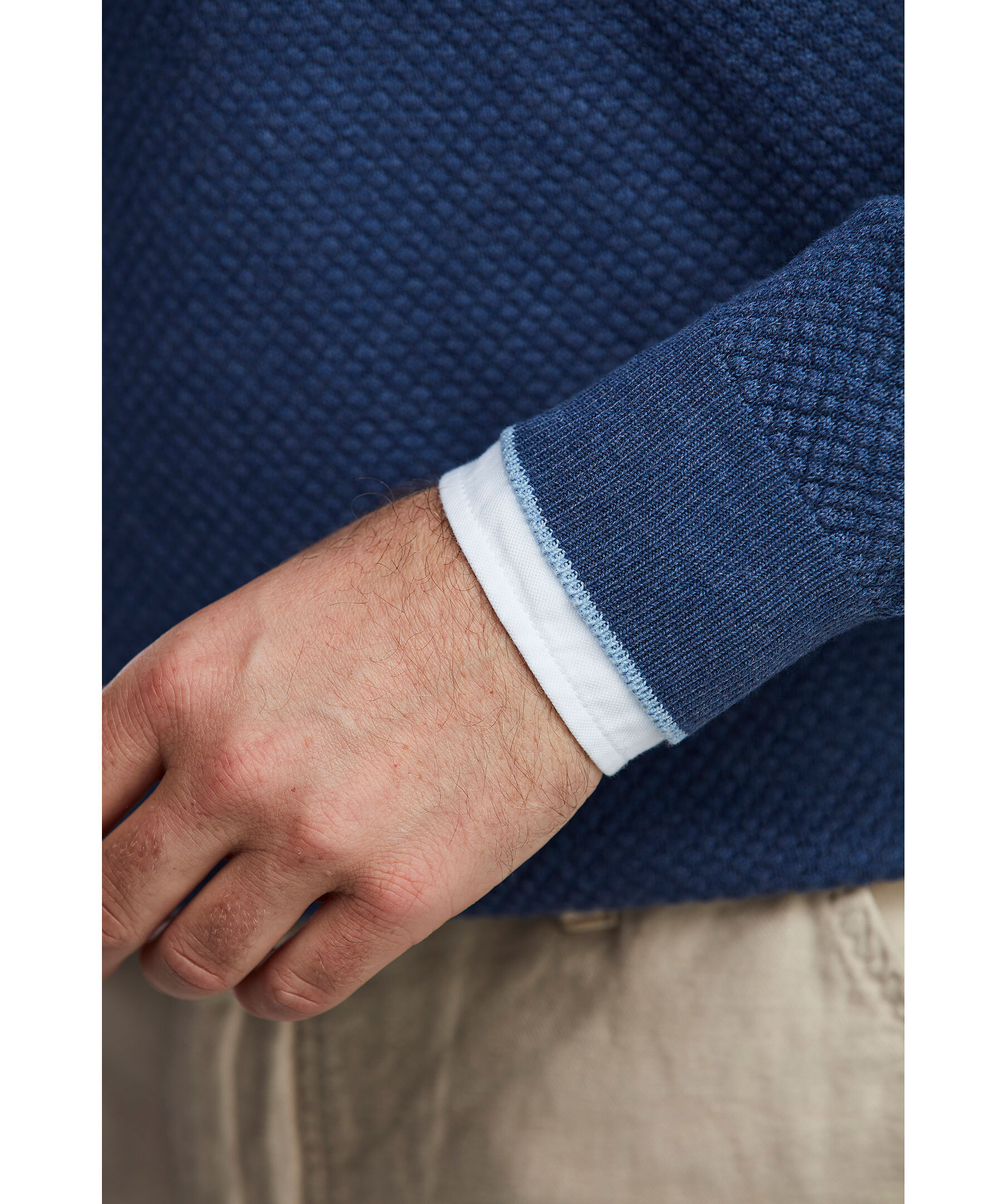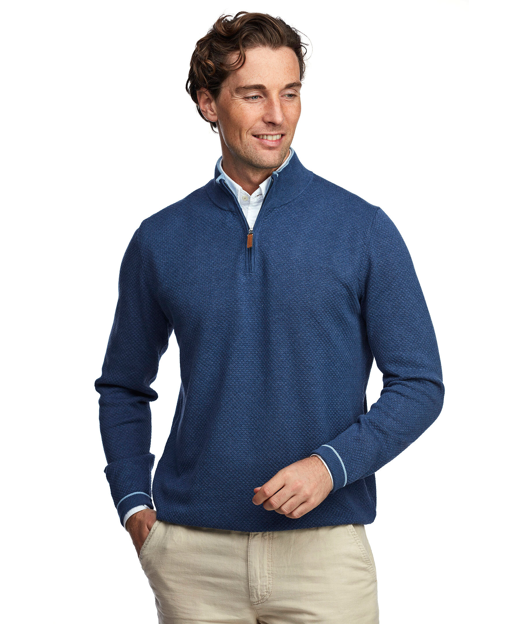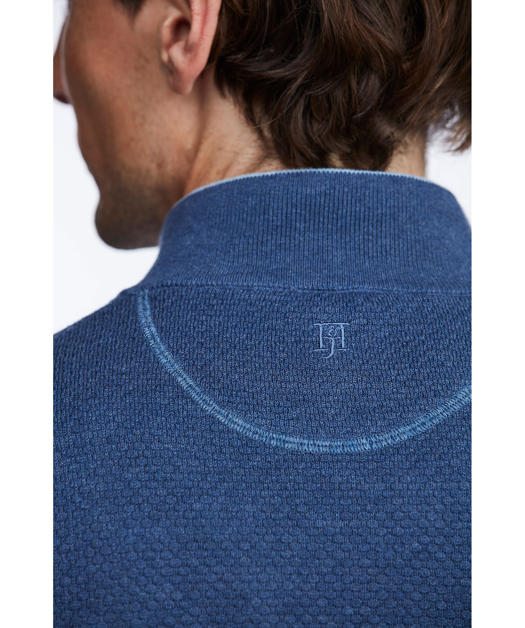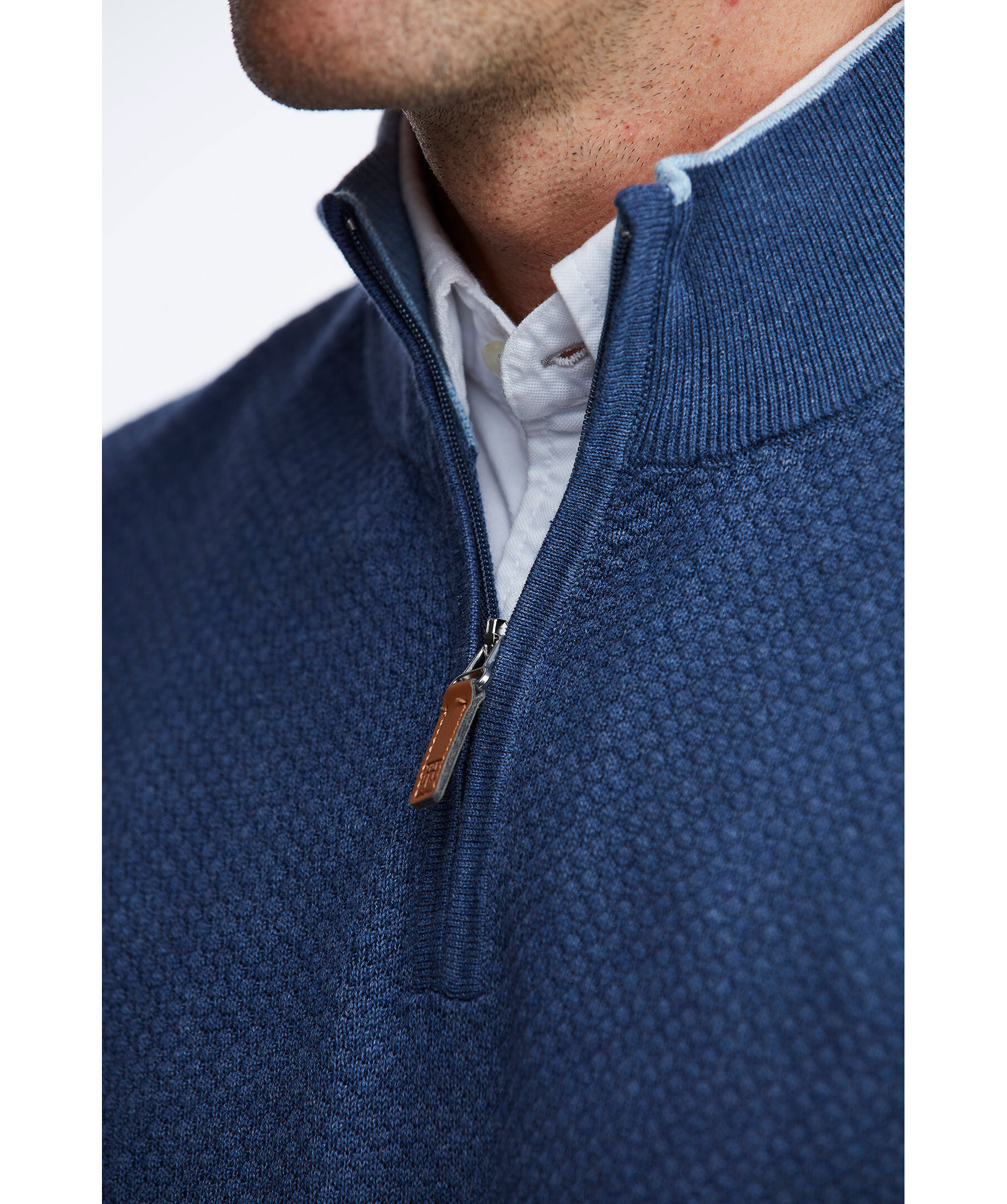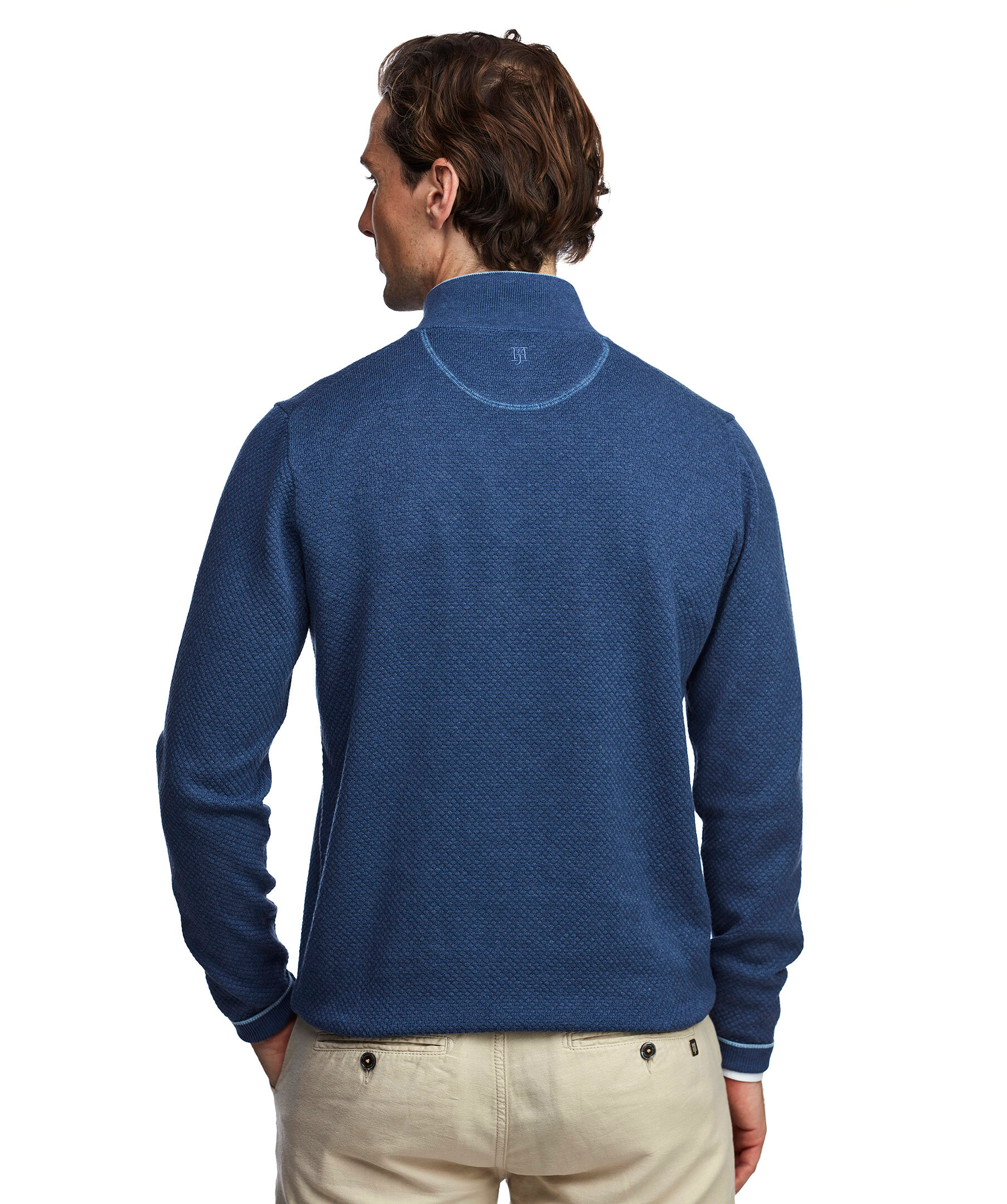 Denna halvzippade bomullströja är en nyhet för säsongen. Den har en s.k diamentstickning som ger den ett snyggt, modernt och lyxigt utseende. Kommer i en hel del färger. Tröjan har en dragkedja som man kan dra ner en liten bit. Den går både att klä upp med en skjorta och slips eller klä ner med bara en t-shirt undertill.