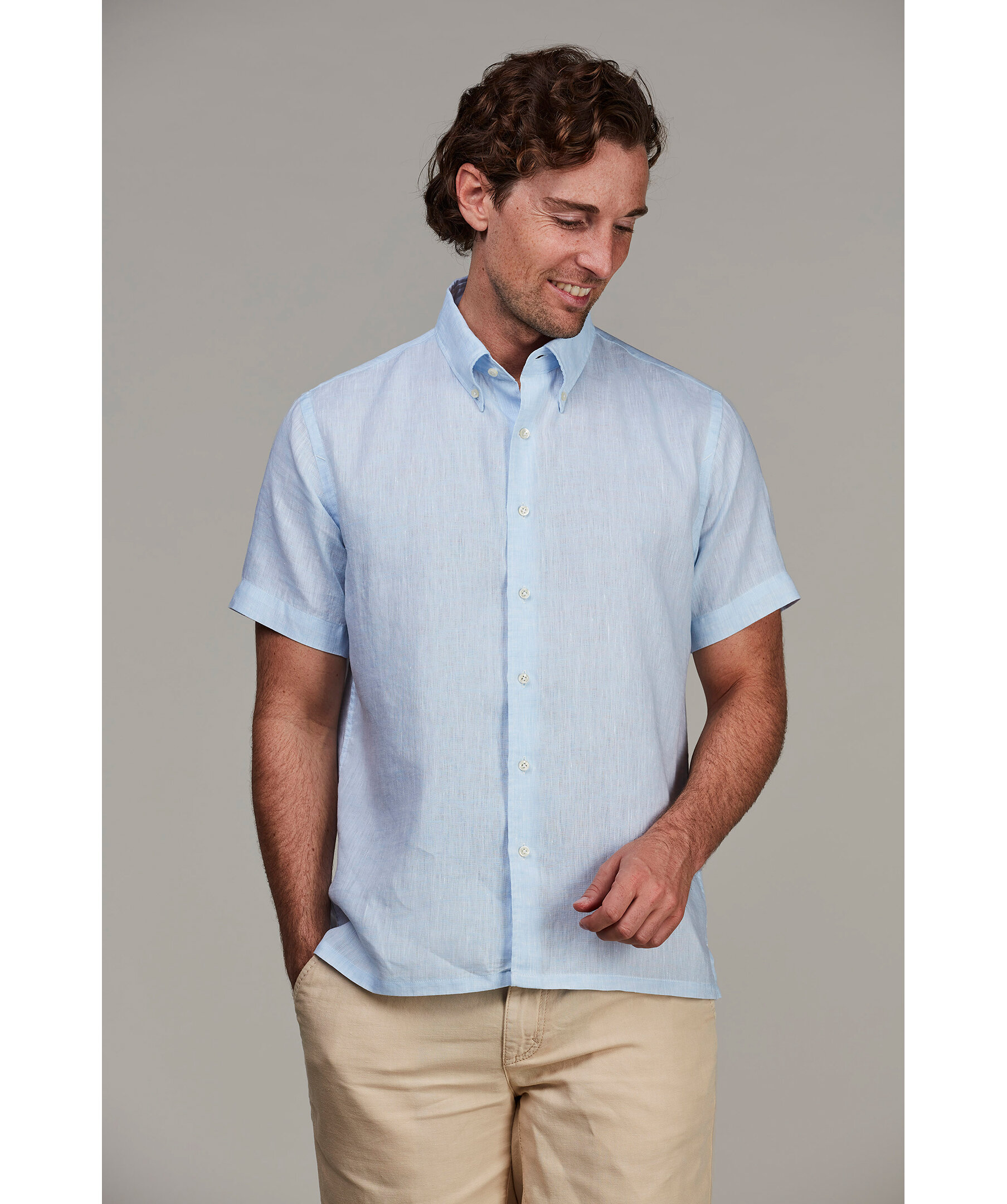 Uppgradera din sommarstil med denna kortärmade linneskjorta från exklusiva Somelos. Denna skjorta erbjuder en luftig och svalkande känsla tack vare linnekvaliteten, perfekt för varma dagar. Med en klassisk button down-krage och en avslappnad 'casual fit' får du både stil och komfort i ett plagg.