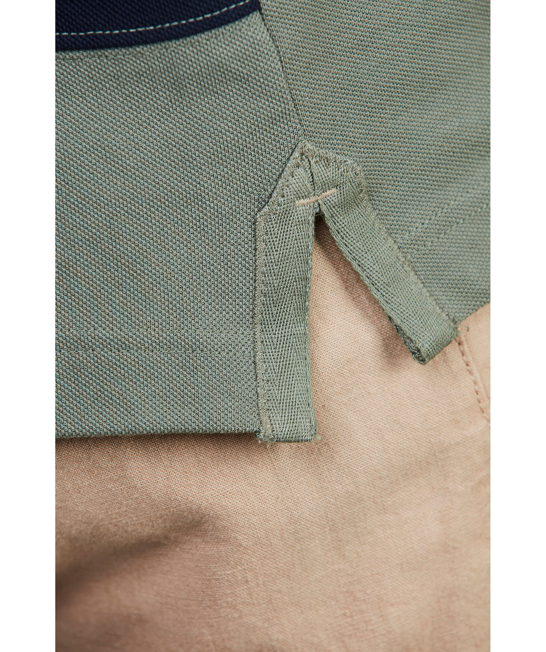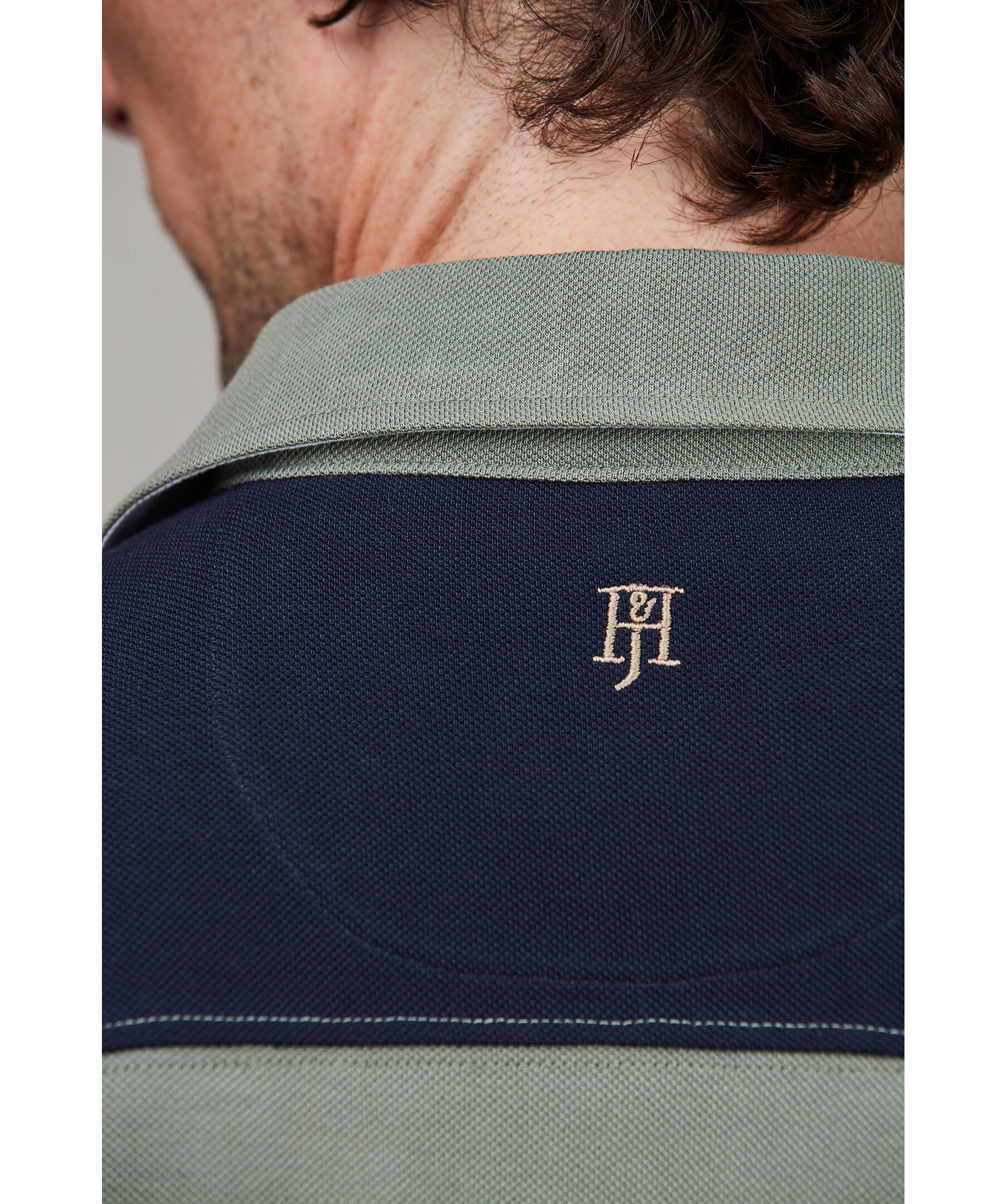 Denna ikoniska kortärmade piké är tillverkad i plaggtvättad, mjuk bomull och är full av exklusiva detaljer som broderier under kragen och på bröstet. Framsidan har en stilren, enfärgad design medan ryggen överraskar med blockrandigt mönster.