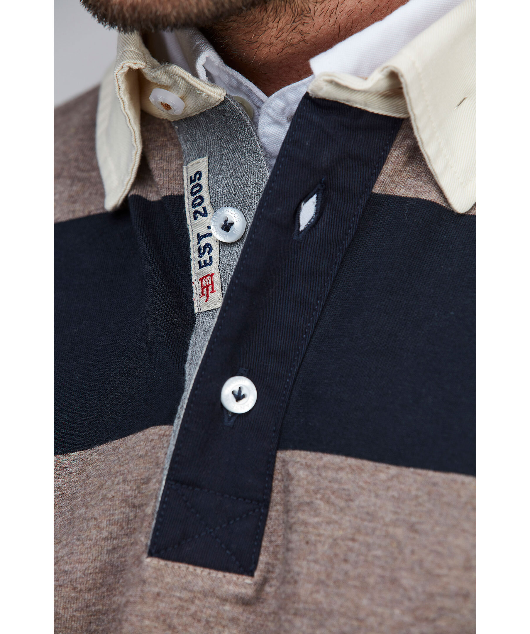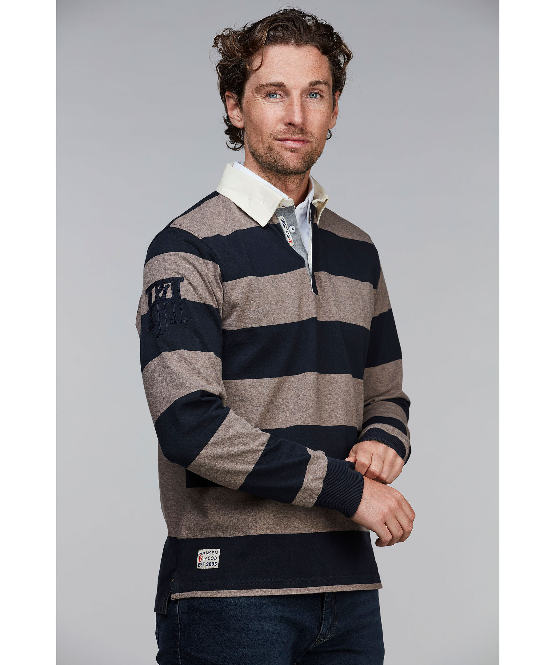 Detta är så mycket rugbytröja man kan komma. Klassisk tvärrandig i två färger och med creme vit krage. På ryggen finns en snygg batch med året då vi grundades. Ett givet val för den som vill ha en klassisk rugbytröja.