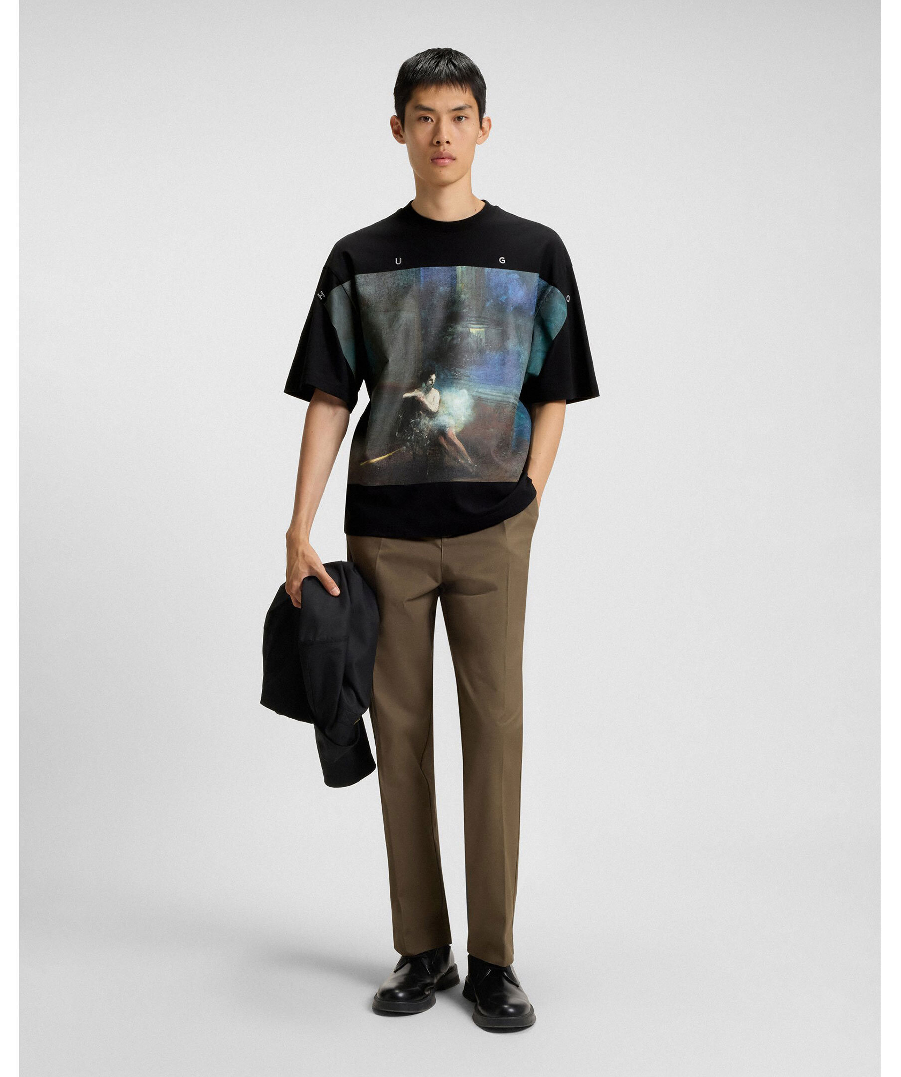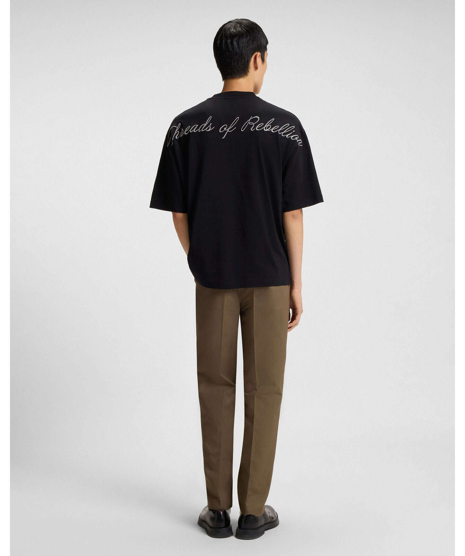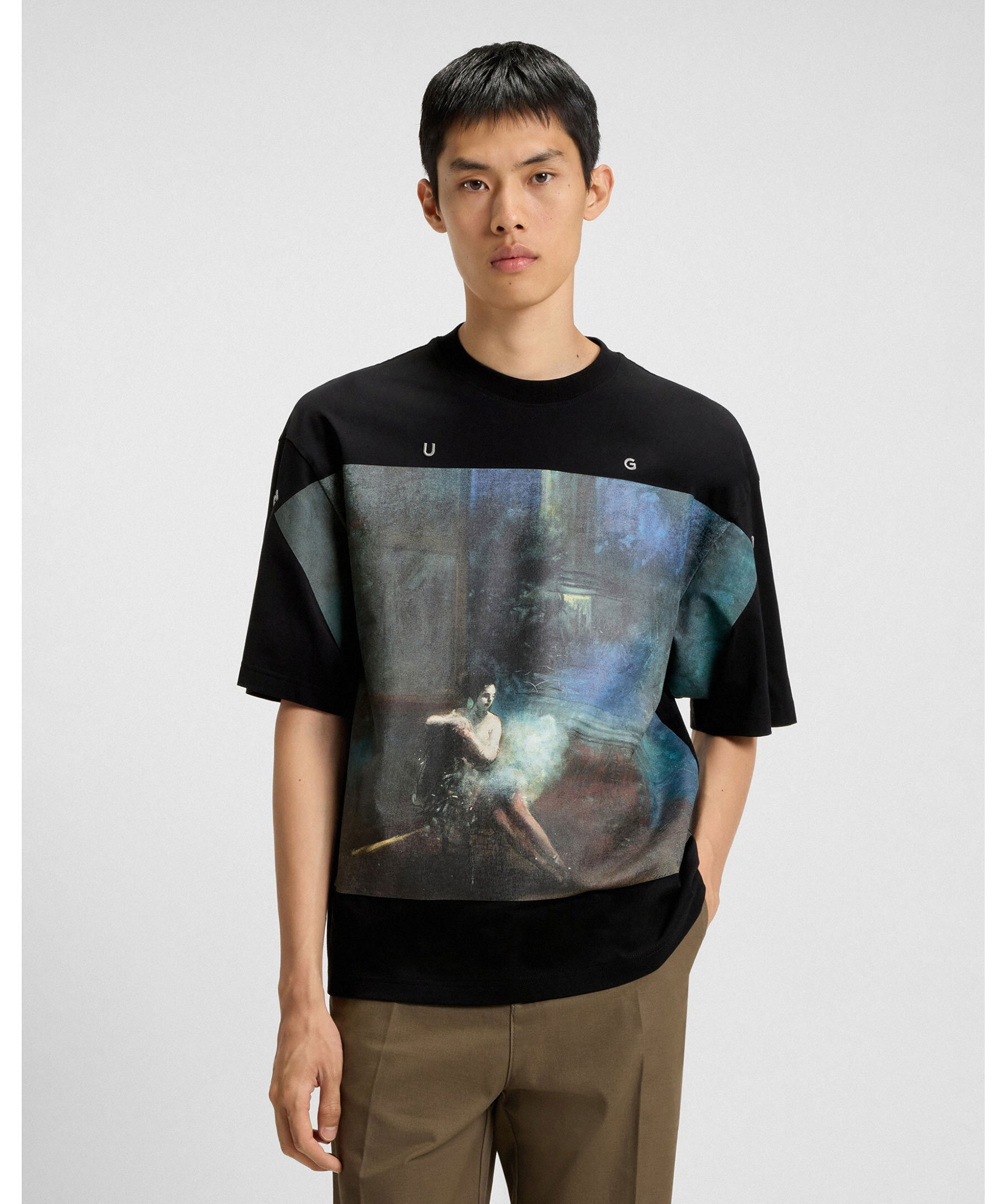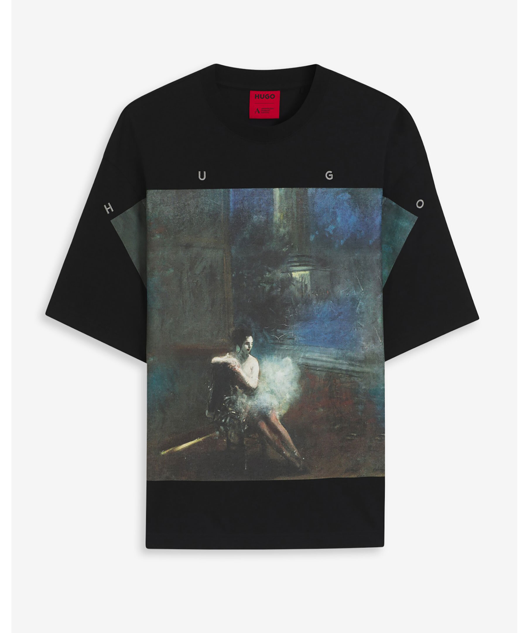 Svart T-shirt från Hugo med tryck fram samt broderi på ryggen. 100% bomull.