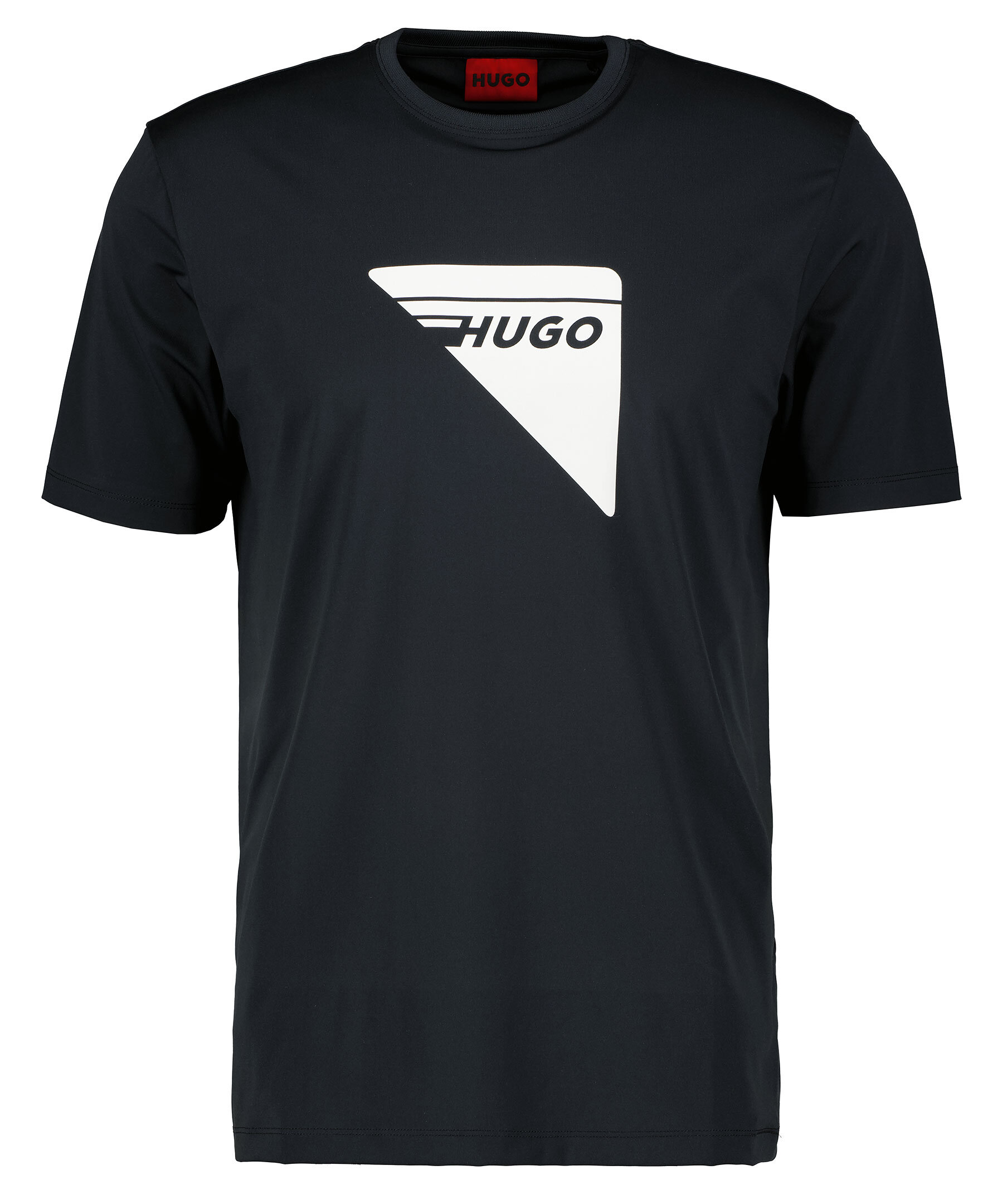 Svart tränings T-shirt från HUGO Men. Ribbstickade mudd med logotyp i halsringningen. Tryckt logotyp på bröstet med reflexfärg.