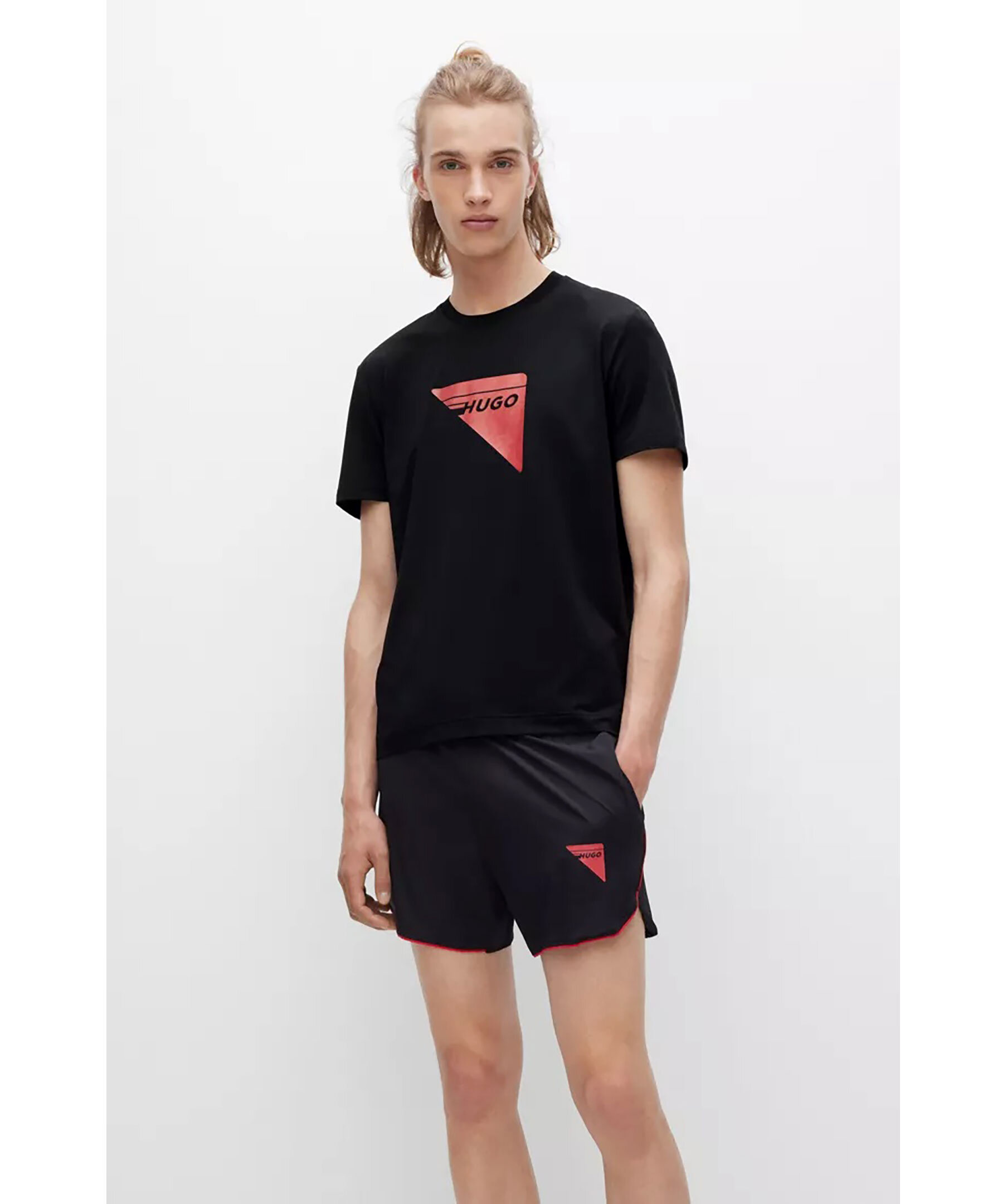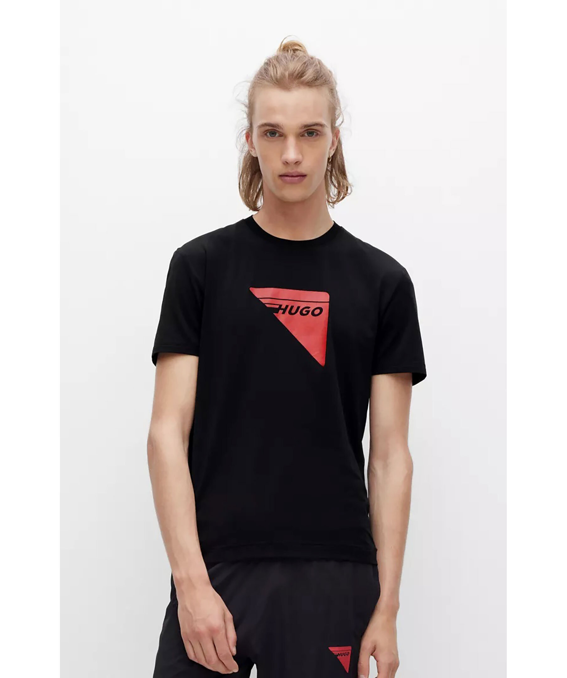 Svart träningströja i t-shirt modell från HUGO men. Tröjan har en normal passform och ett tryck med logotyp på bröstet. Gjord i en stretchig polyester och elastan.