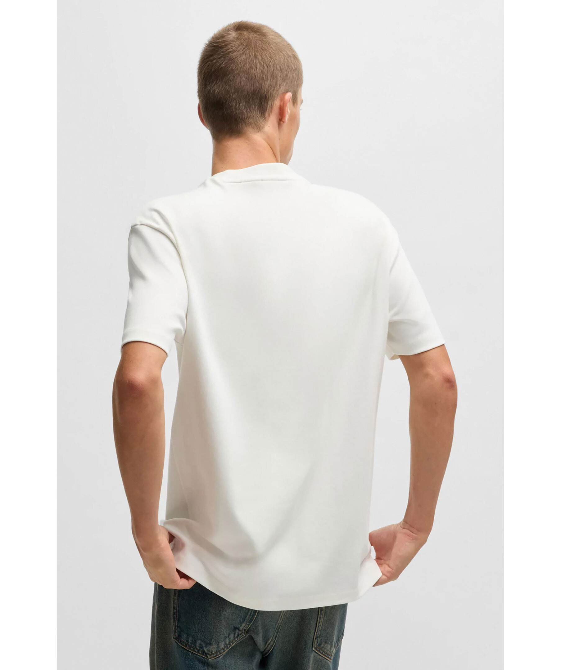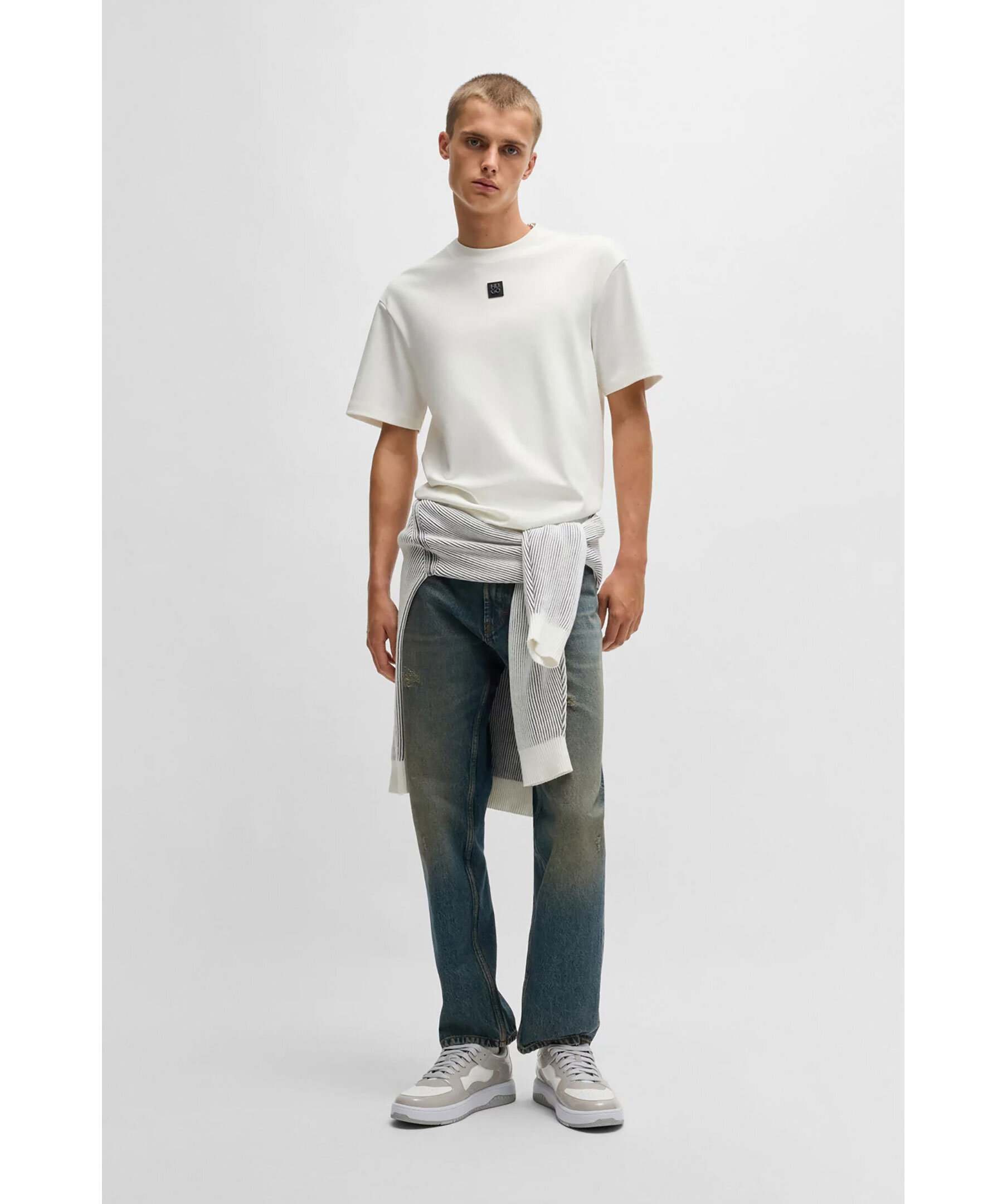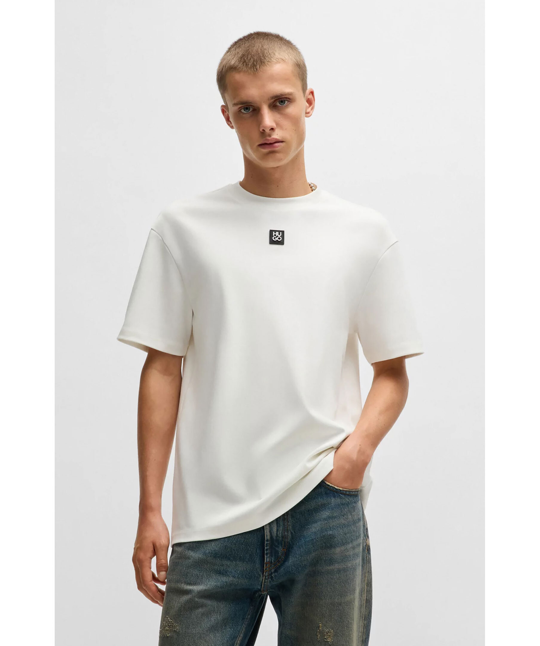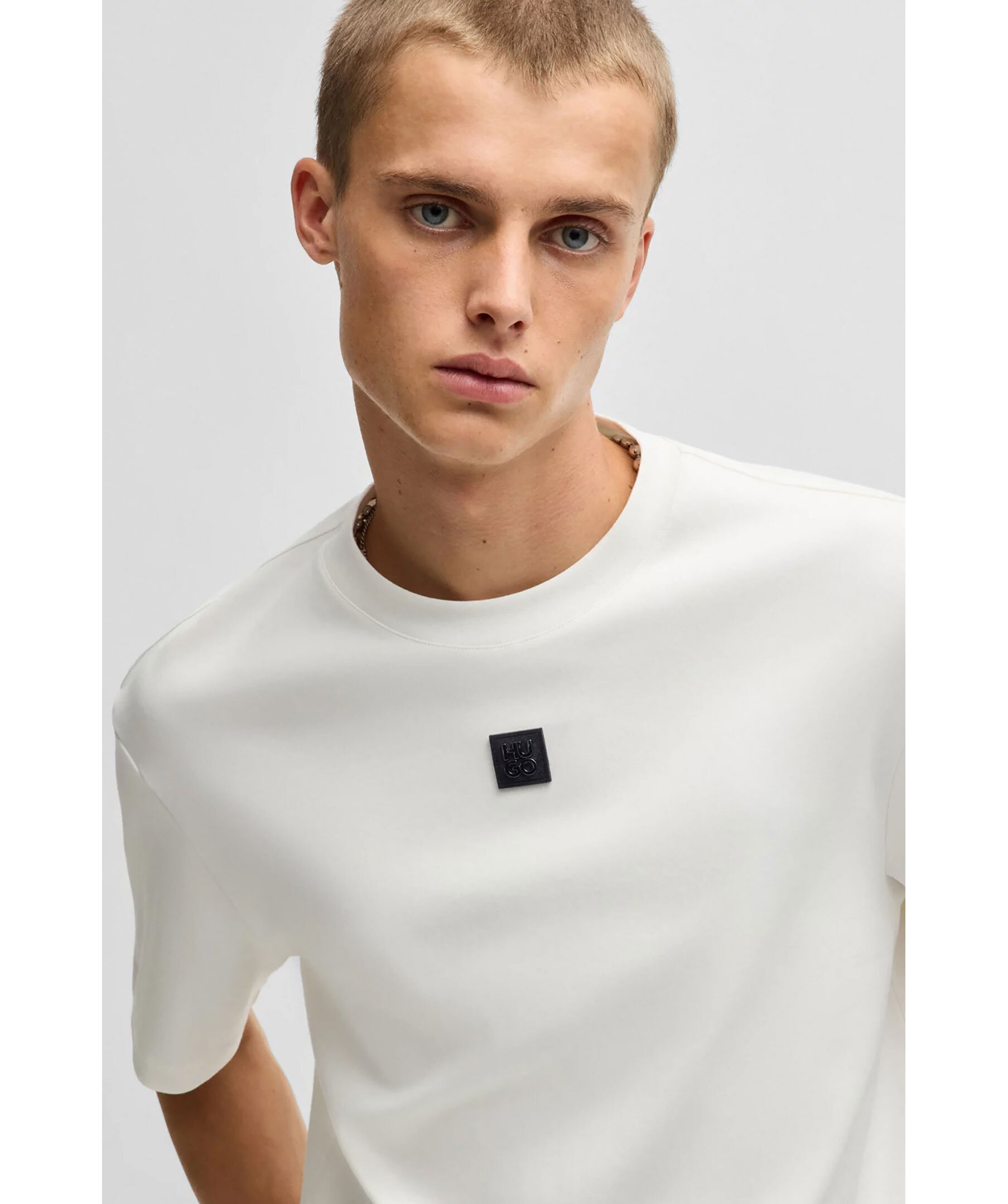 Vit t-shirt från HUGO. Tillverkad av interlockbomull med metallogotyp på bröstet. Rund hals. Rak passform.