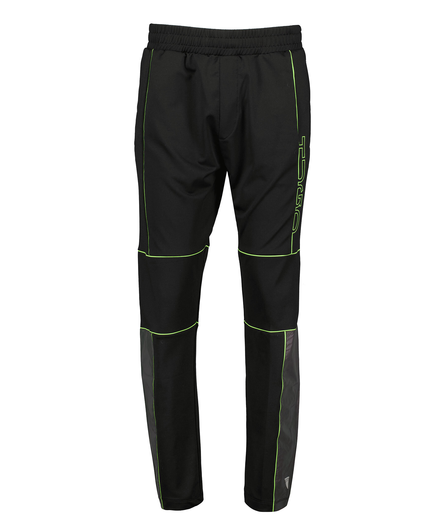Svarta träningsbyxor från Hugo. Resår i midjan, sidfickor. Tryckta detaljer och logotyp i neongrön. Panel i mörkgrått vid benslut.