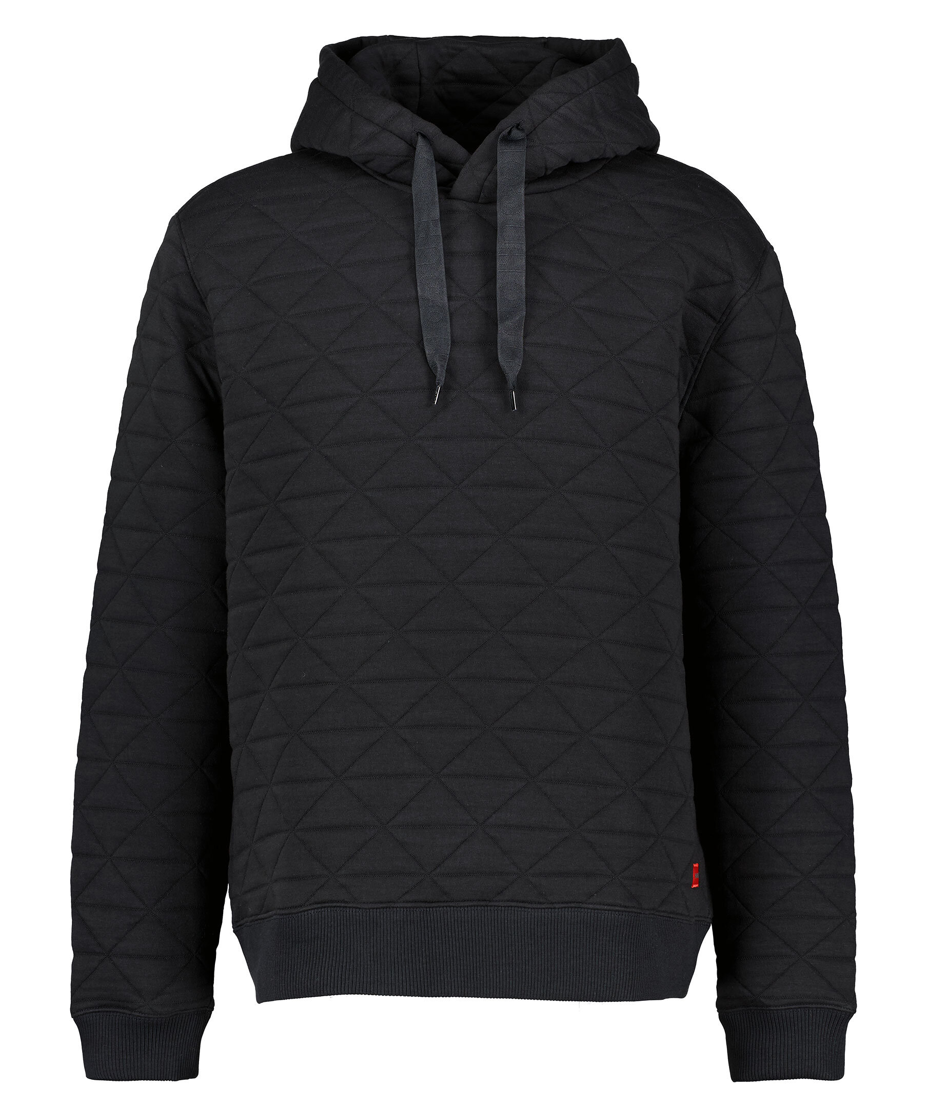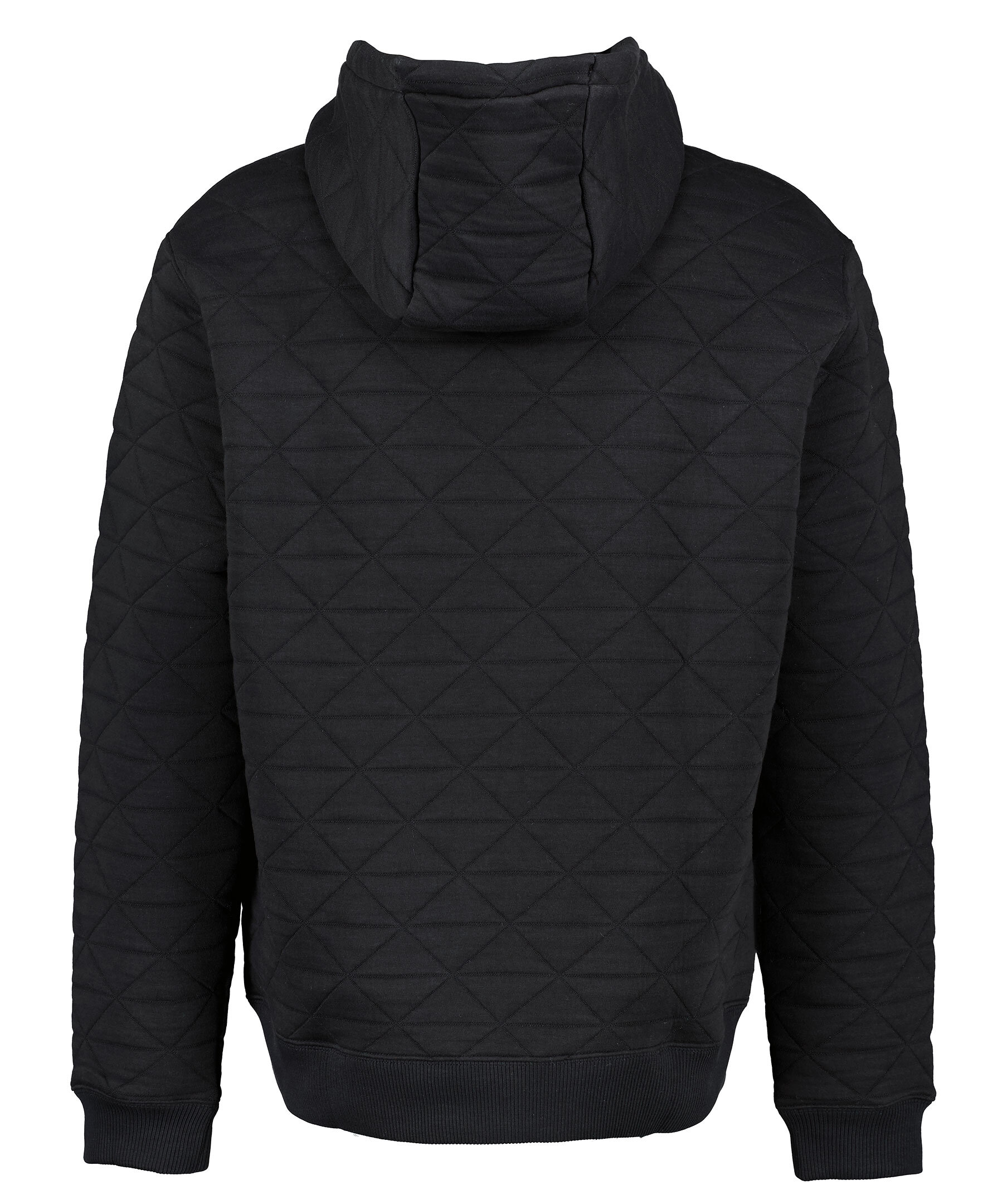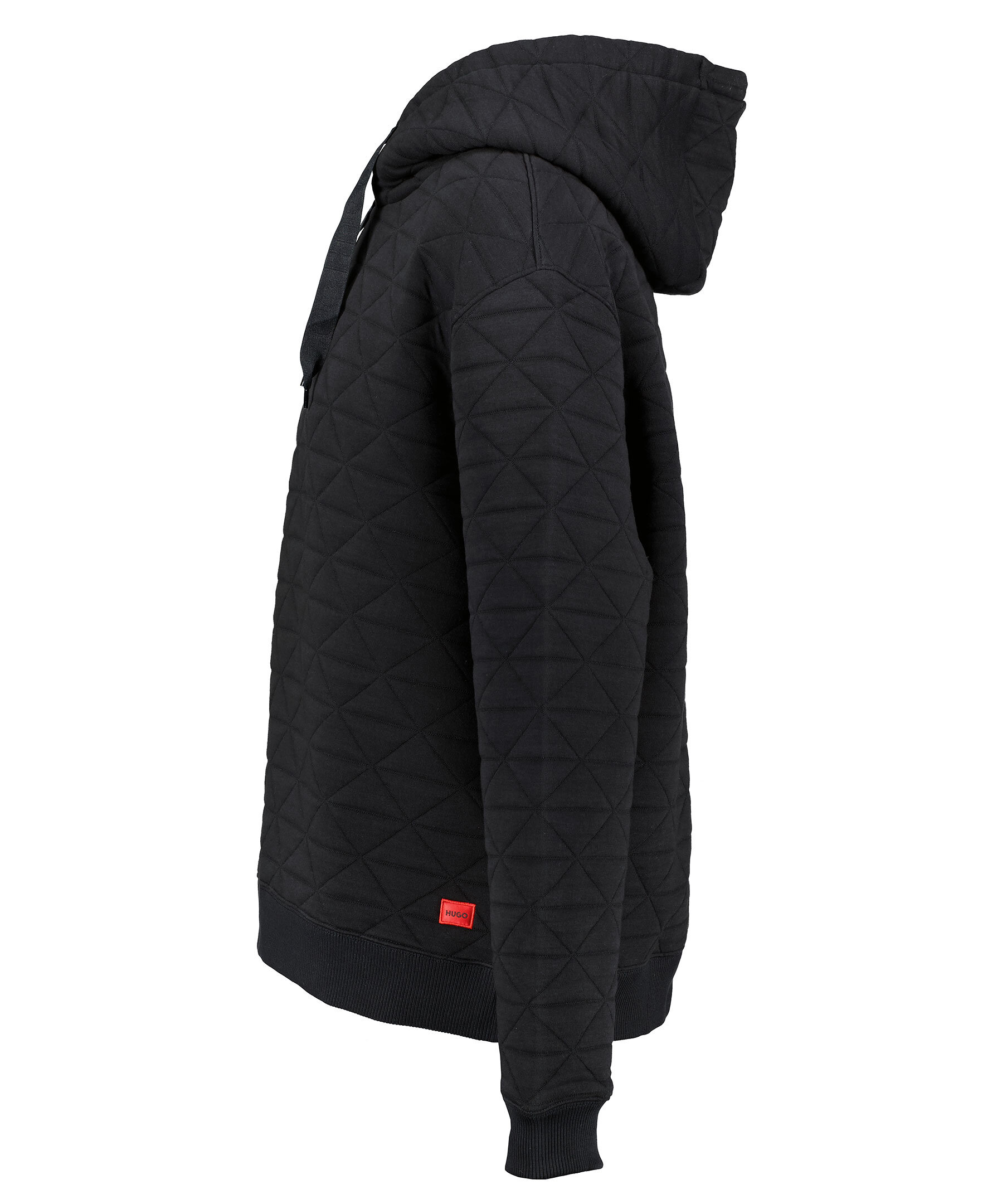 Svart, quiltad hoodie från HUGO Men, i en avslappnad passform. Tröjan är gjord i polyesterblandning. Har en liten logotyp i rött och svart på vänster höft och bred, svart snörning i luvan. Ribbade muddar i ärmslut och plaggslut.