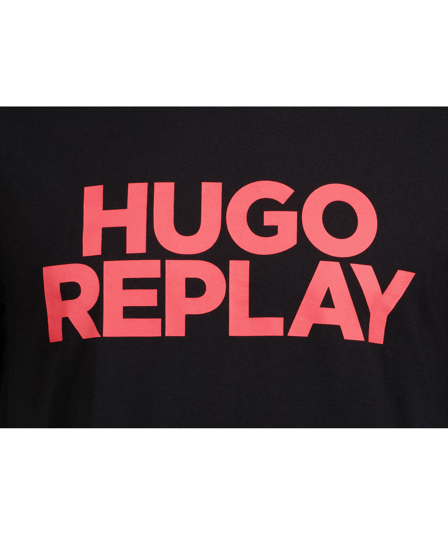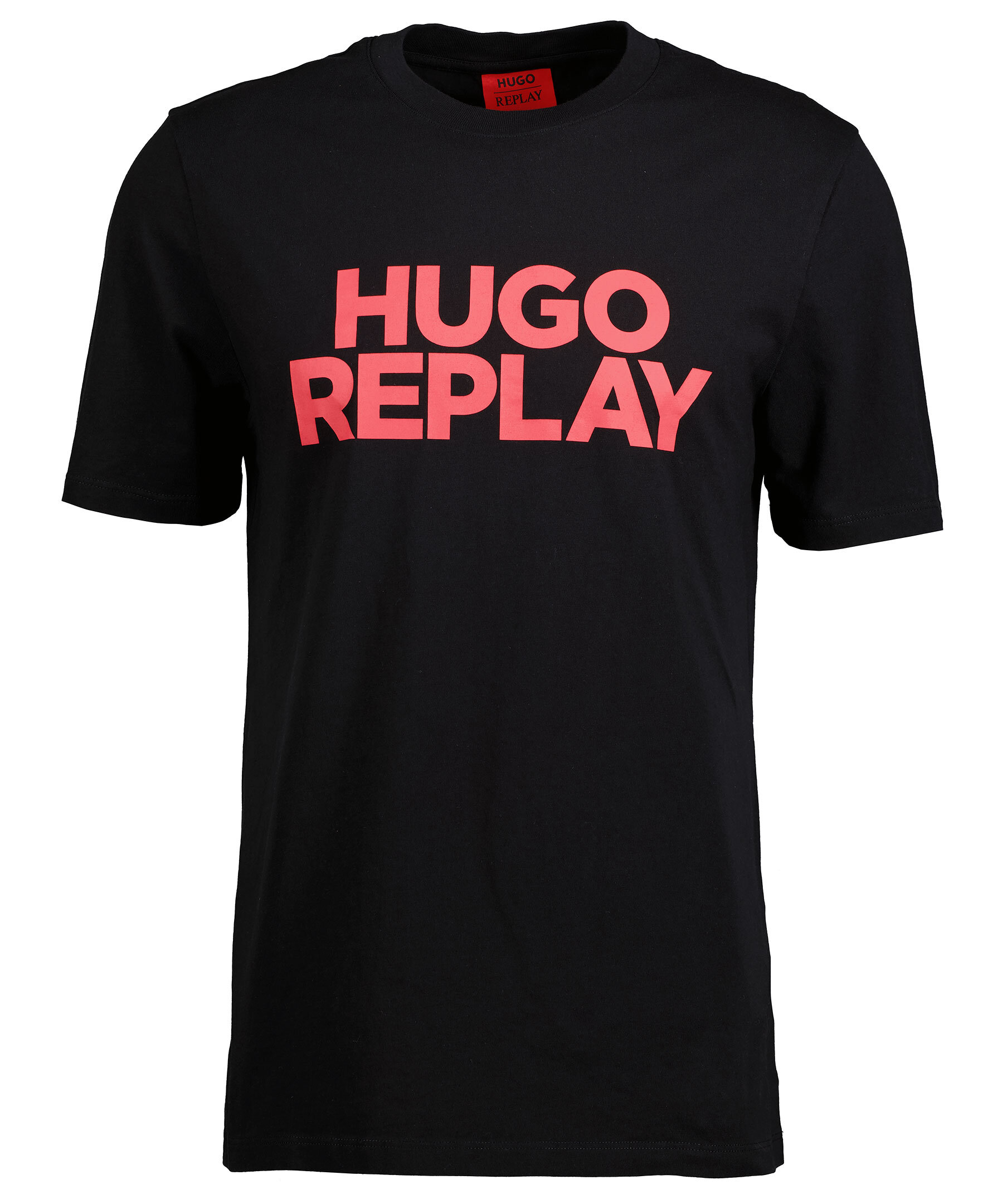 Svart T-shirt från HUGO x Replay. Tryckt logotyp i rött över bröstet. Rundad halsringning. Tillverkad i 100% bomull.