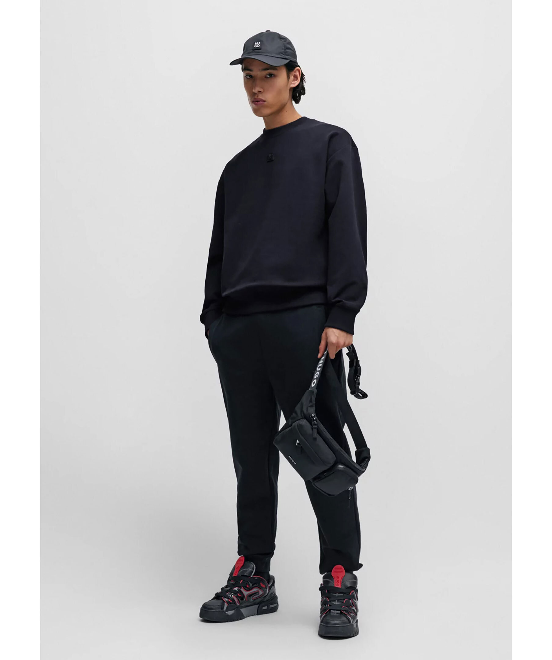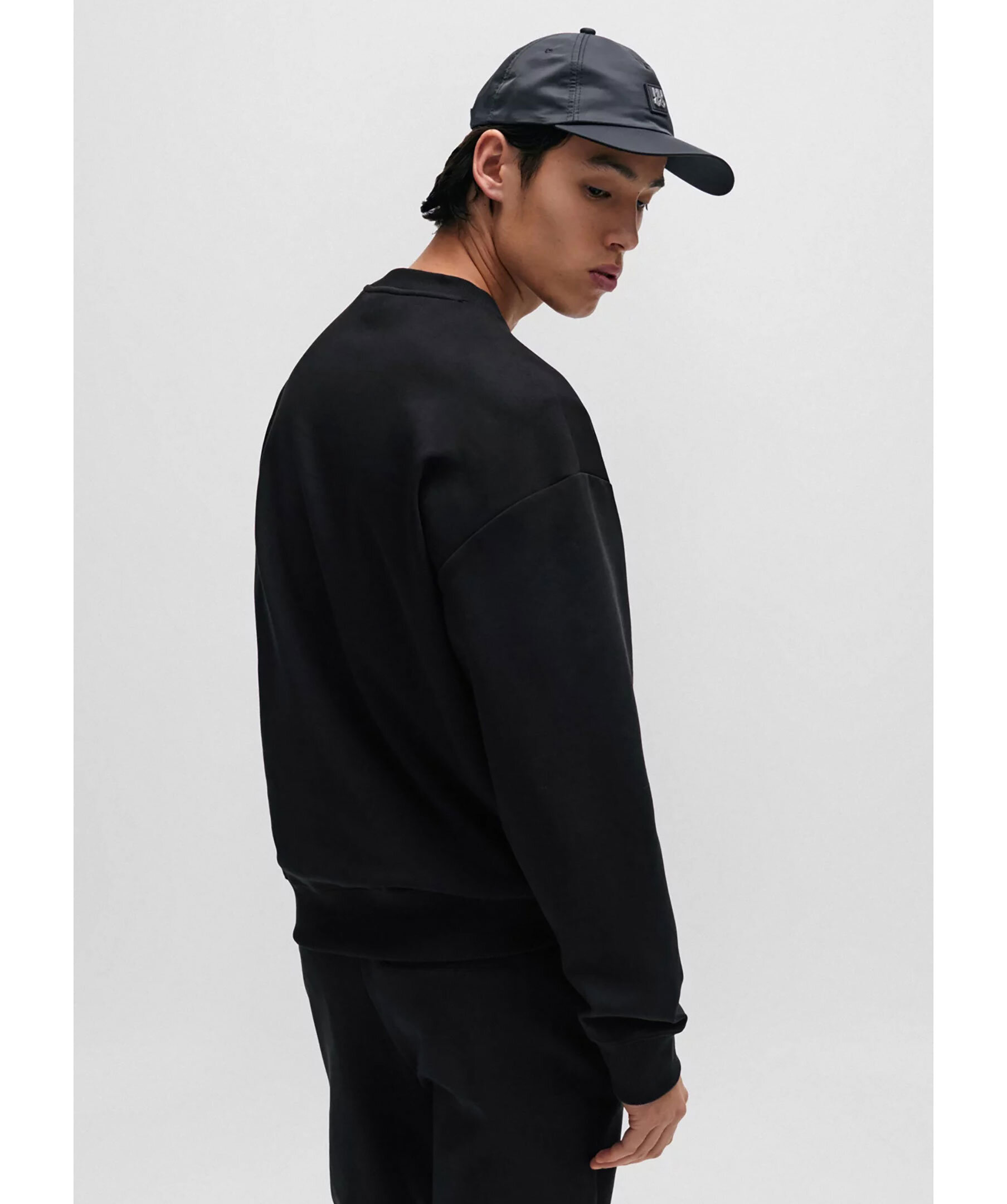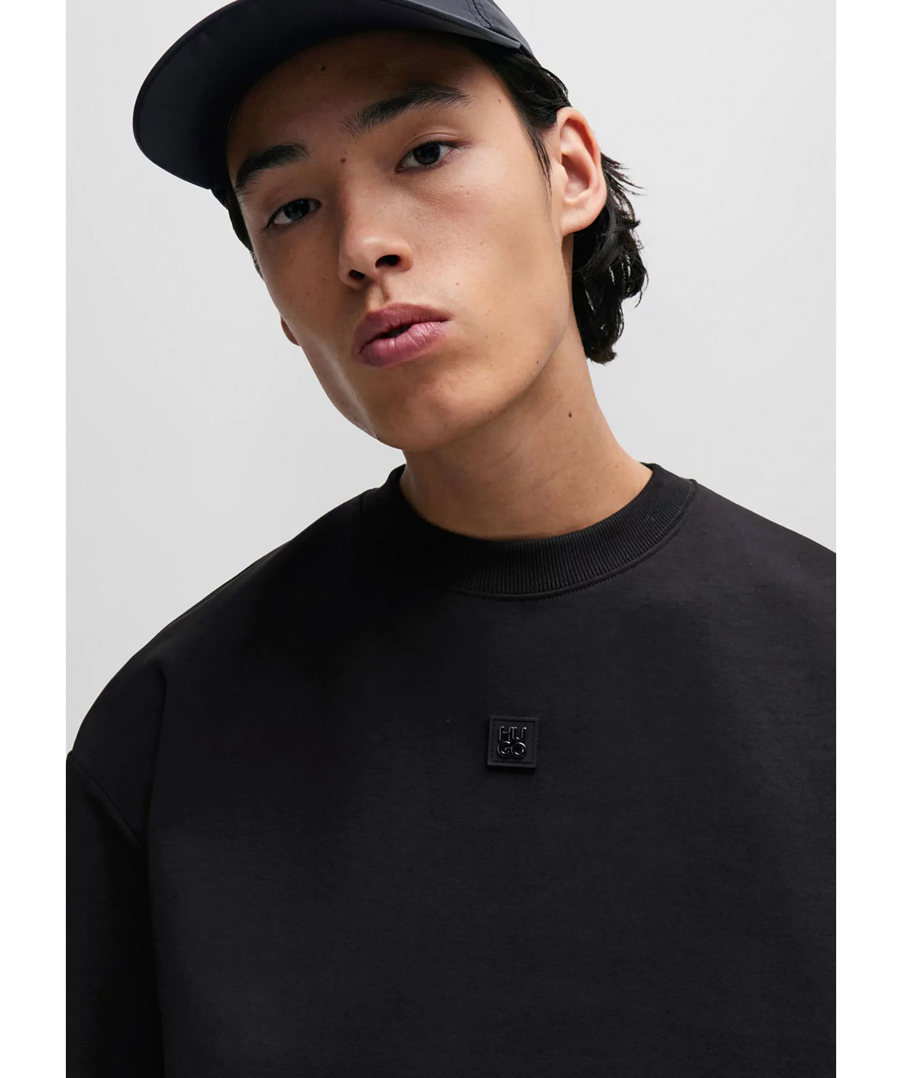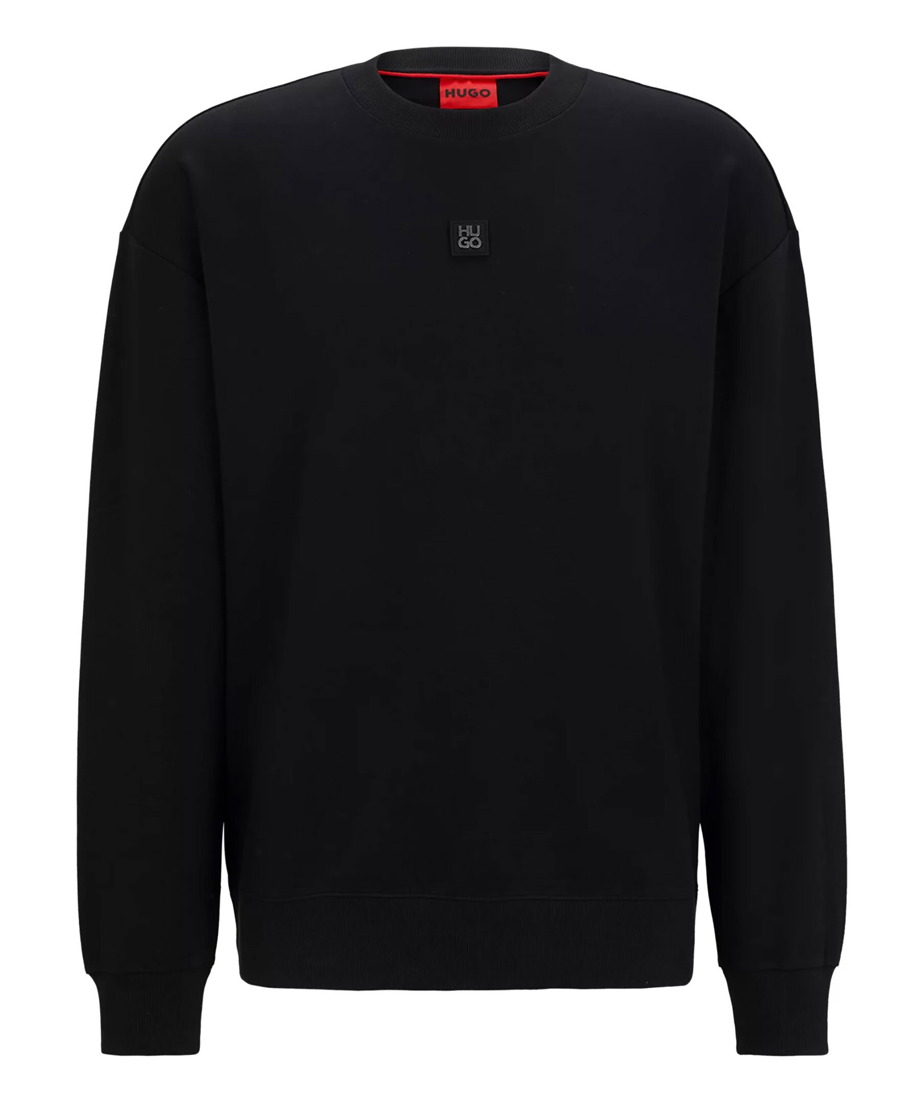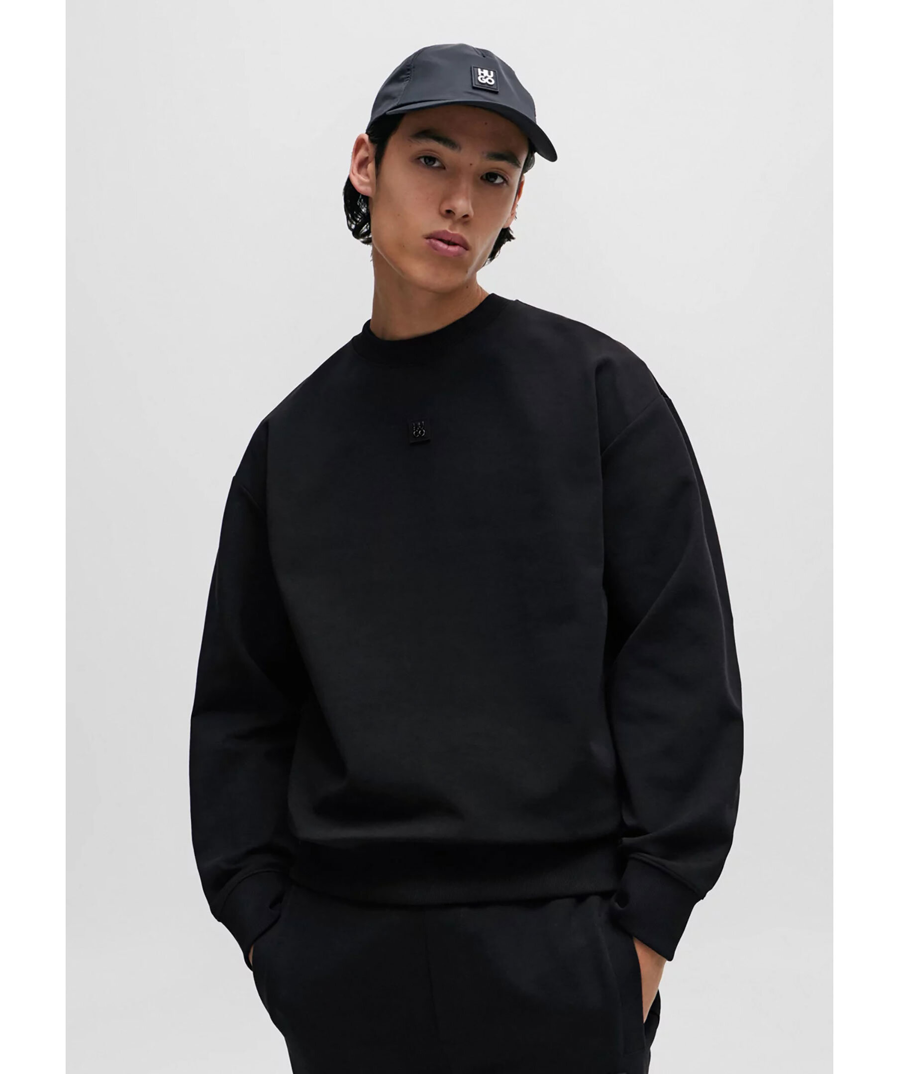Svart sweatshirt från HUGO. Liten metallogotyp på bröstet, rundad hals. Ribbstickad halsringning samt muddar vid ärm- och plaggslut. Tillverkad i en bomullsblandning. Avslappnad passform.