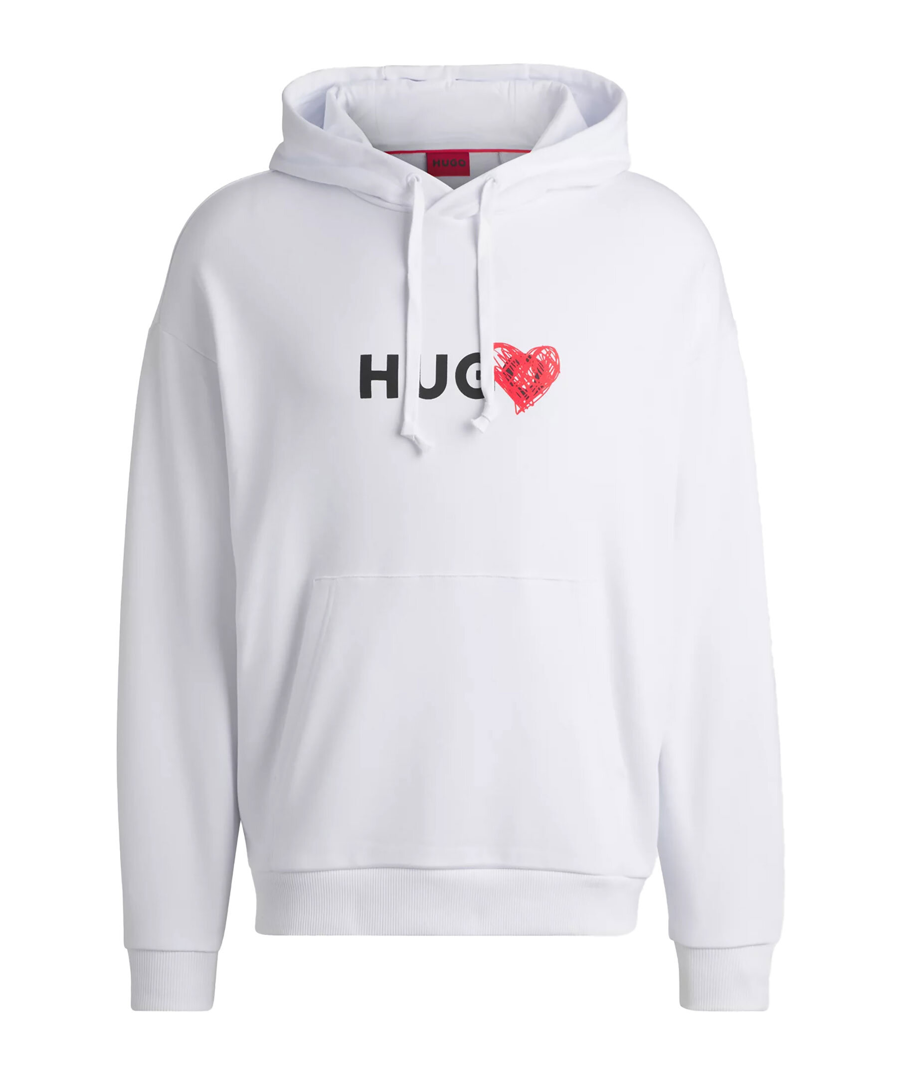 Vit hoodie från HUGO. Tröjan har huva med dragsko, känguruficka på magen samt stort tryck på ryggen av ett hjärta och logotyp samt hjärta på bröstet. Tillverka i bomull.