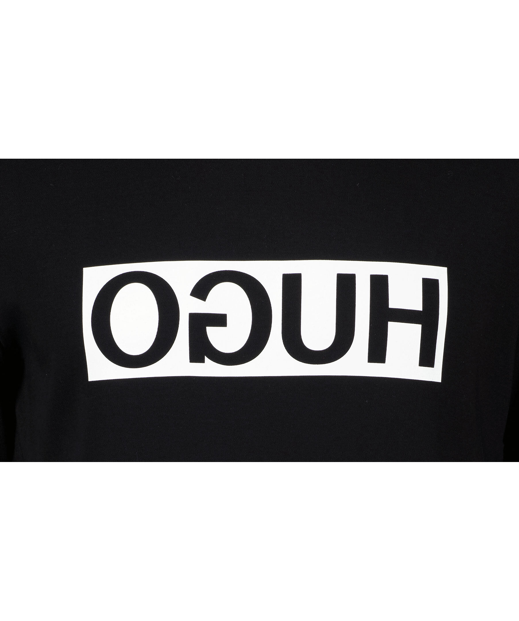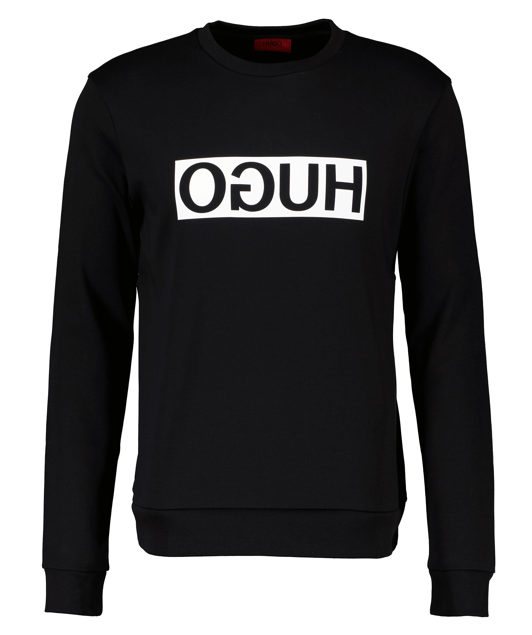 Svart sweatshirt från HUGO. Tryckt logotyp i vitt över bröstet. Ribbstickade muddar vid krage, ärm- och plaggslut. Tillverkade i 100% bomull. Rundad halsringning.