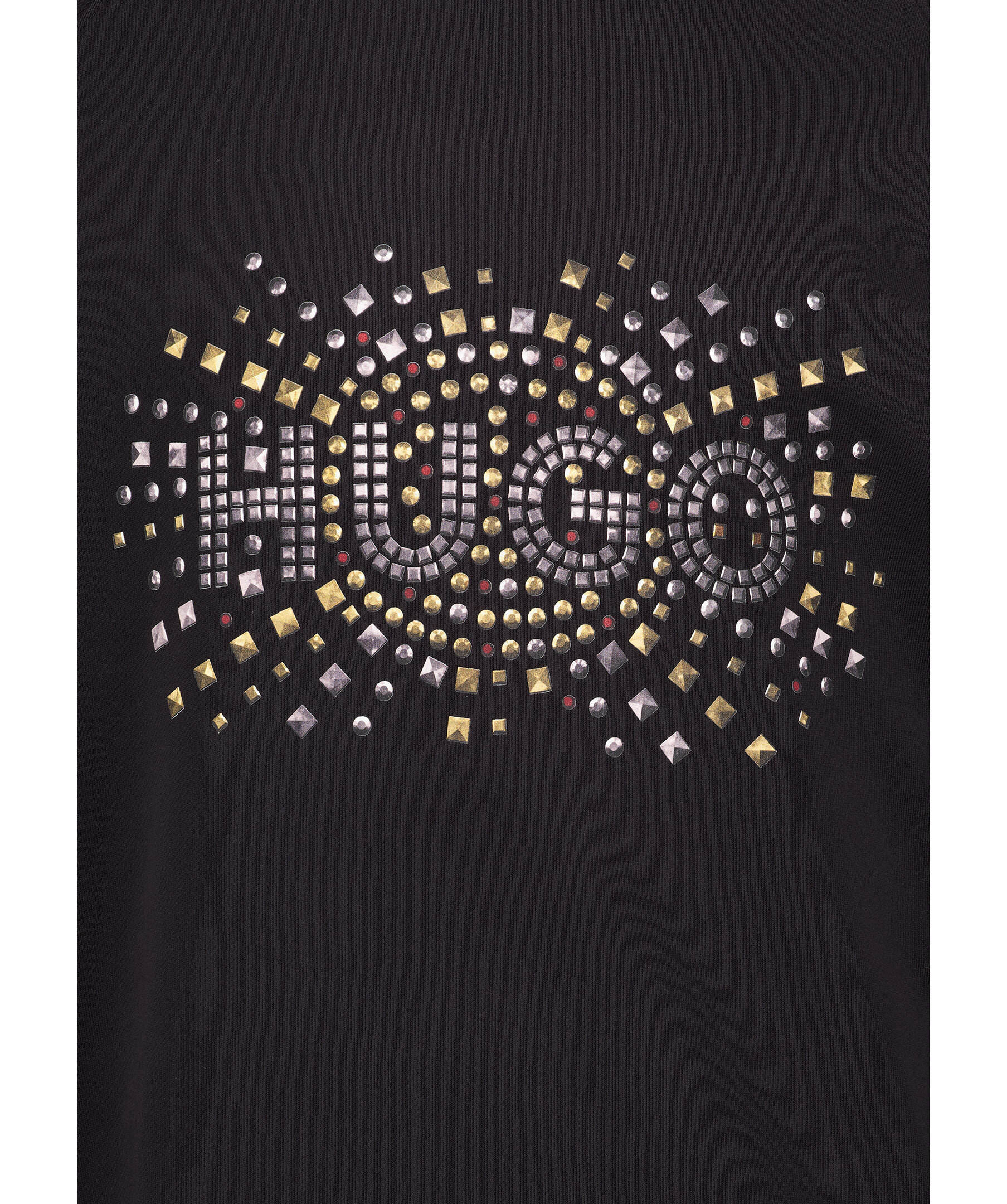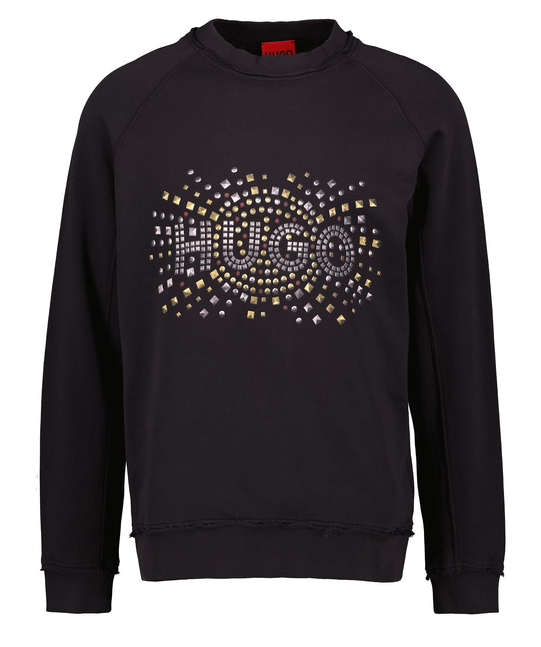 Svart sweatshirt från HUGO. Tryckt logotyp över bröstet med nit-motiv. Ribbstickad mudd vid halsen, ärm- och plaggslut. Rundad halsringning. Tillverkad i 100% Bomull.