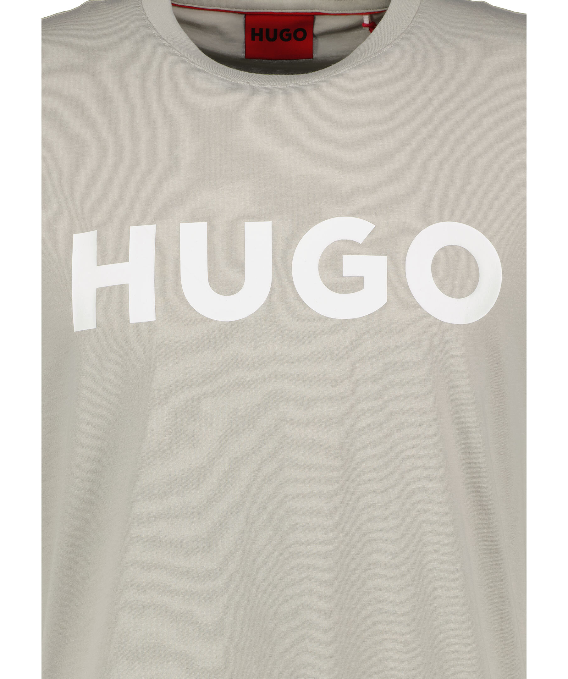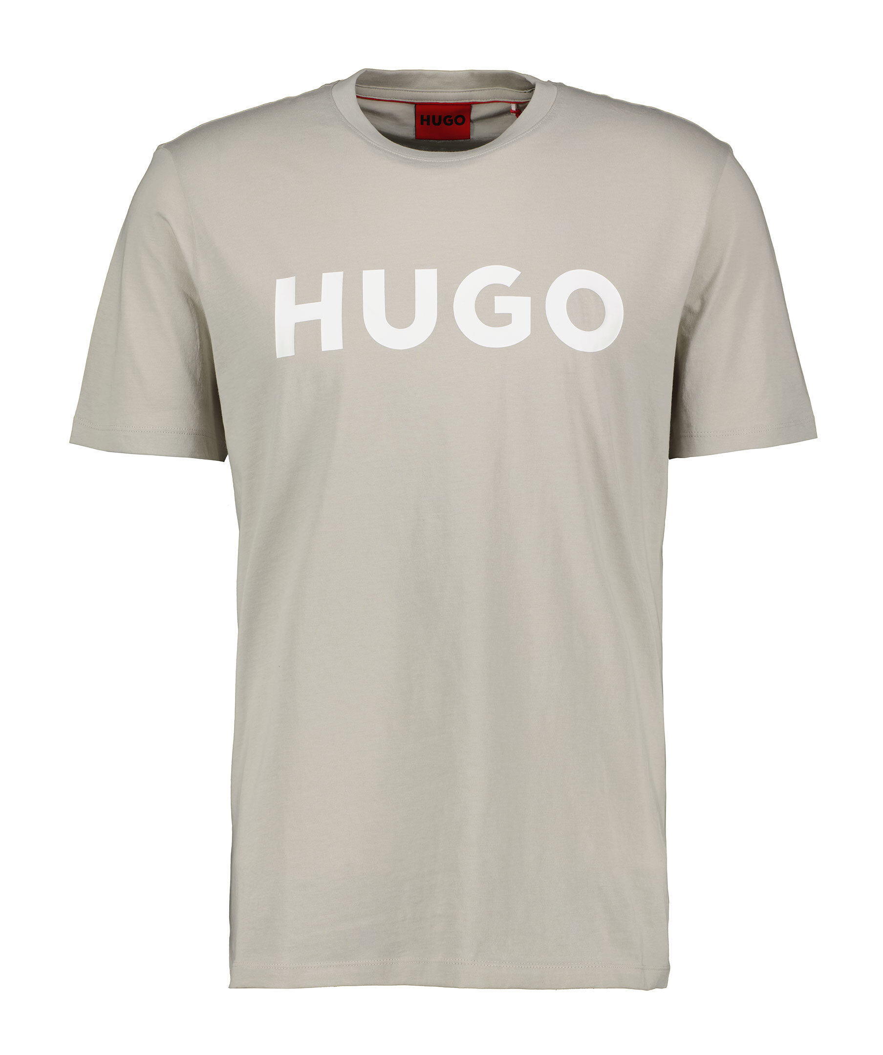 Greige T-shirt från HUGO. Tryckt logotyp i vitt på bröstet. Rundad halsringning med ribbstickad mudd. Tillverkad i 100% bomull.