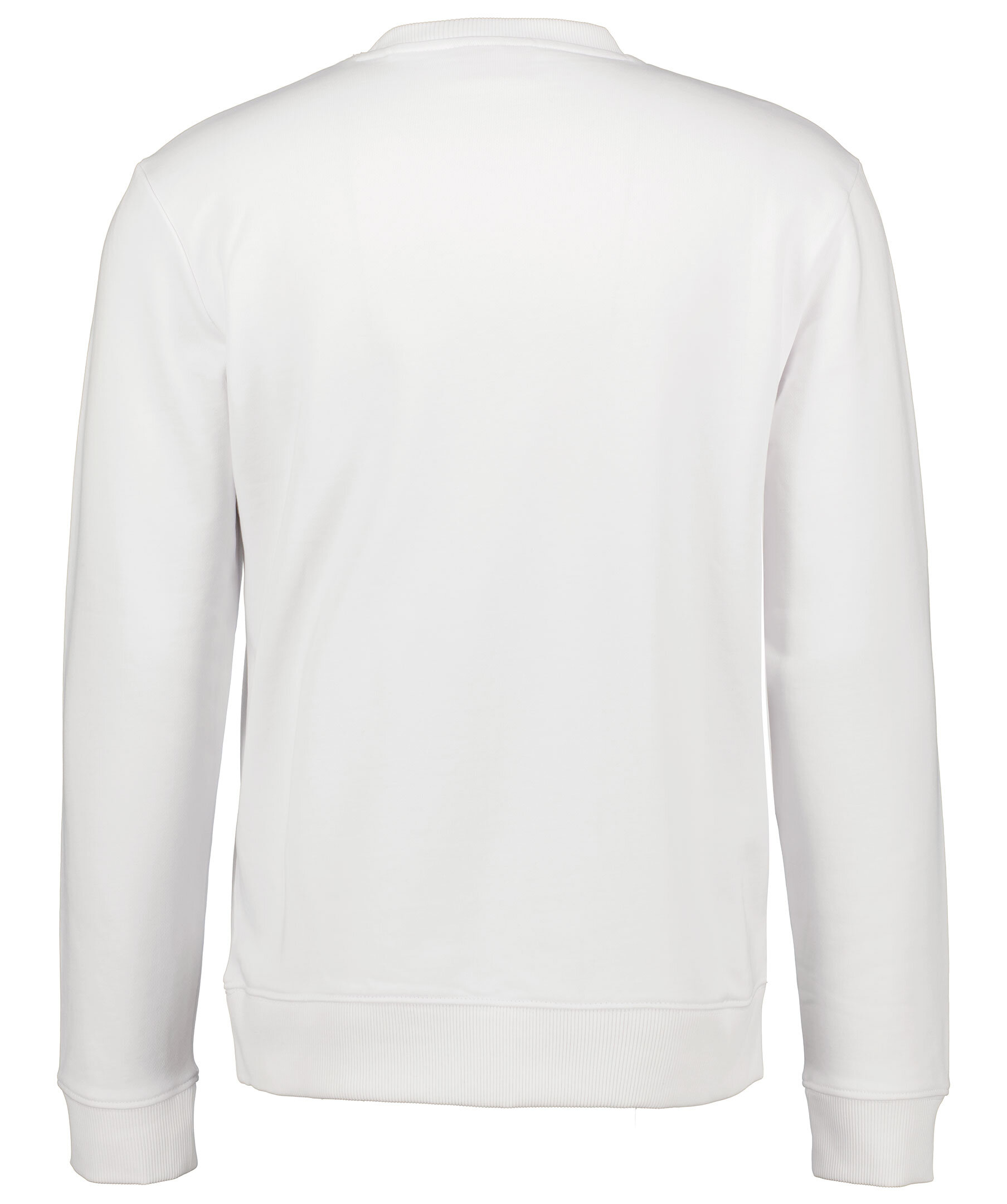 Vit sweatshirt från HUGO. Tillverkad i 100% bomull, har en stor röd ruta med svart logotyp mitt på bröstet. Rundad halsringning, ribbade muddar i ärmslut, i halsringning och i plaggslut.