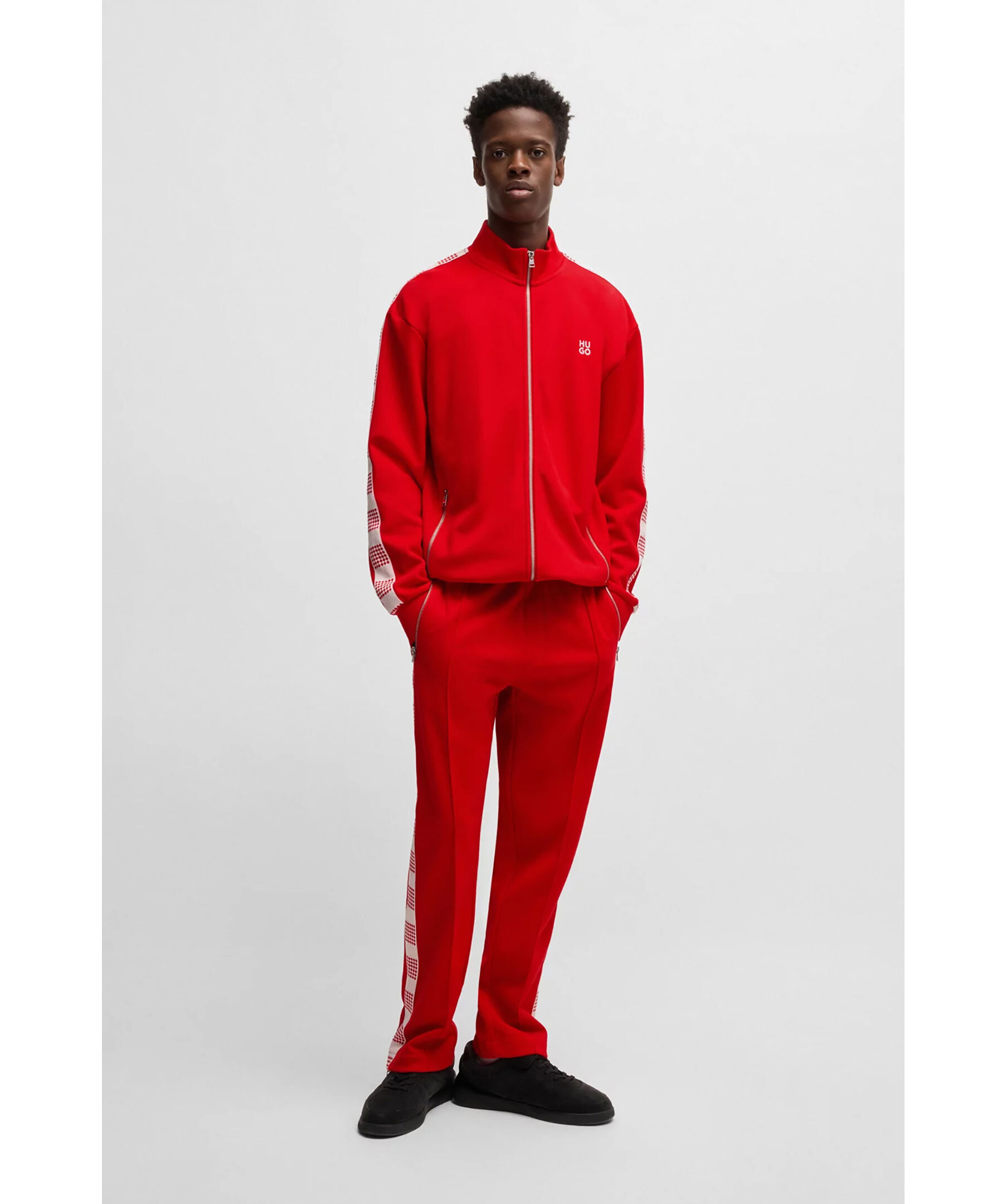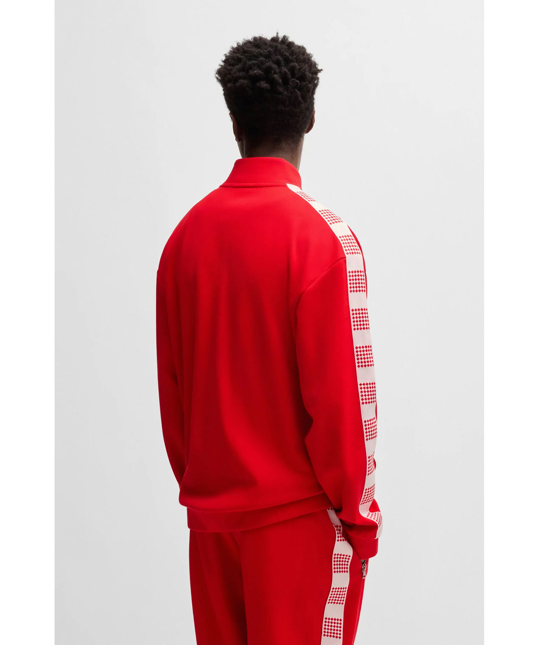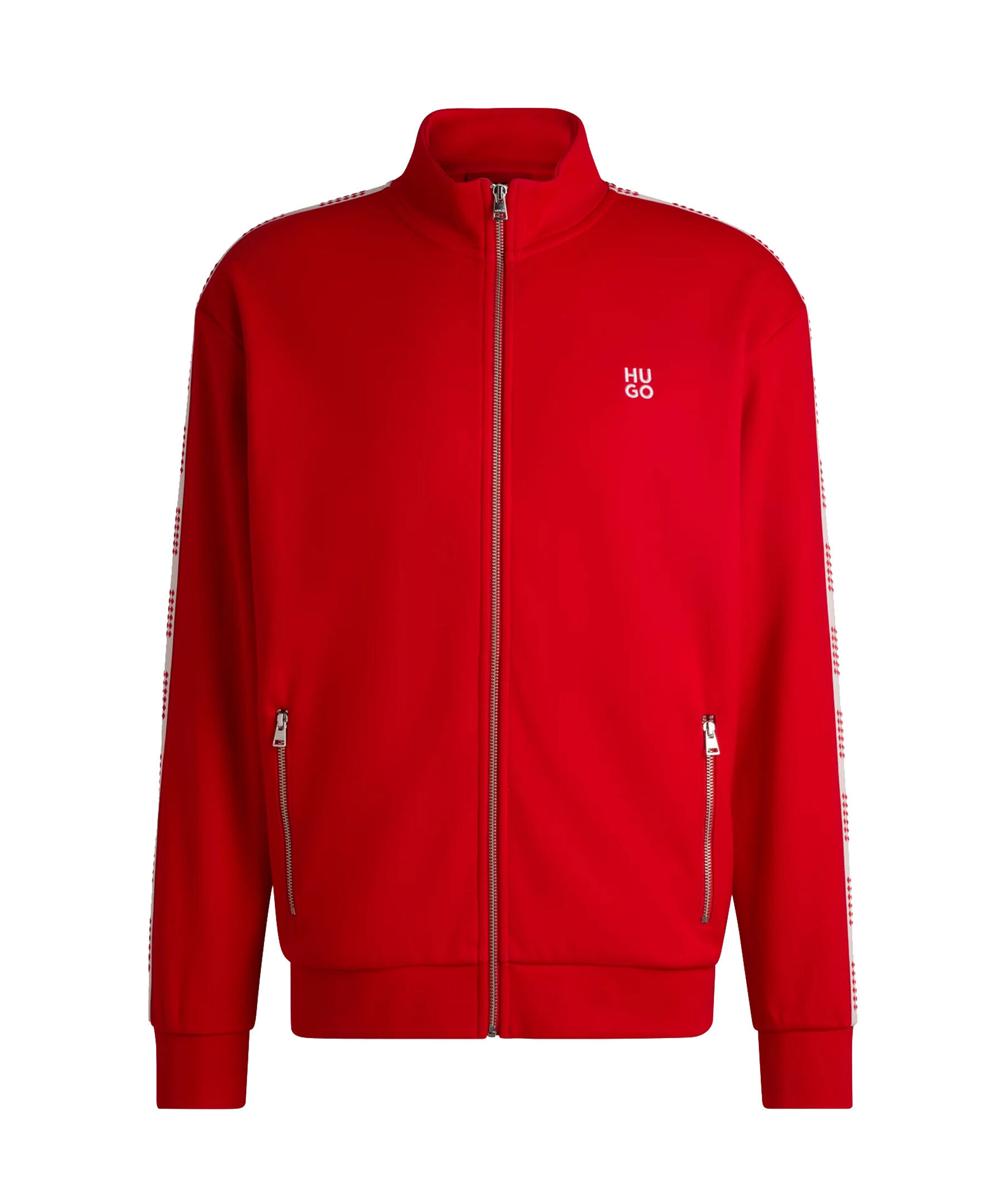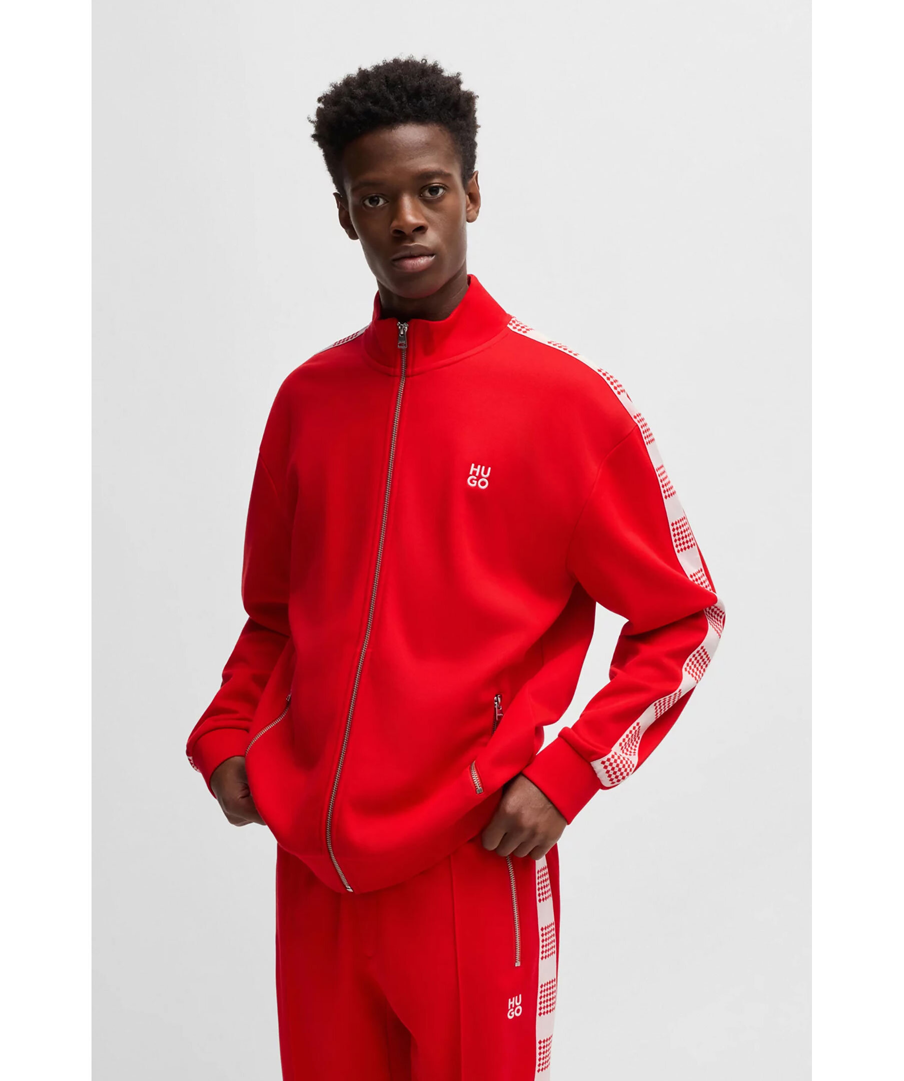 Röd sweatshirt från Hugo. Sweatshirten stängs med blixtlås och har en avslappnad passform med stående krage. Vintage inspirerad med rutiga detaljen längst ärmarna samt sidofickor med blixtlås och en broderad Hugo logotyp på bröstet. Tillverkad av en bomullsblandning.