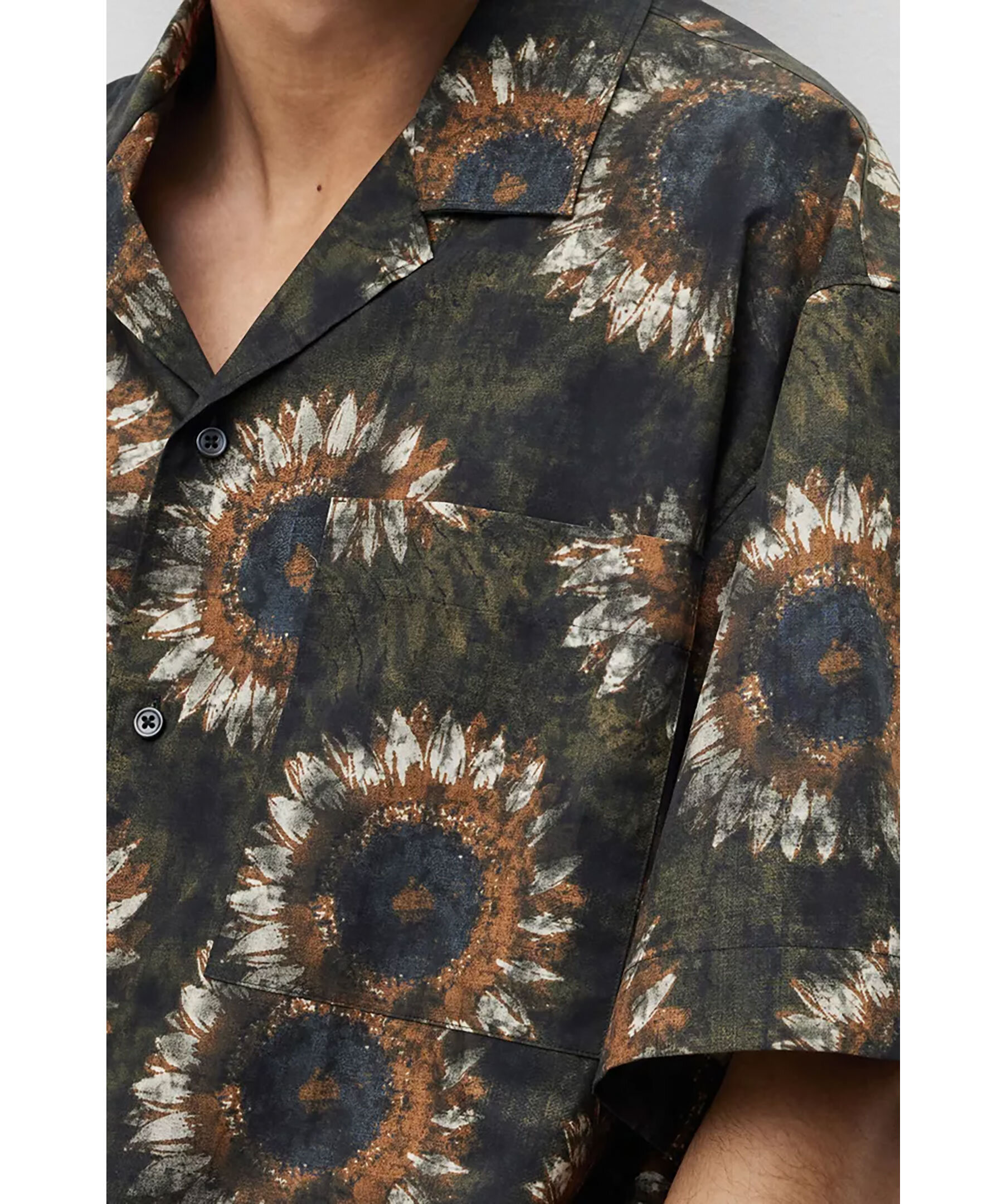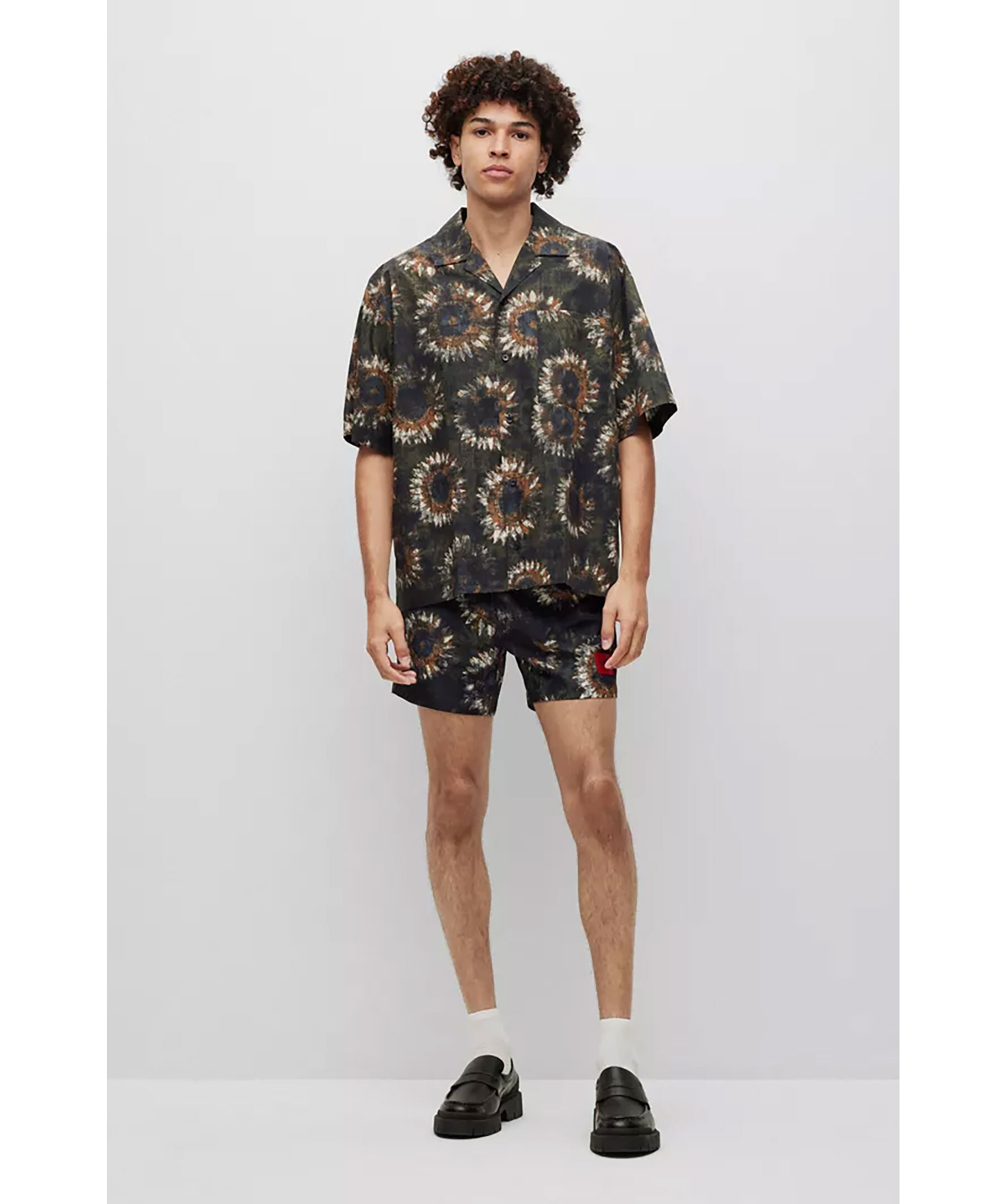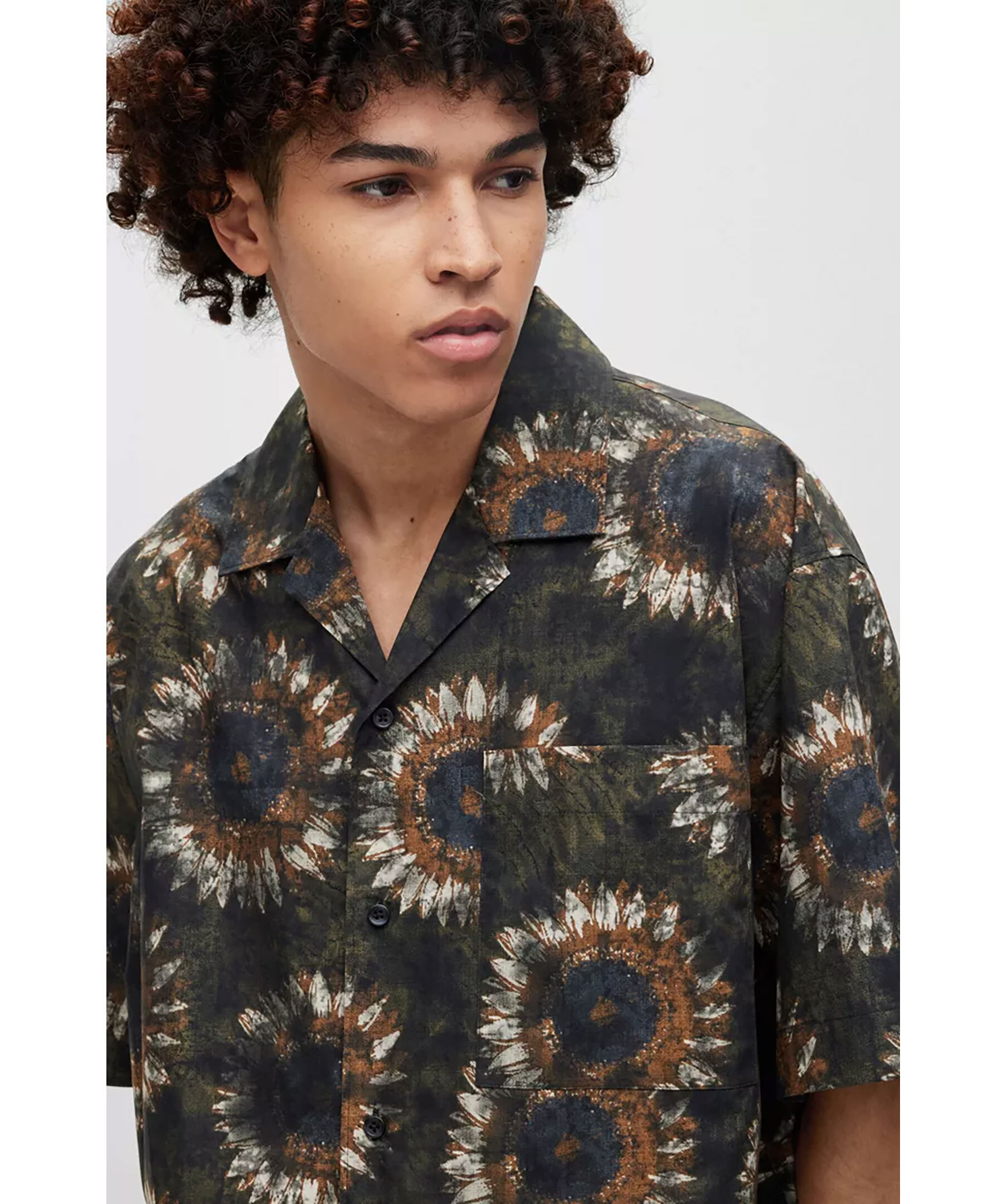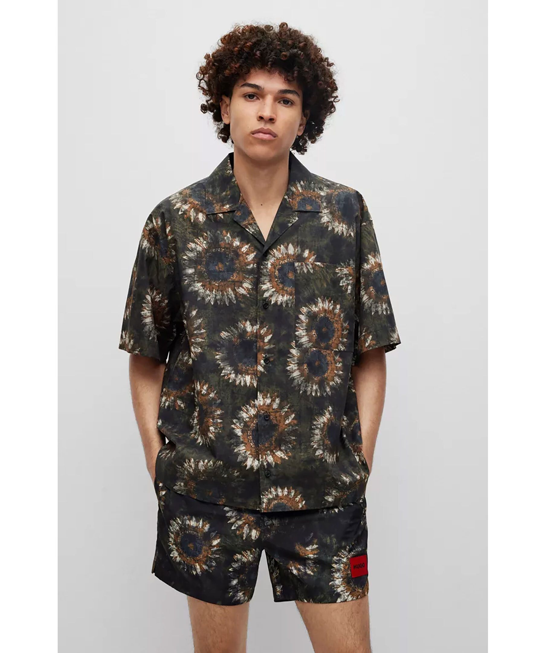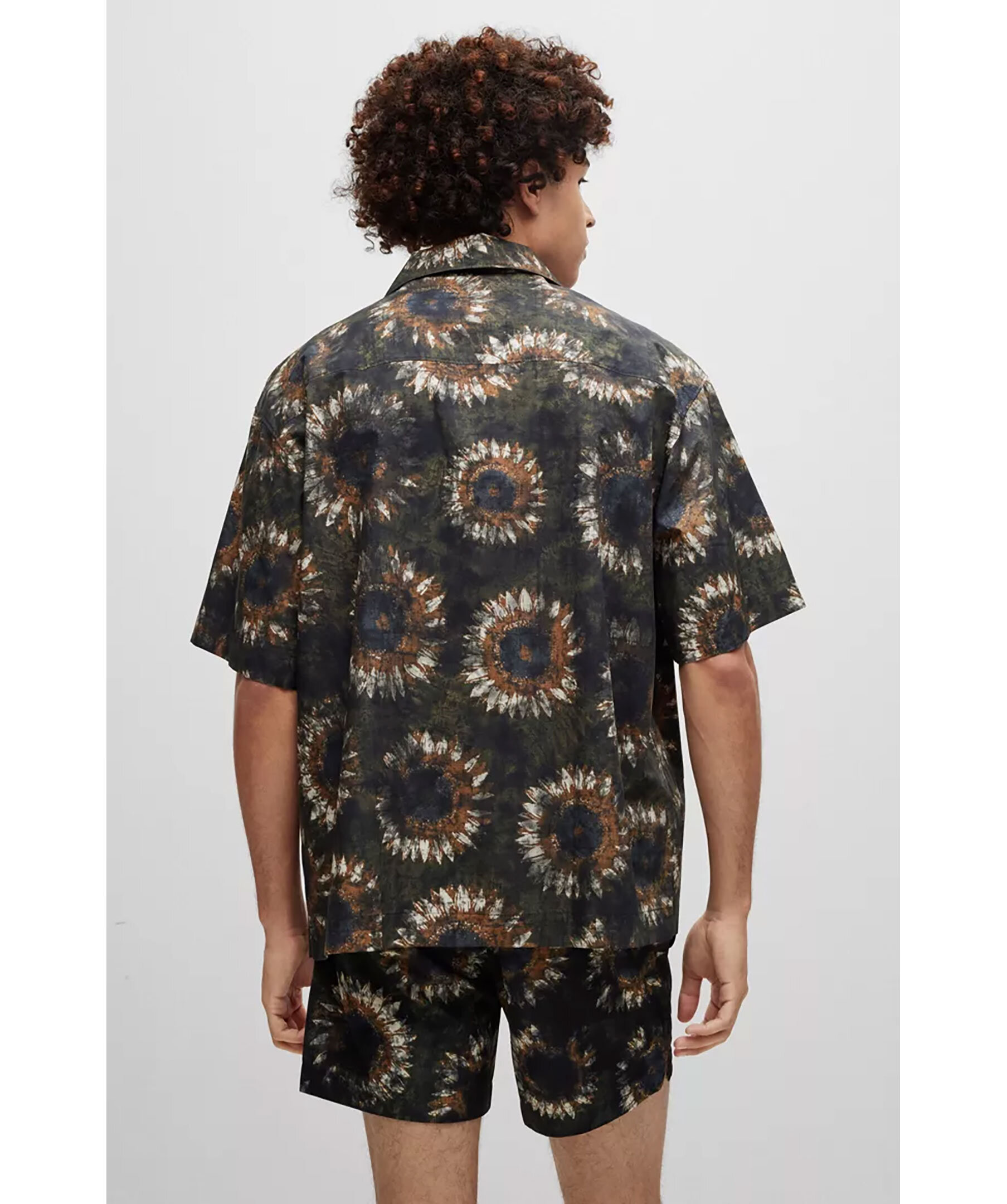 Mörkgrön kortärmad skjorta från HUGO. Skjortan har en överdimensionerad passform och ett abstrakt blommönster. Bröstficka.