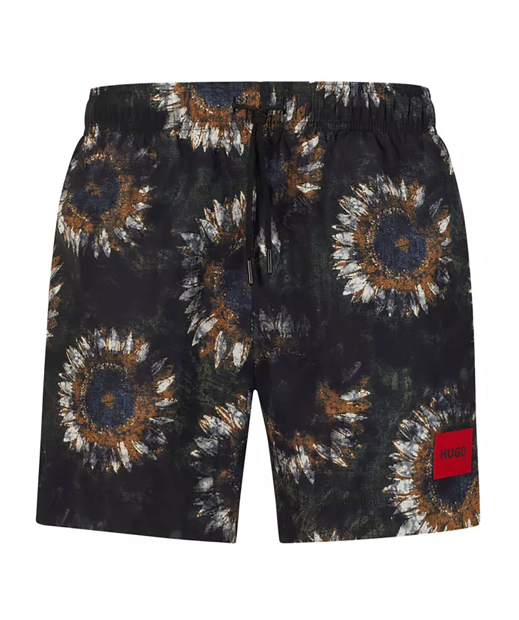 Mönstrade badshorts i kort längd från HUGO. Helfodrade och tillverkade i snabbtorkande tyg med tryckt mönster och röd logotypetikett på ena benet. Elastiskt midjeband, sidofickor och mudd med snörning i midjan.