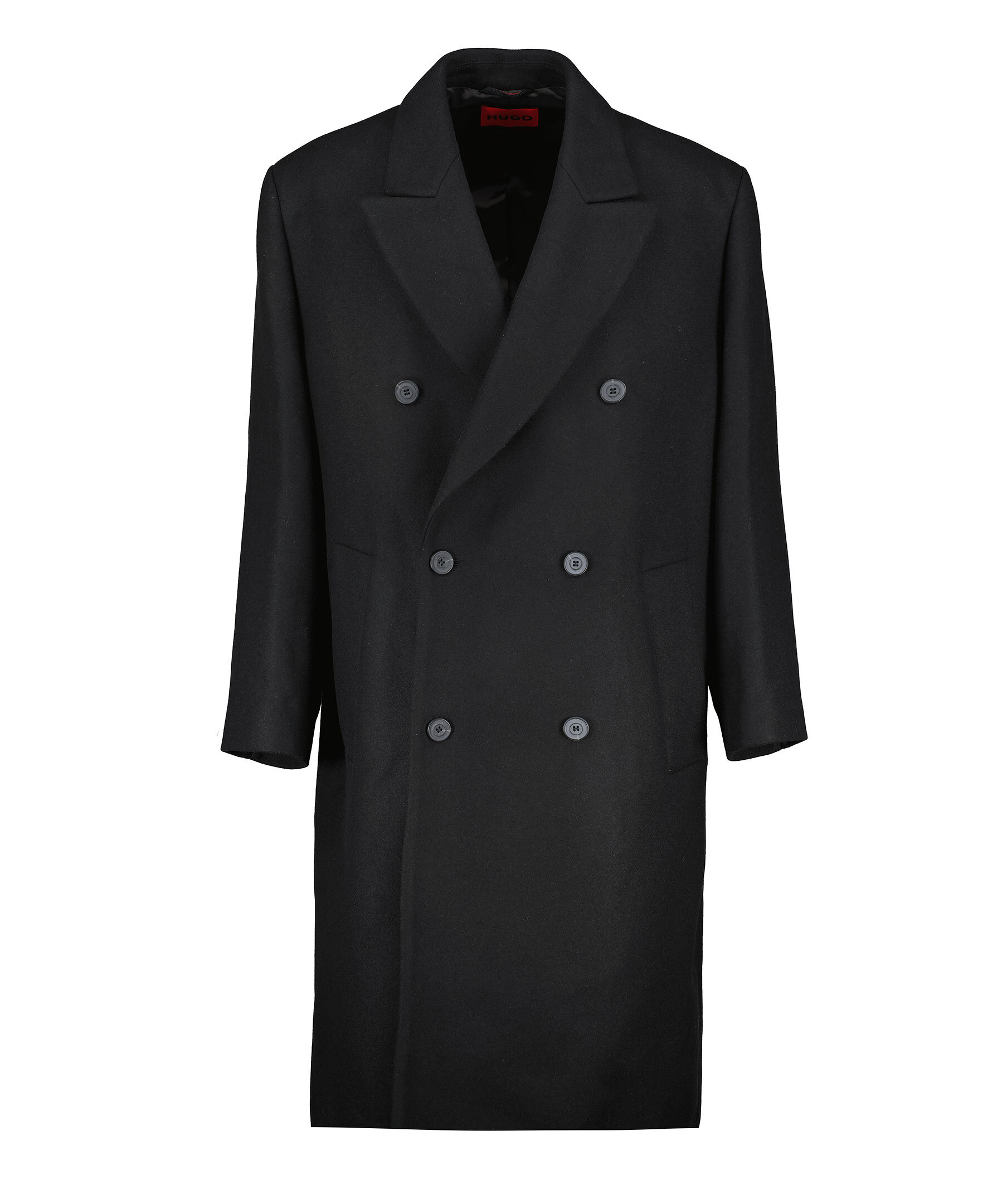 Svart rock från HUGO. Rocken stängs med knappar framtill och har enkelt sprund baktill, två sidfickor samt en bröstficka på insidan. Tillverkad i en ullblandning.
