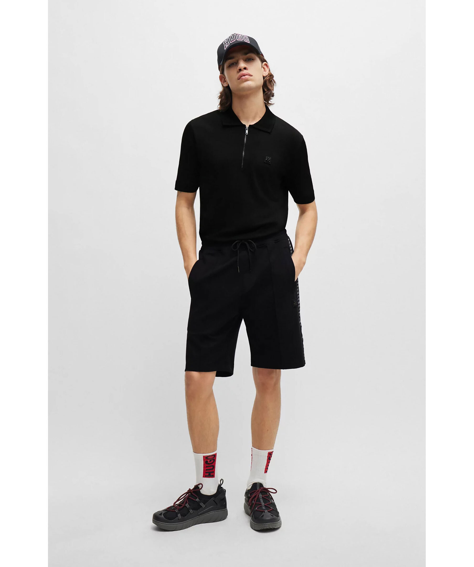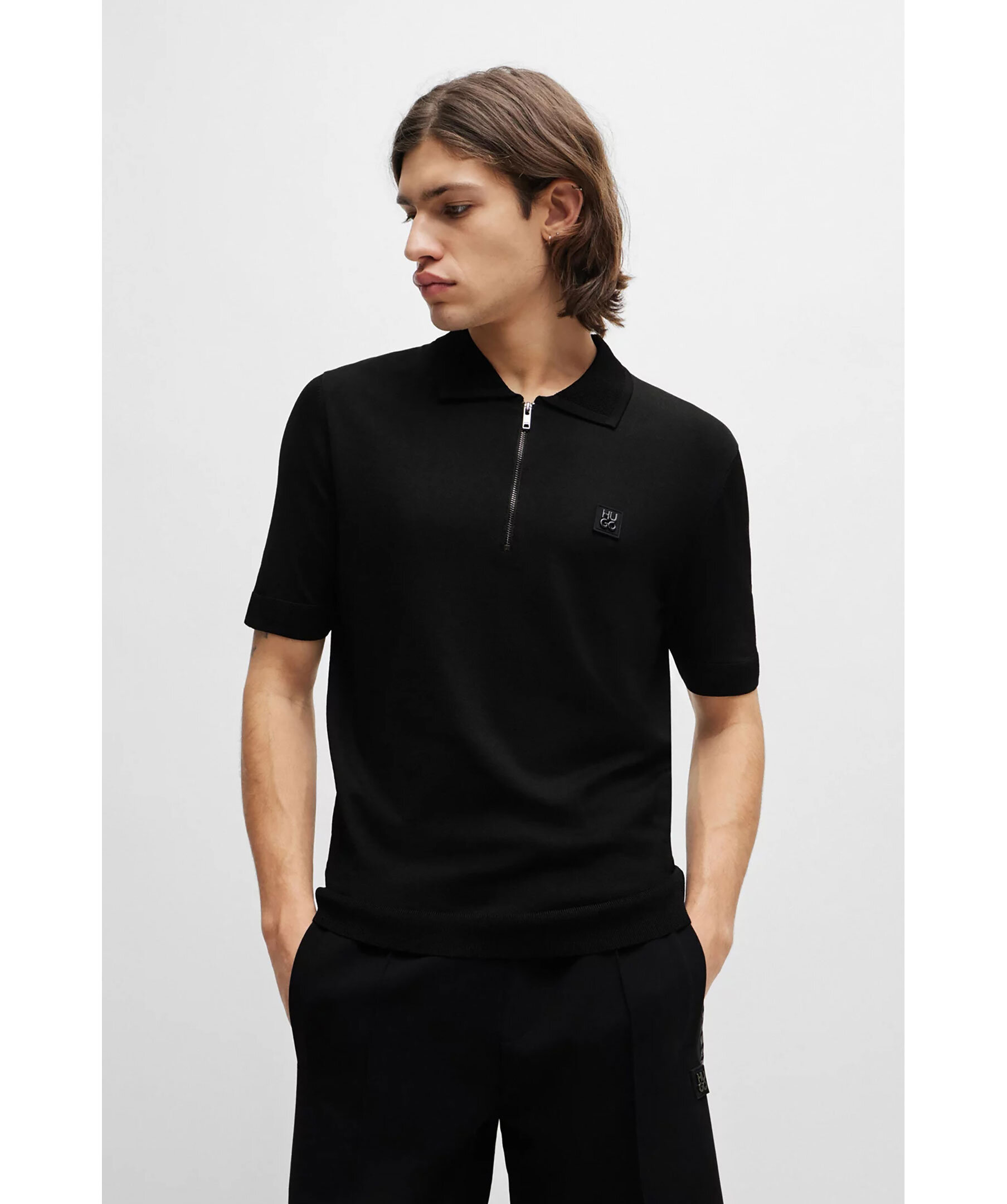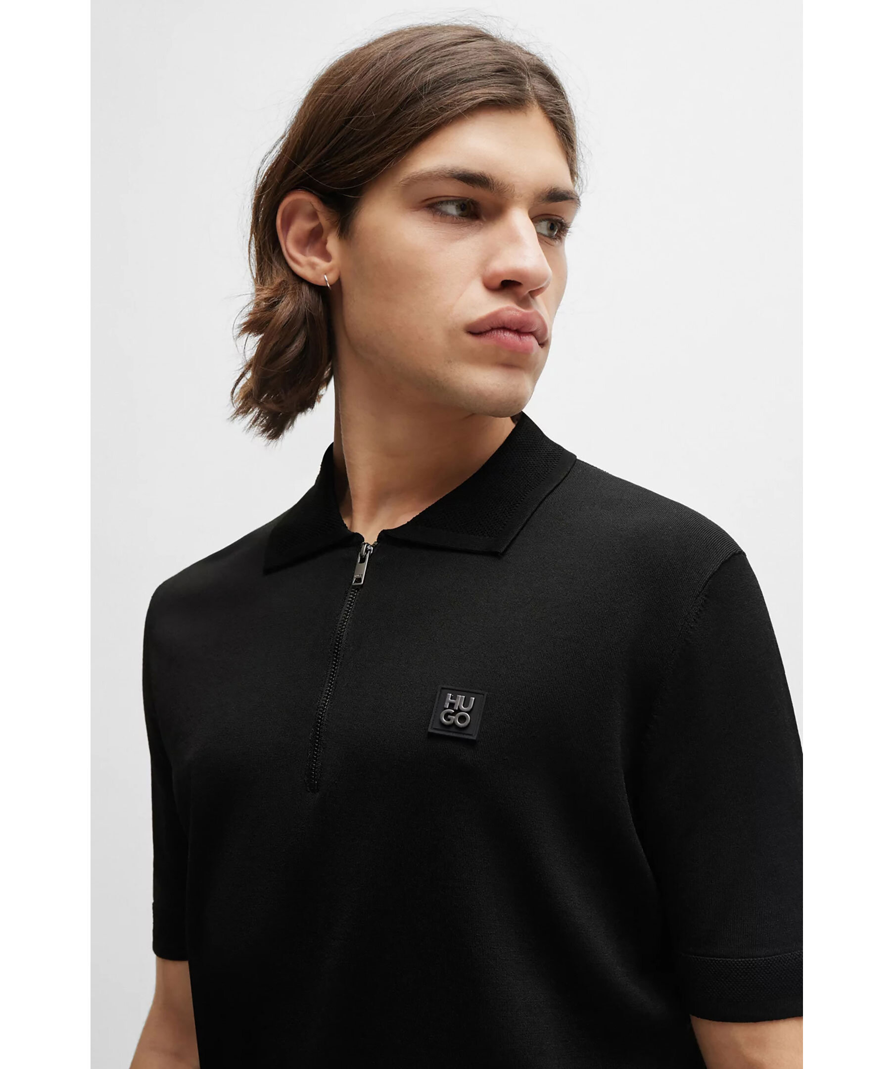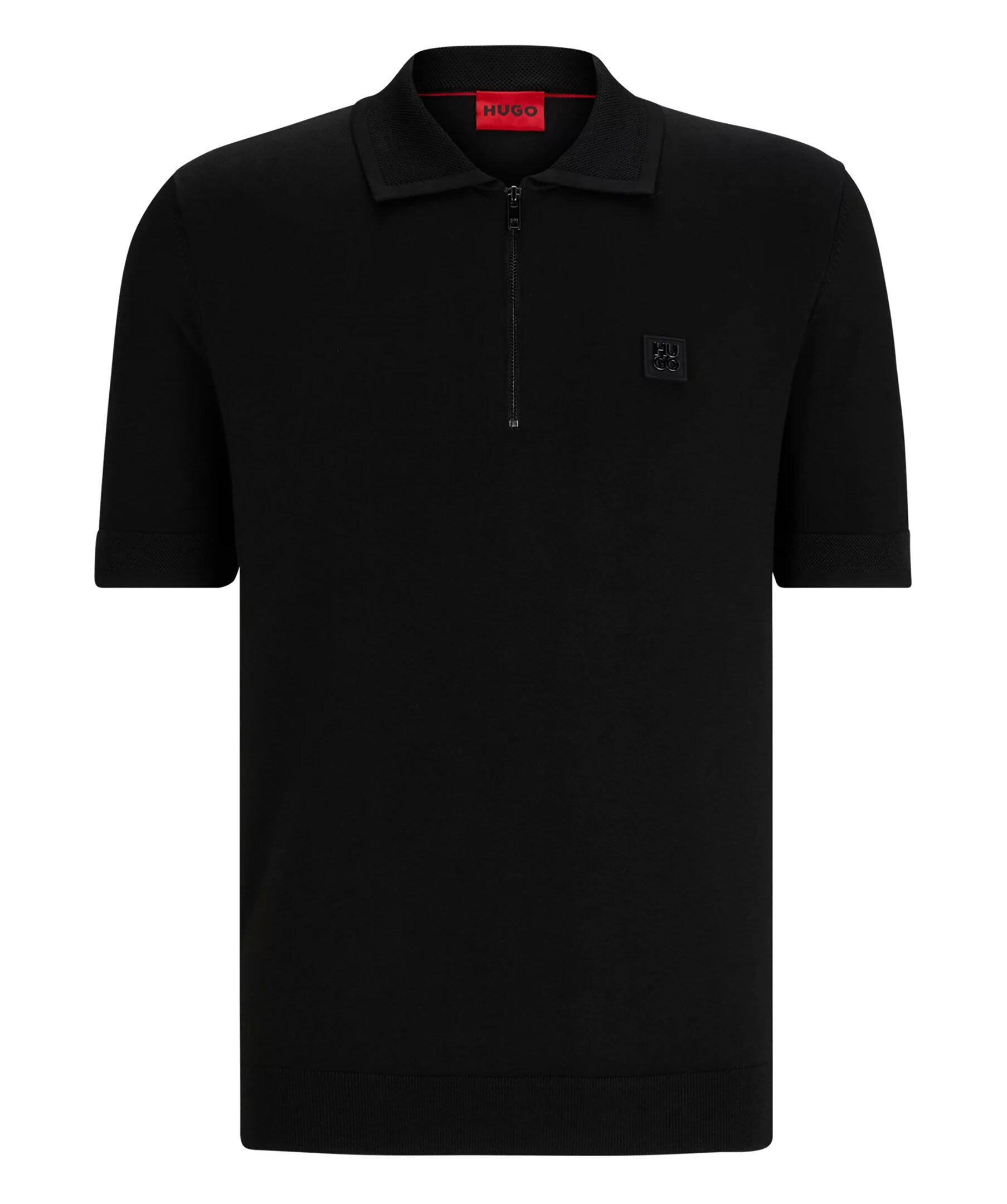 Svart, kortärmad pikétröja från HUGO. Halv dragkedja framtill samt logotyp på bröstet. Tillverkad i viskos. Normal passform.