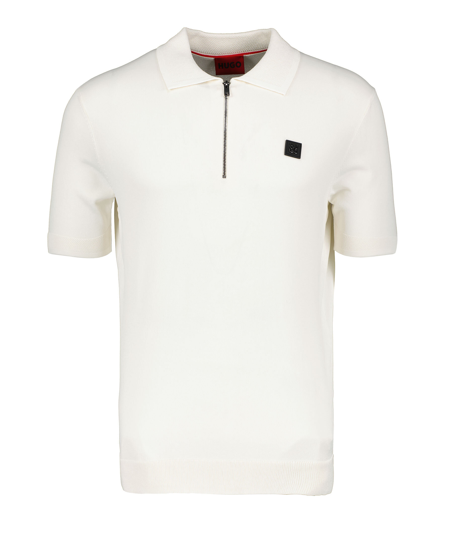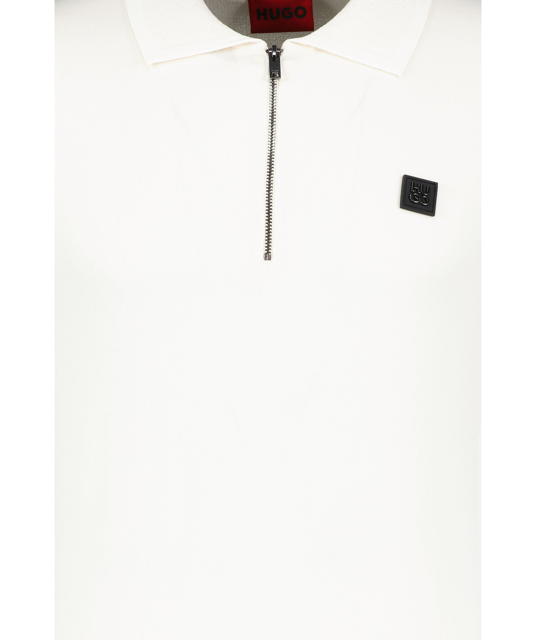 Benvit, kortärmad pikétröja från HUGO. Halv dragkedja framtill samt logotyp på bröstet. Tillverkad i viskos. Normal passform.