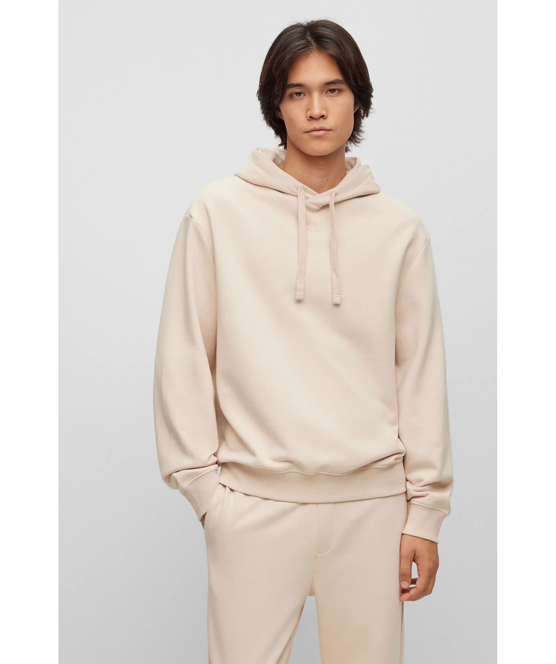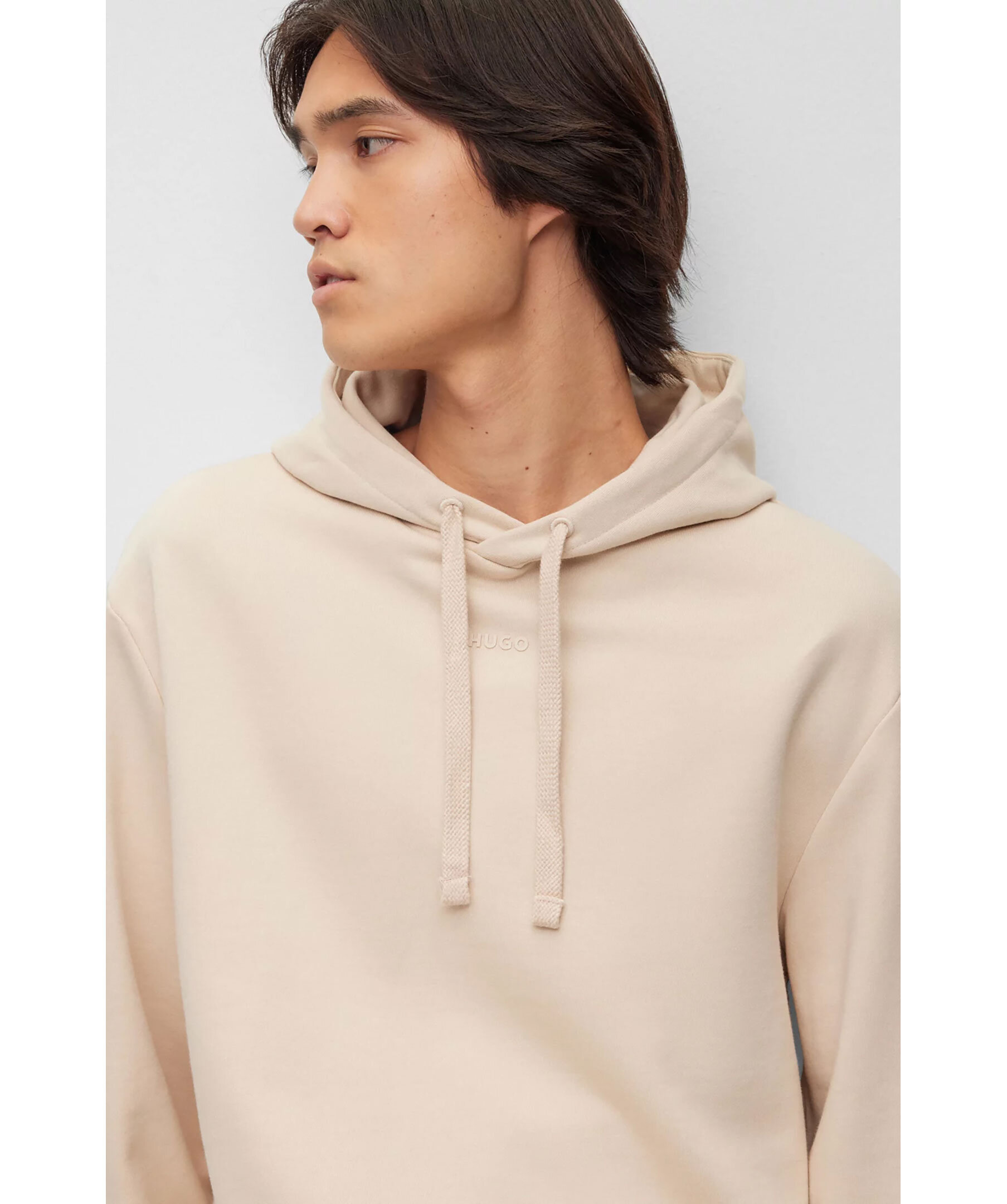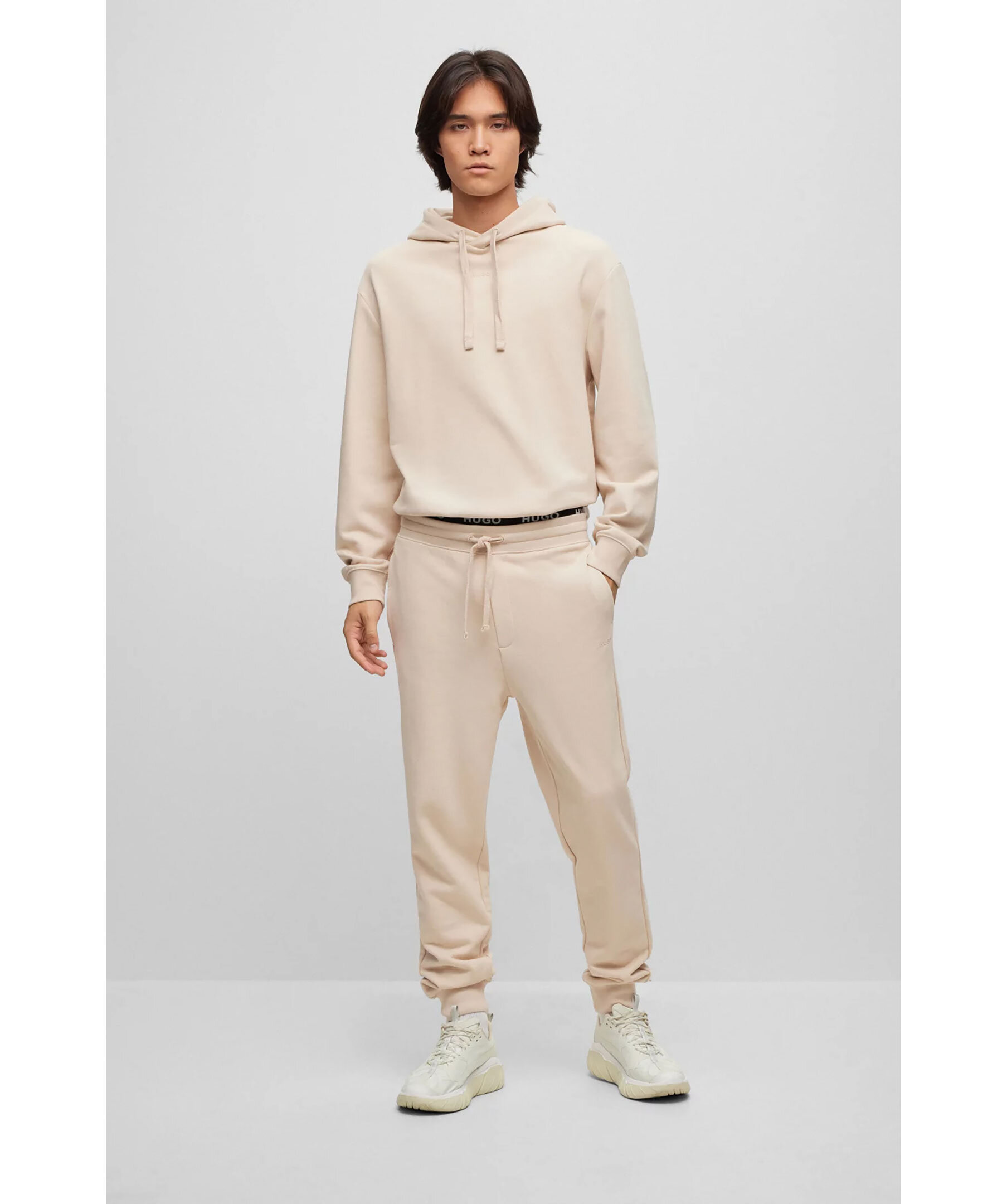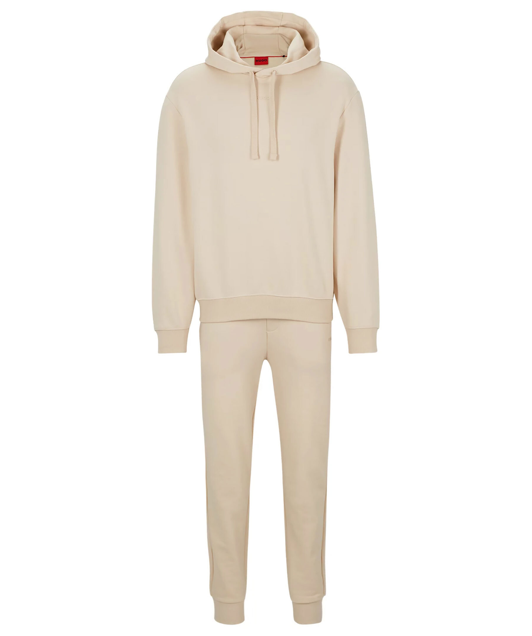 Beige tracksuit set i relaxed-fit från HUGO. Tillverkad av mjuk terry-bomull och med loggor i ton-i-ton. Tröjan har huva med snörning och extra långa ärmar samt ribbstickade muddar vid ärm och plaggslut. Byxorna har resår i midjan med snörning samt ribbstickad benslut och två sidfickor.