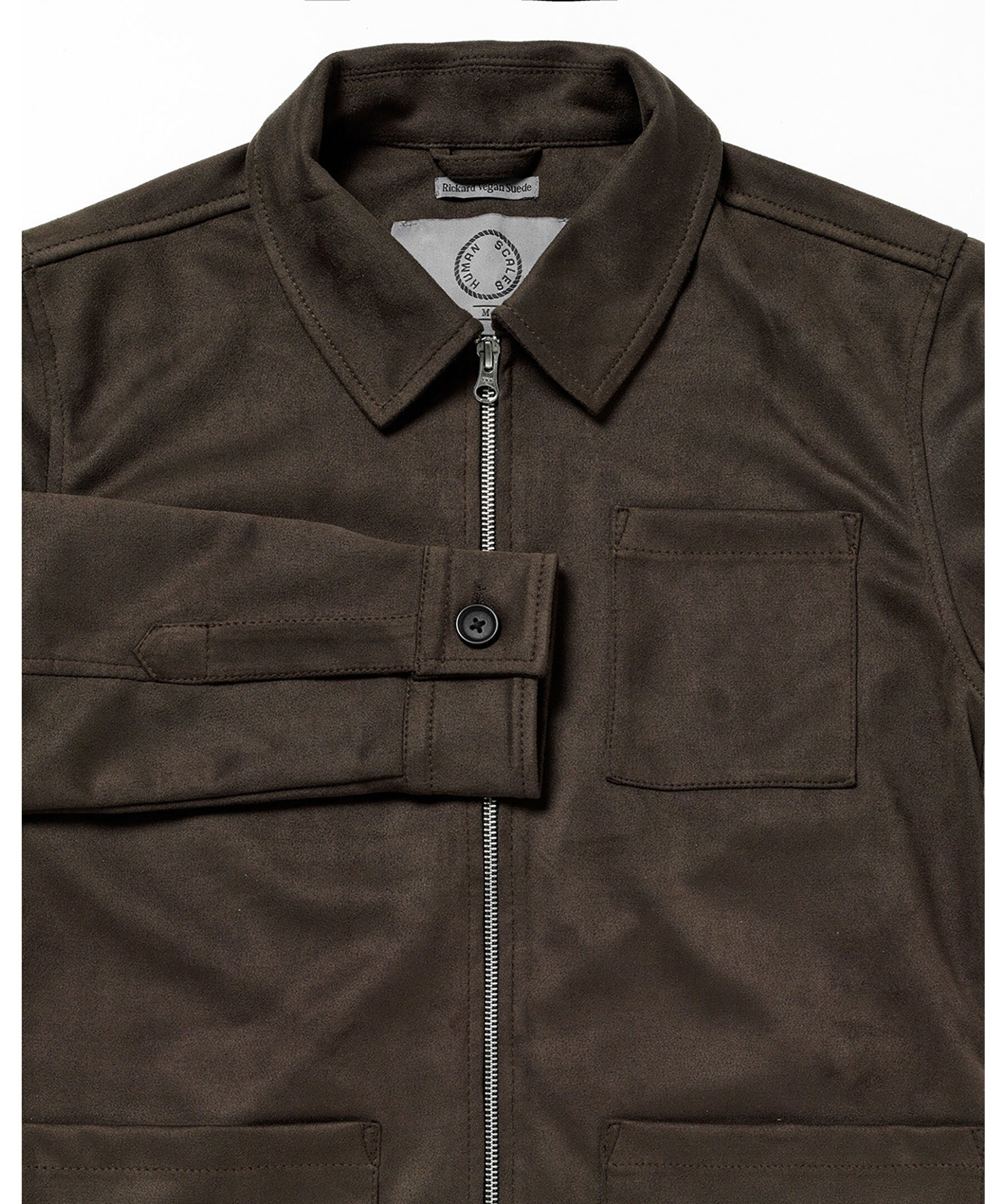 Vegansk mockajacka från Human Scales. Jackan har en klassisk passform med en stilren design och en diskret bröstficka. Jackan är ofodrad och med öppna sidofickor — perfekt för lager‑på‑lager och för övergångsperioder. Tillverkad i lätt, mjukt och hållbart veganskt mockamaterial.