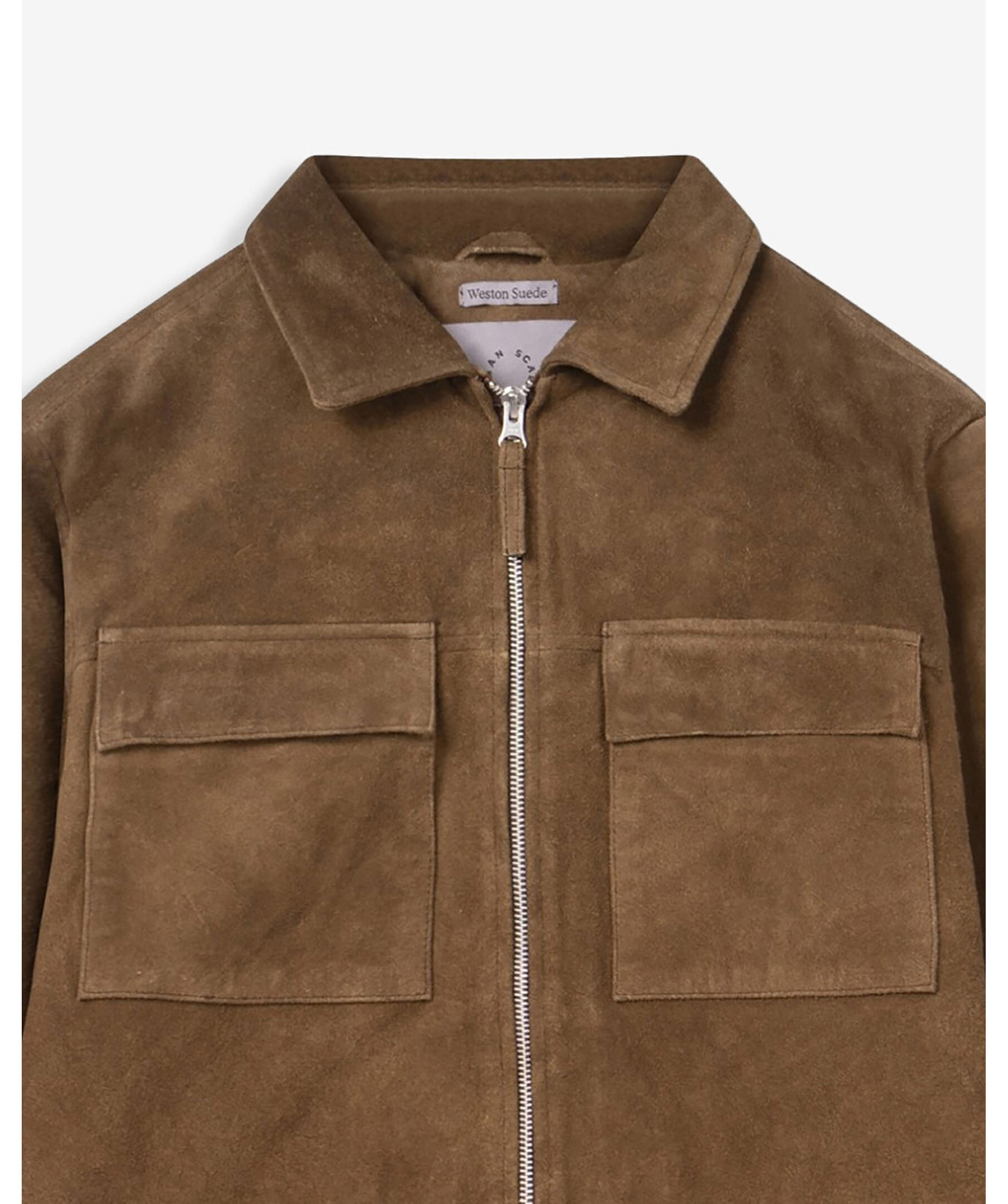 Mockajacka från Human Scales. Jackan är tillverkad i kraftig kalv‑mocka med en rejäl, vikt känsla – perfekt för höstbruk. Två stora bröstfickor med lock, innerfickor och tvåvägsdragkedja för flexibilitet i användning. Jackan är helfodrad i satin och cut i en rak passform som lämnar utrymme för lager under.