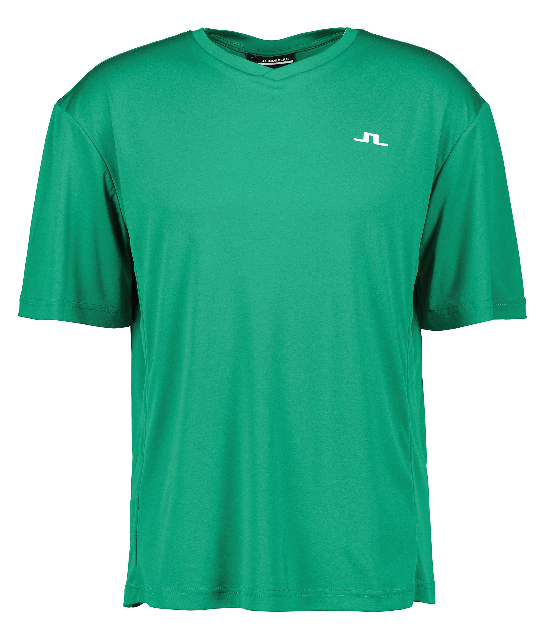 Grön tränings t-shirt från J.Lindeberg. Gjord i ett luftigt polyester material. V-ringad hals, stor sydd logotyp på baksidan och fuktavisande samt snabbtorkande egenskaper. OEKO-TEX®-certifierat tyg.