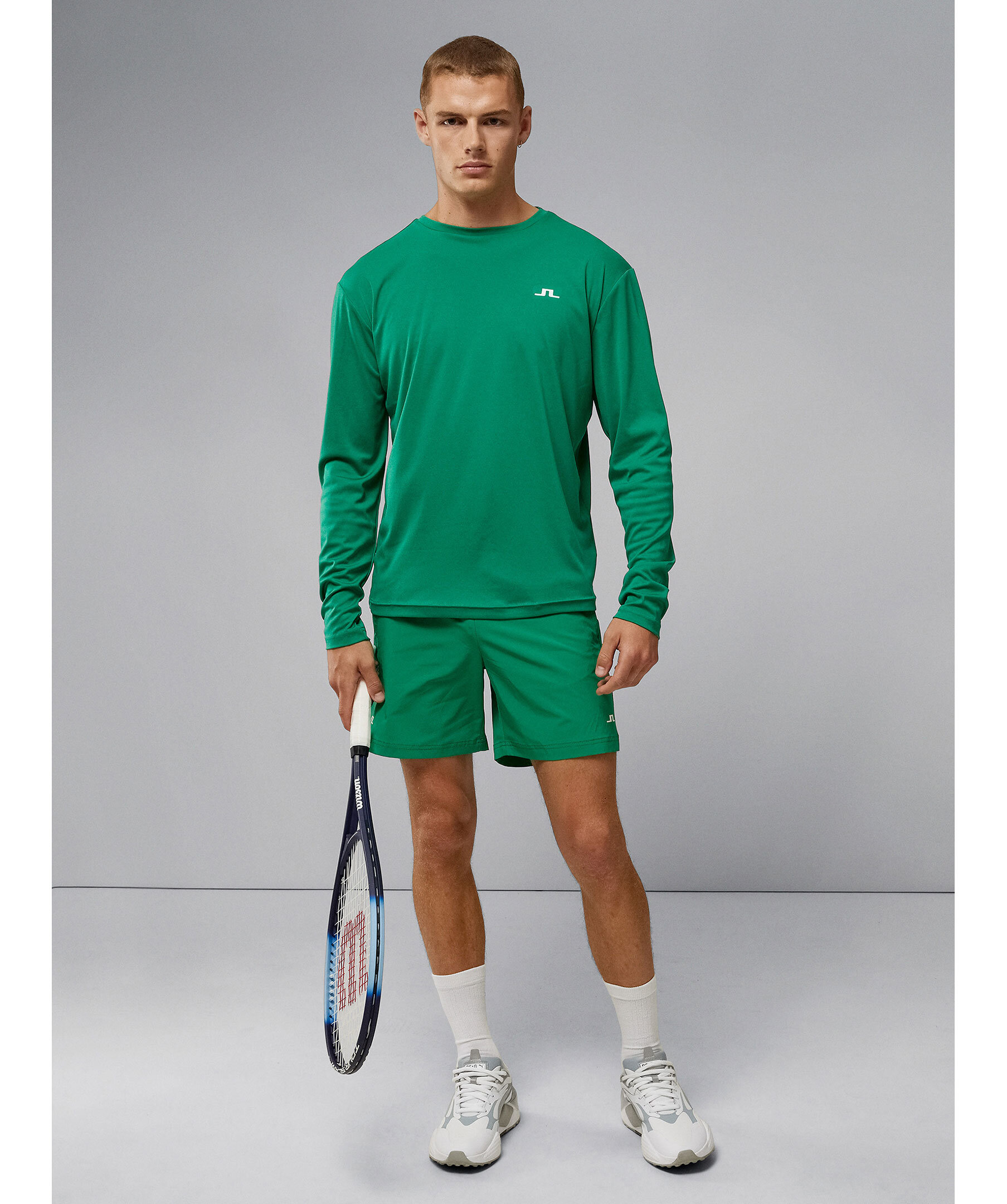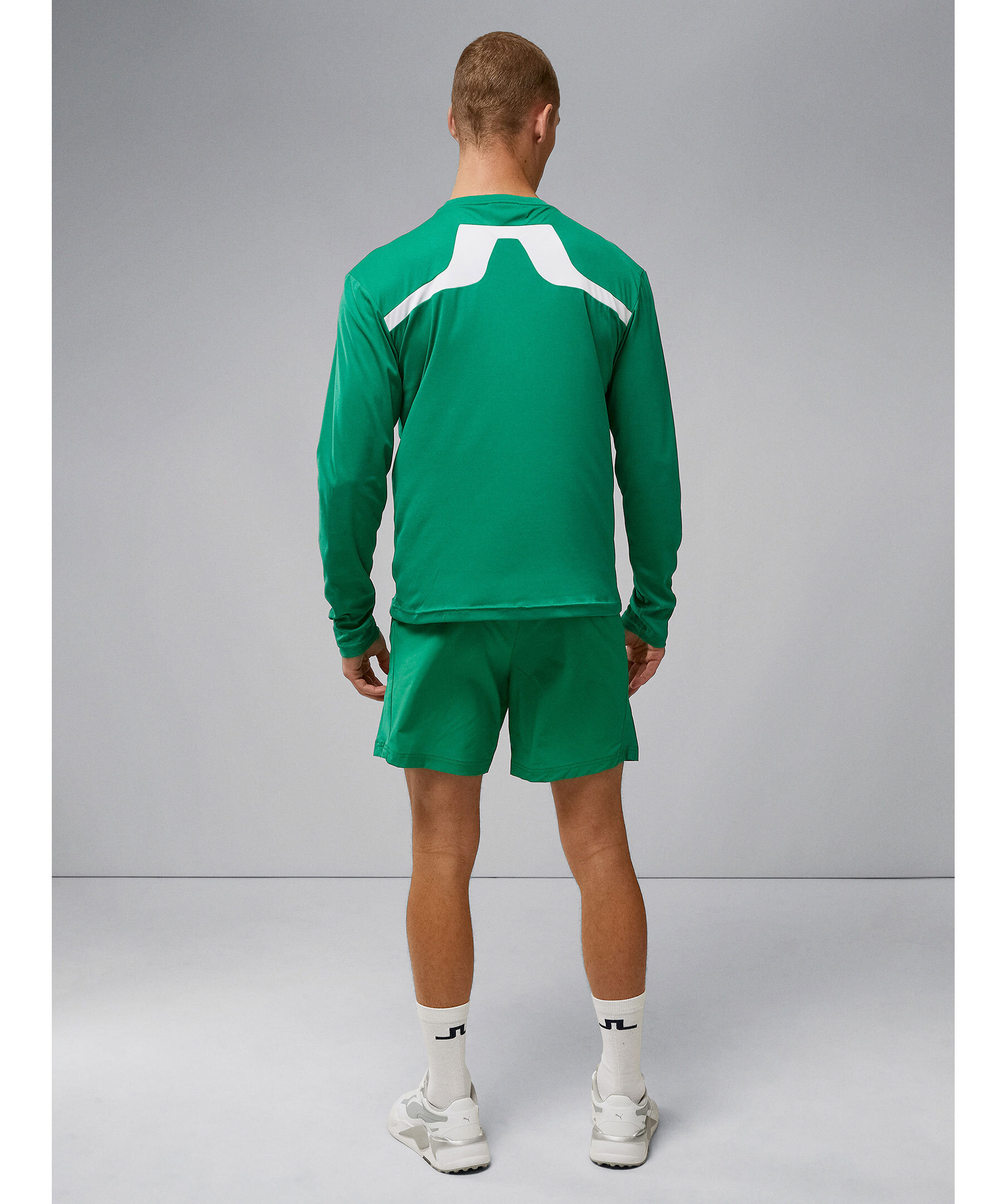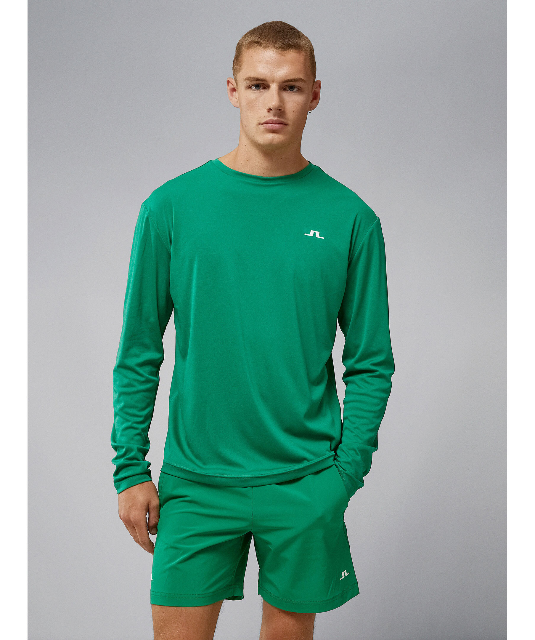 Grön, långärmad t-shirt som är tillverkad av Featherwight Jersey från J.Lindeberg. Ett väldigt lätt material som är den ultimata sportöverdelen. Den har en rundad halsringning, en stor, sydd logotyp på den övre delen av baksidan och tryckt logotyp på bröstet. Fukttransporterande och snabbtorkande egenskaper, så att du kan fortsätta att se ut och känna dig så bra som möjligt under hela ditt träningspass.