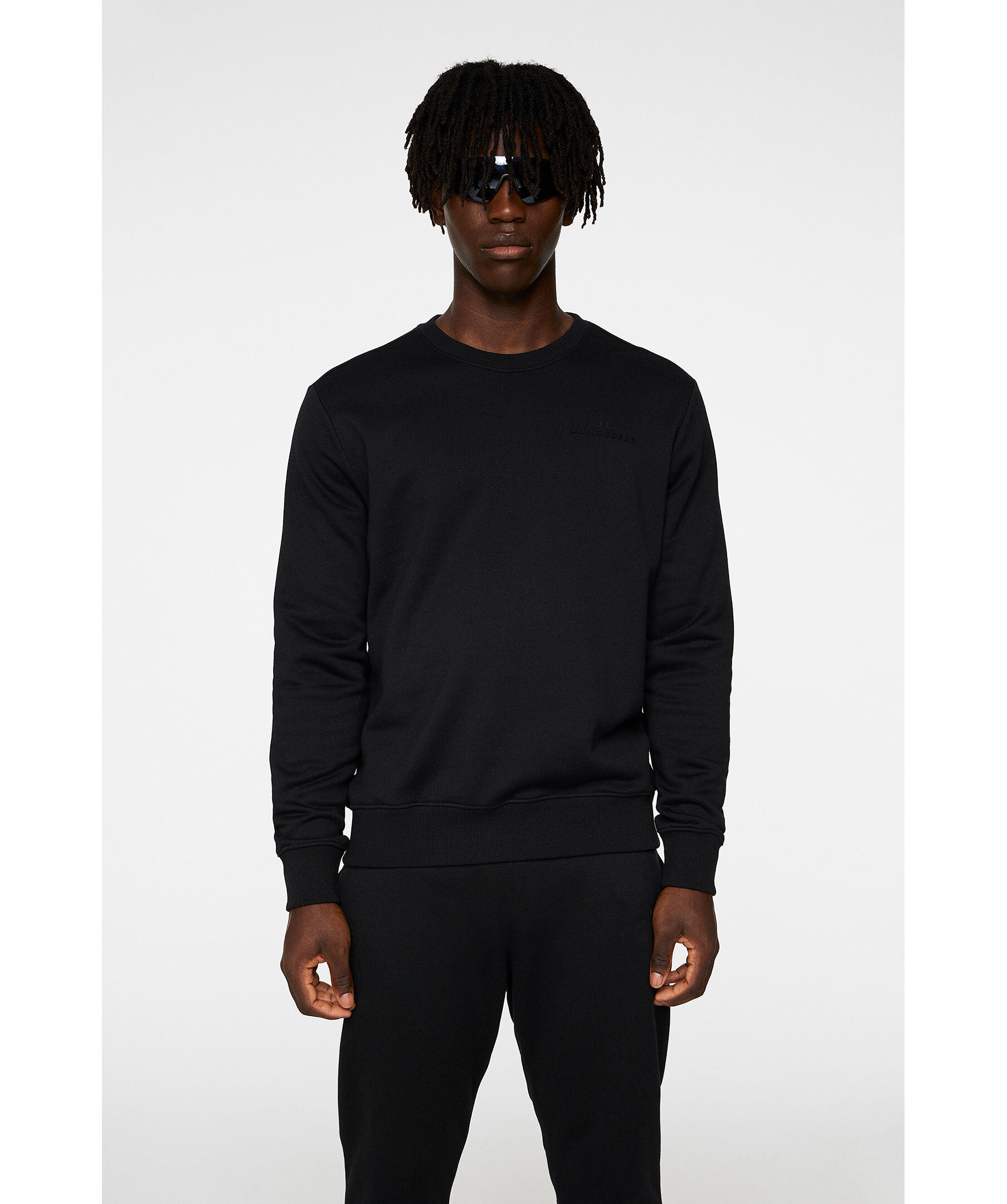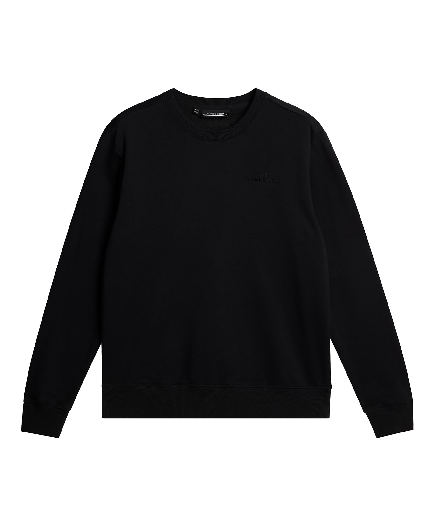 Svart sweatshirt från J.Lindeberg. Tillverkad i Pima-bomullsjersey som förhöjs med mercerniserat bomull. Mjuk borstad insida. Ton-i-ton logotyp på bröstet.